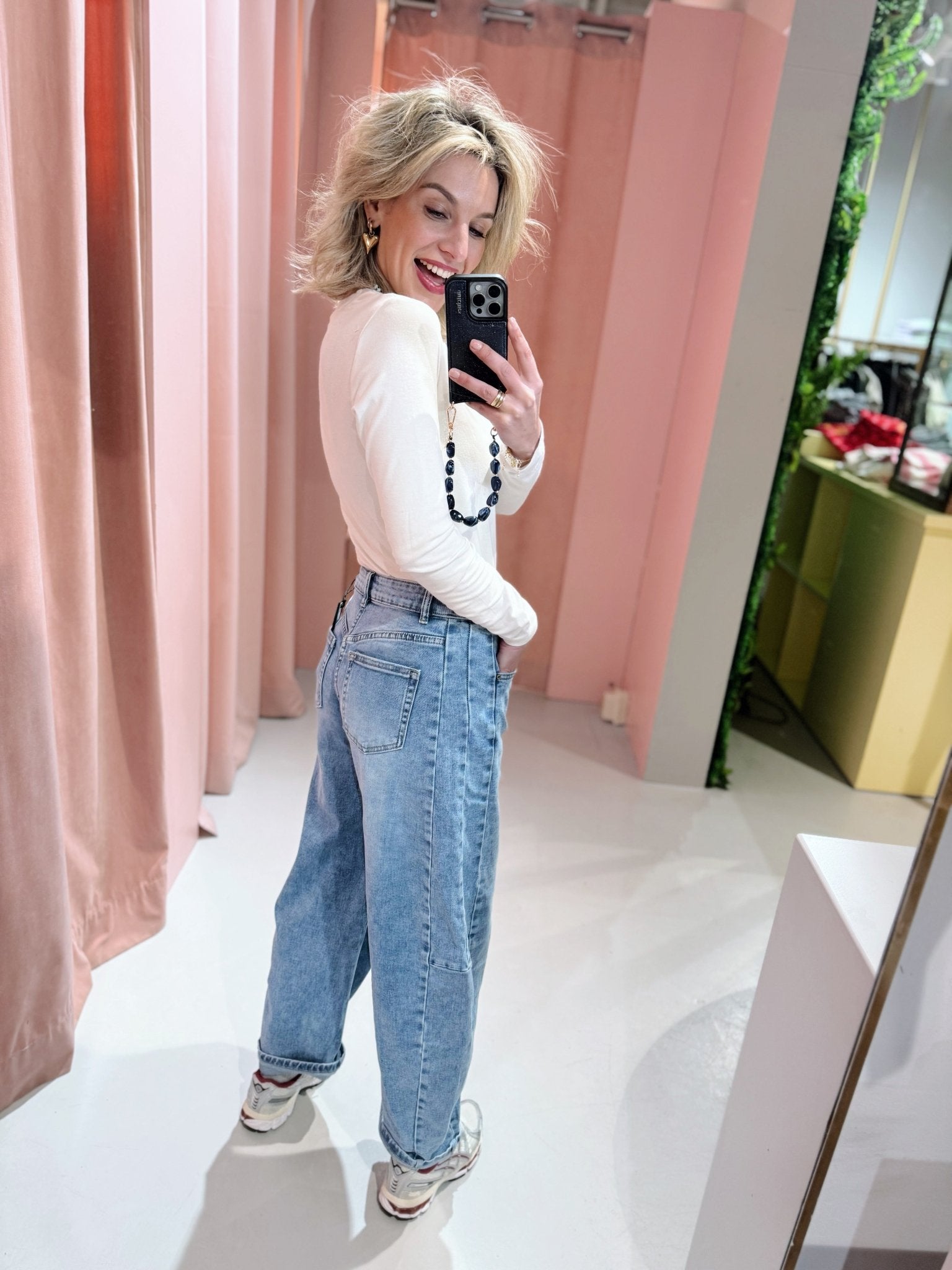 De Ian Barrel Jeans is het trendmodel van nu en geeft jouw outfit meteen een stijlvolle, moderne look. Dankzij de barrel fit creëer je een speels silhouet dat perfect past bij zowel sneakers als laarsjes.