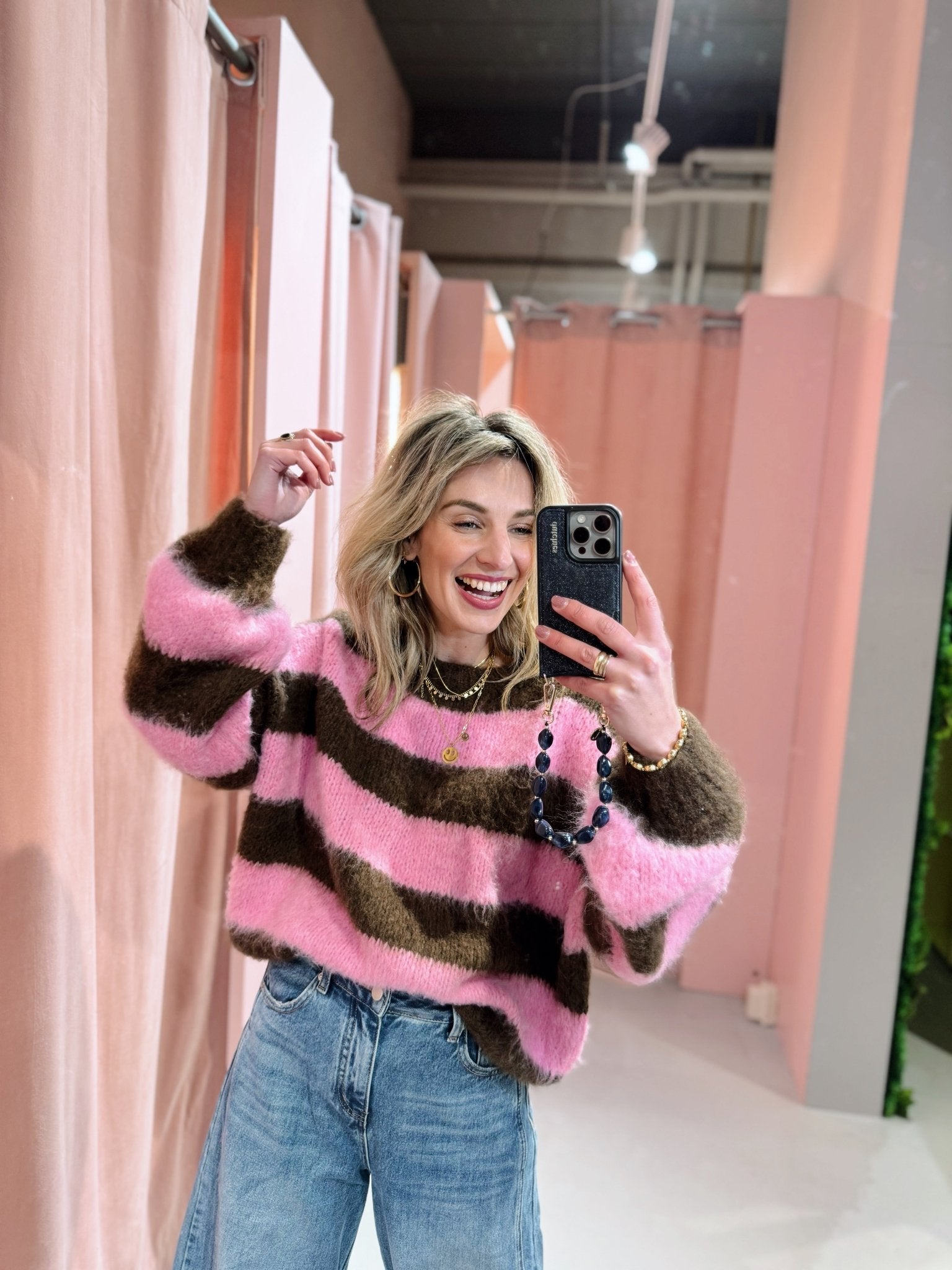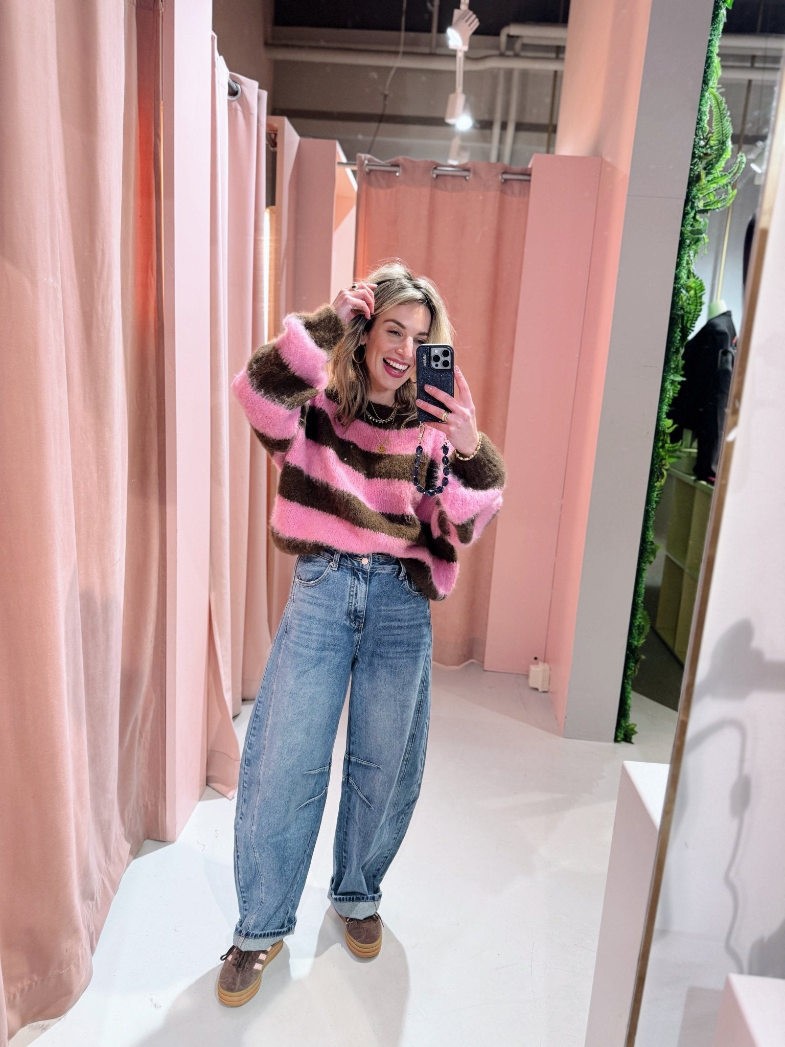 De Ilvy knit is een leuke 'mohair'-look trui in een toffe kleuren combi. De wat pluizige trui is heerlijk zacht dragen en houdt je warm op koude dagen. Combineer 'm met je favo jeans of leuk op een rokje zoals op de foto.