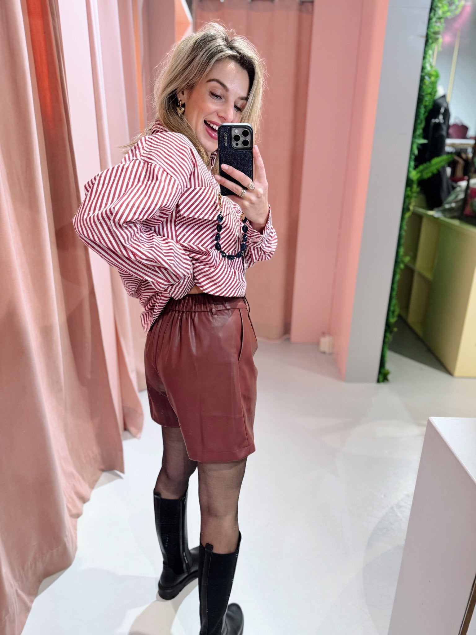 De Iris PU short is een echte eye-catcher! Net even weer wat anders dan een (nep) leer rokje en maakt je outfit daardoor ook meteen stoer. Het broekje heeft een knoopsluiting en steekzakken. Draag 'm met een panty en hoge boots, favoriete trui erop... and you're good to go!