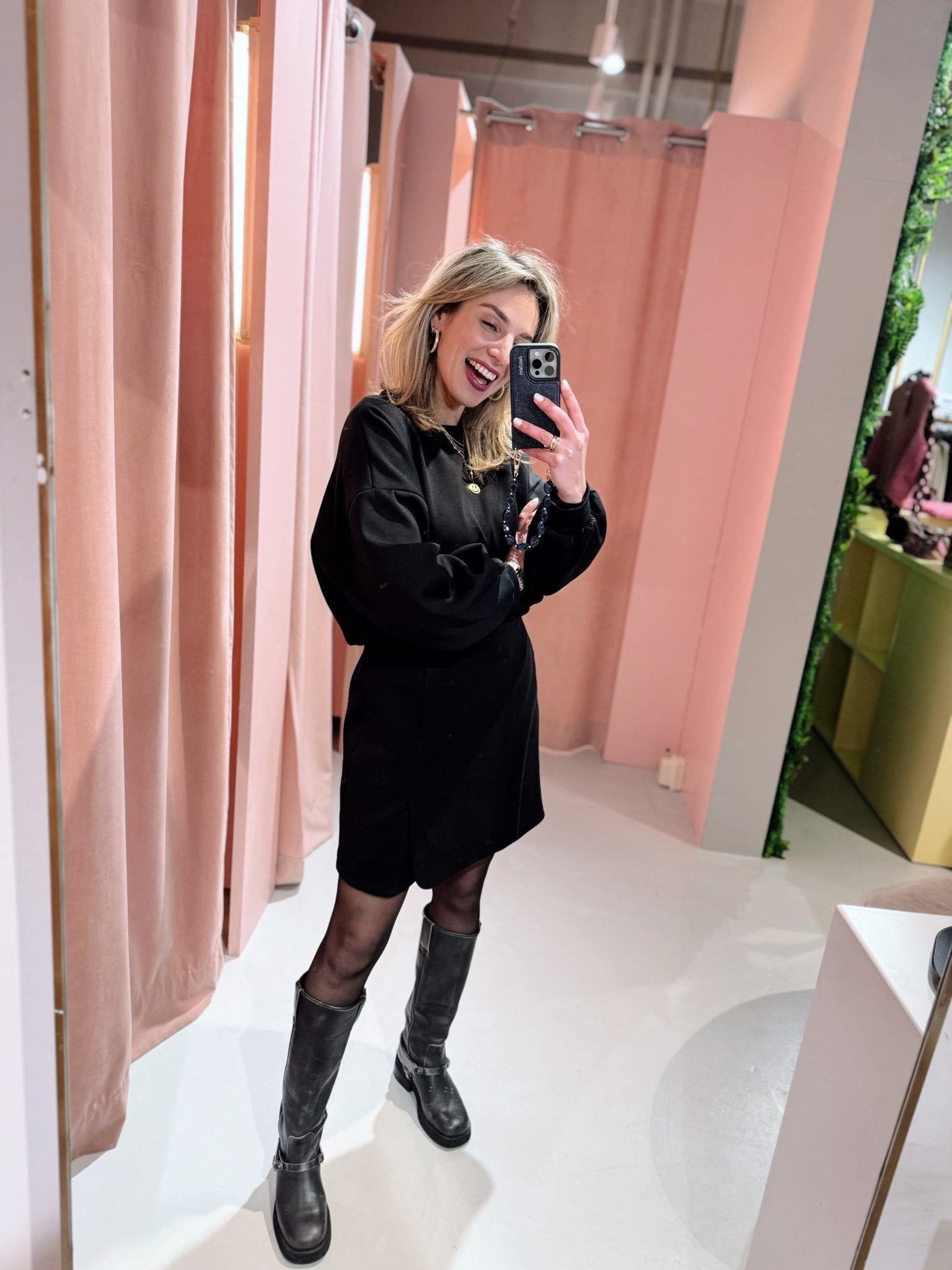 Jessica is 1,65m lang en draagt altijd maat S of S/M.
