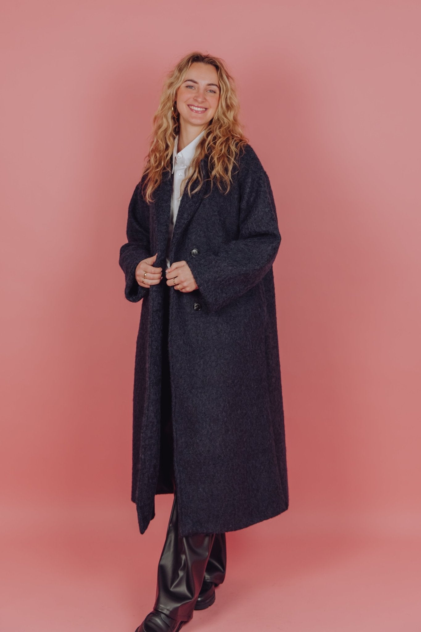 Onze bestselling Jaimy Coat van vorig jaar is weer helemaal terug in een nieuwe variant! De Jaimy Coat in navy is fijne najaarsjas gemaakt van een zachte, wollige stof. De jas heeft een lang model en heeft een kraagje. Daarnaast is het jasje voorzien van twee diepe steekzakken en vier knopen waarmee je de jas kunt sluiten.