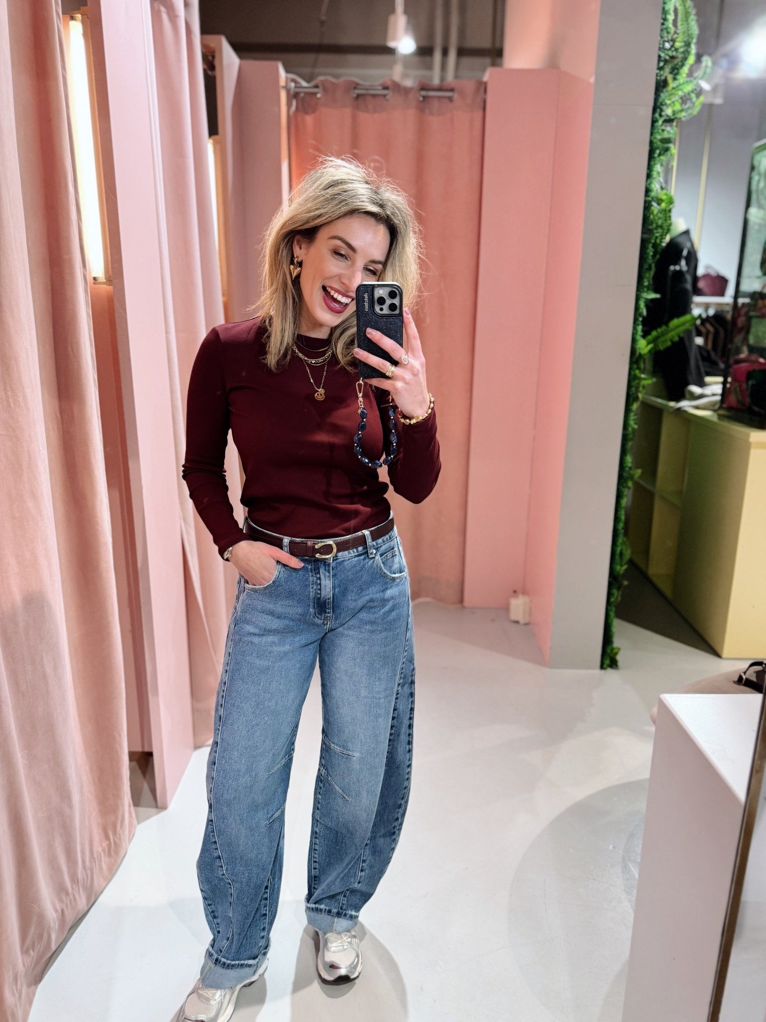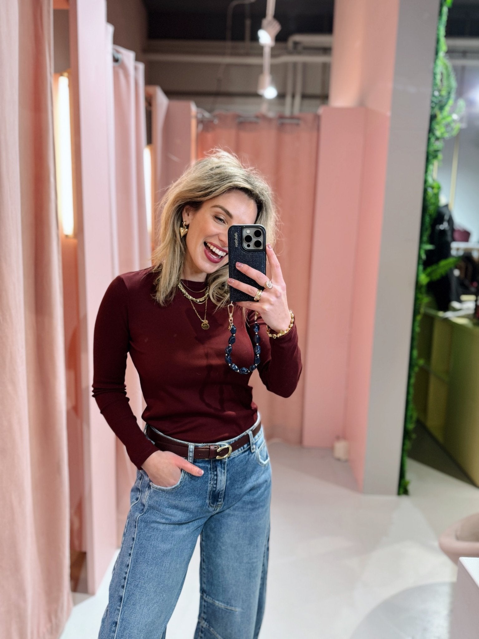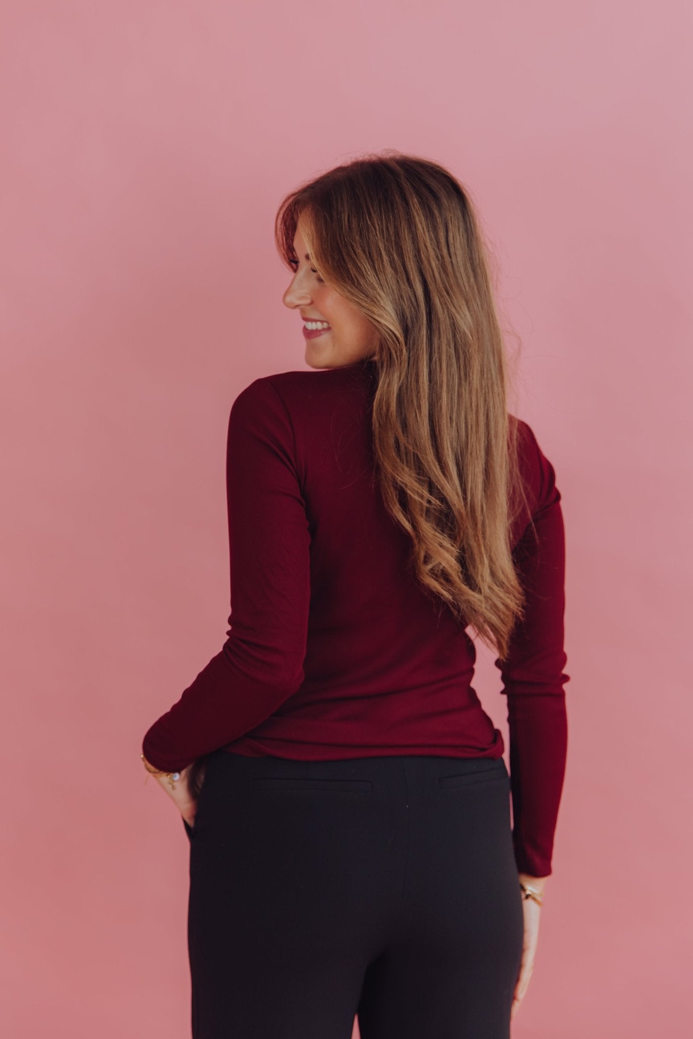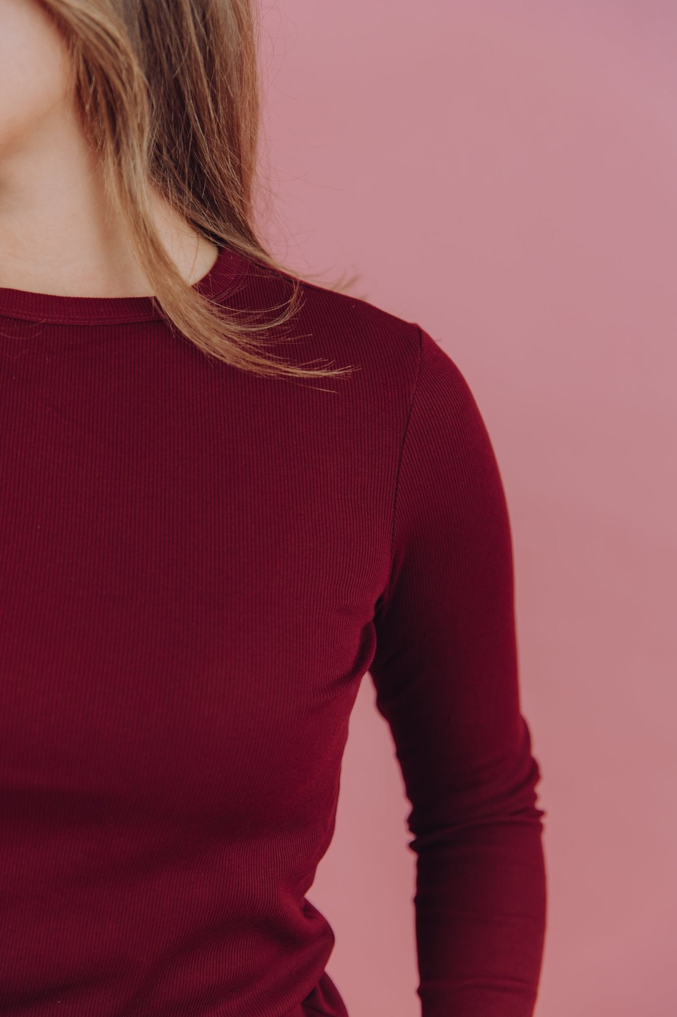 De Jaimie Longsleeve in bordeaux is een top met een aansluitend model. De top heeft lange mouwen met een ronde halslijn en is de perfecte basic.