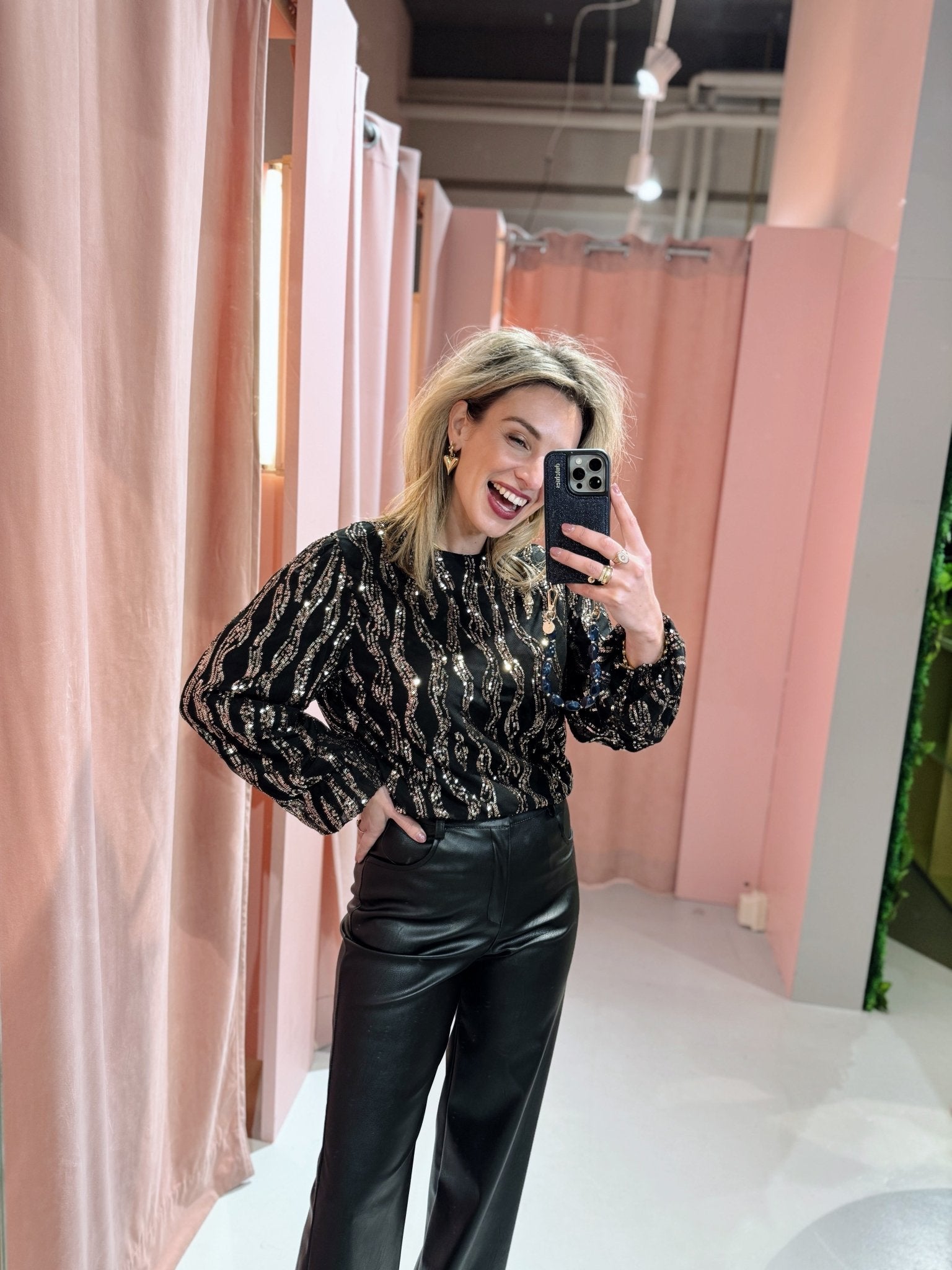 De Jayce Blouse in goud is een feestelijke blouse gemaakt van een luchtige stof. De blouse heeft lange pofmouwen en een ronde halslijn en is gemakkelijk te sluiten door middel van de knoopsluiting in de nek. Doordat dit blousje voorzien is van pailletten, is hij perfect voor de feestdagen!