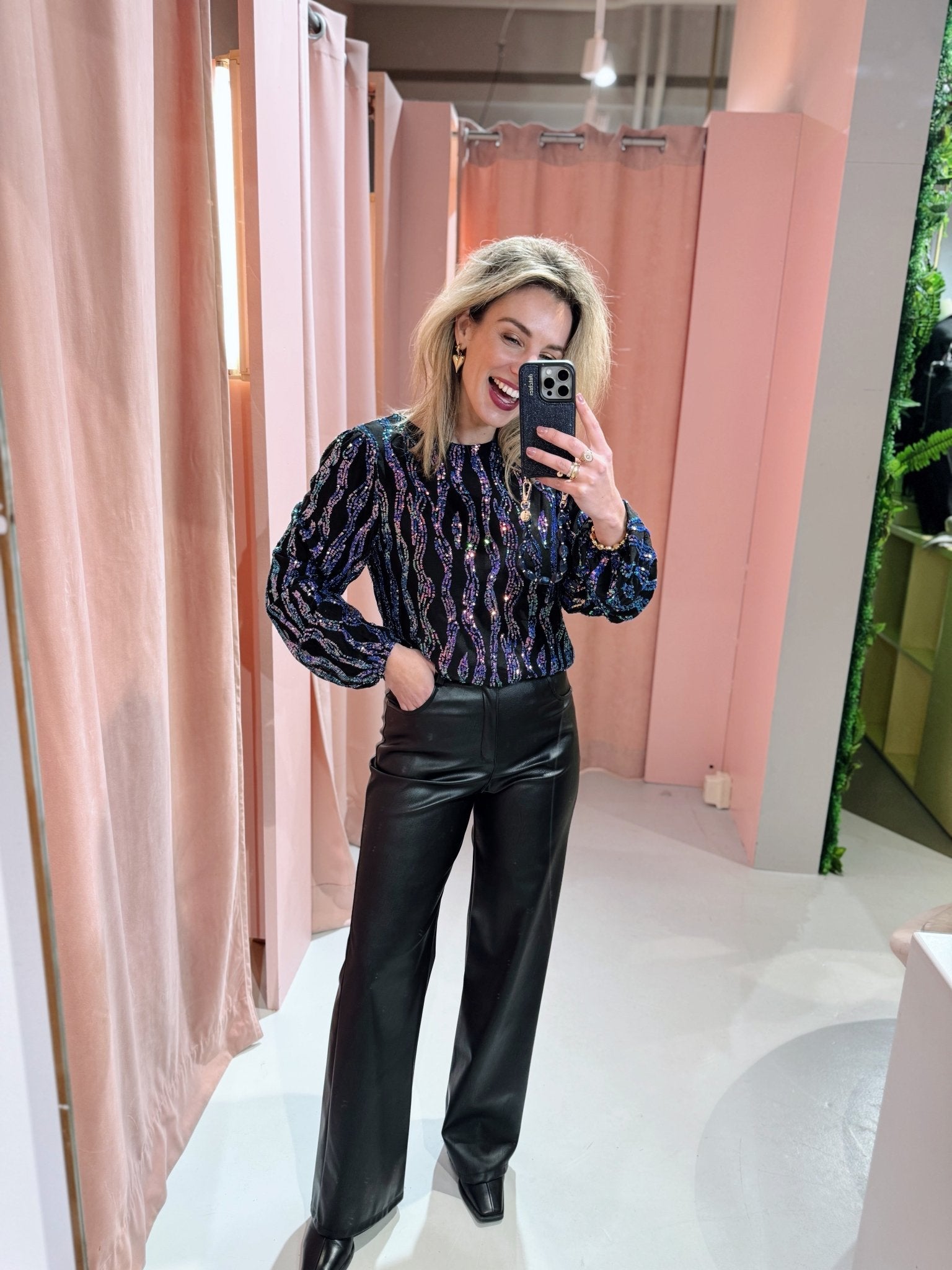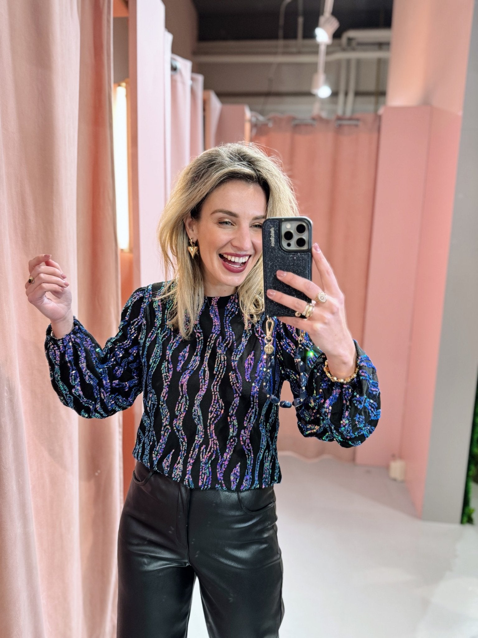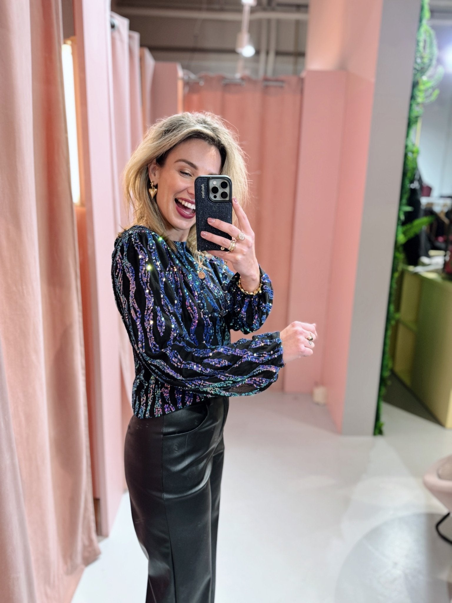 De Jayce Blouse in multi is een feestelijke blouse gemaakt van een luchtige stof. De blouse heeft lange pofmouwen en een ronde halslijn en is gemakkelijk te sluiten door middel van de knoopsluiting in de nek. Doordat dit blousje voorzien is van pailletten, is hij perfect voor de feestdagen!