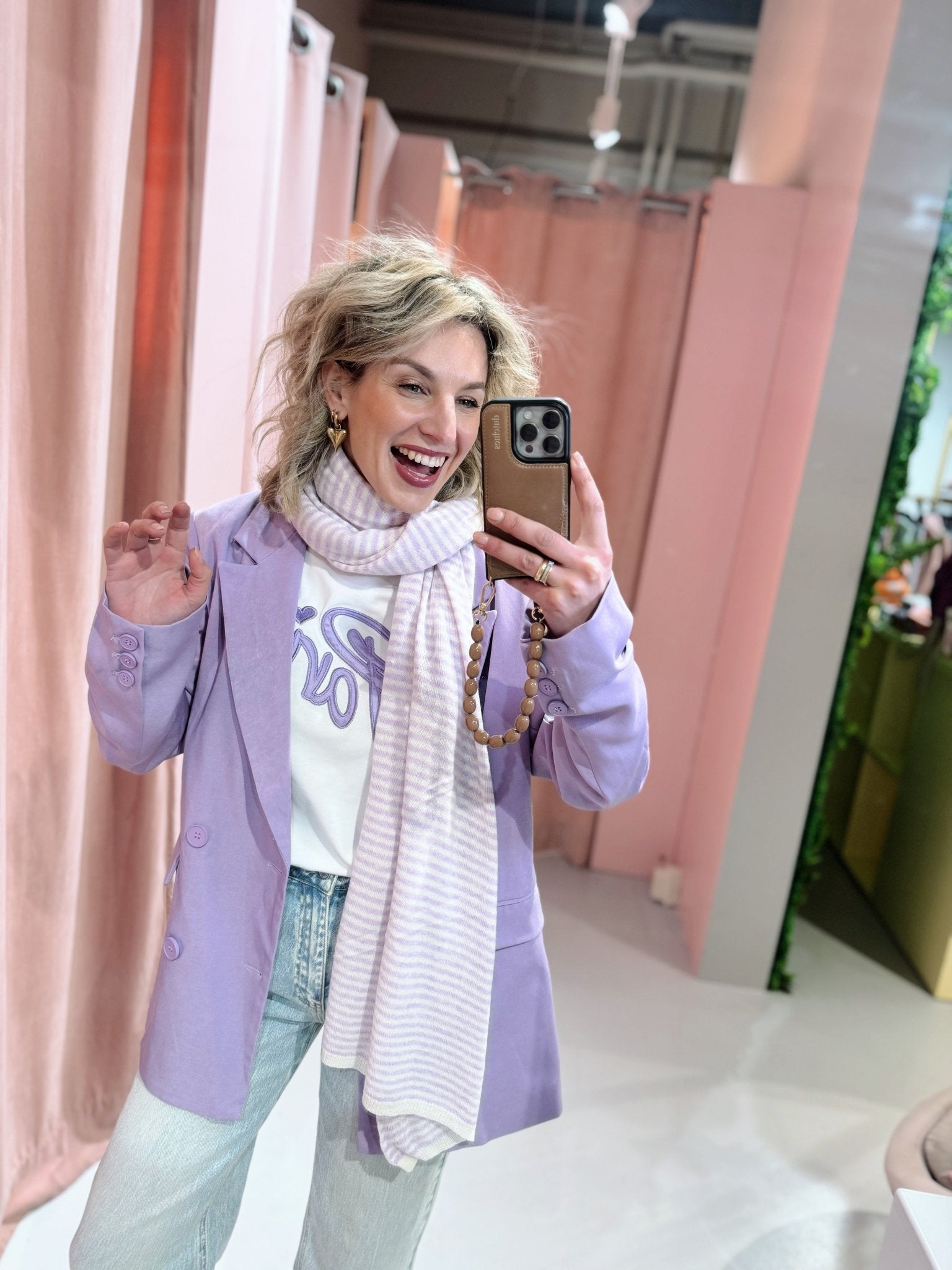 De Joelle Blazer is een classy blazer in een lila kleur, waardoor je helemaal klaar bent voor het voorjaar. De blazer is voorzien van twee klepzakken en schoudervulling. Je kunt het jasje gemakkelijk sluiten door middel van de knoopsluiting aan de voorkant.