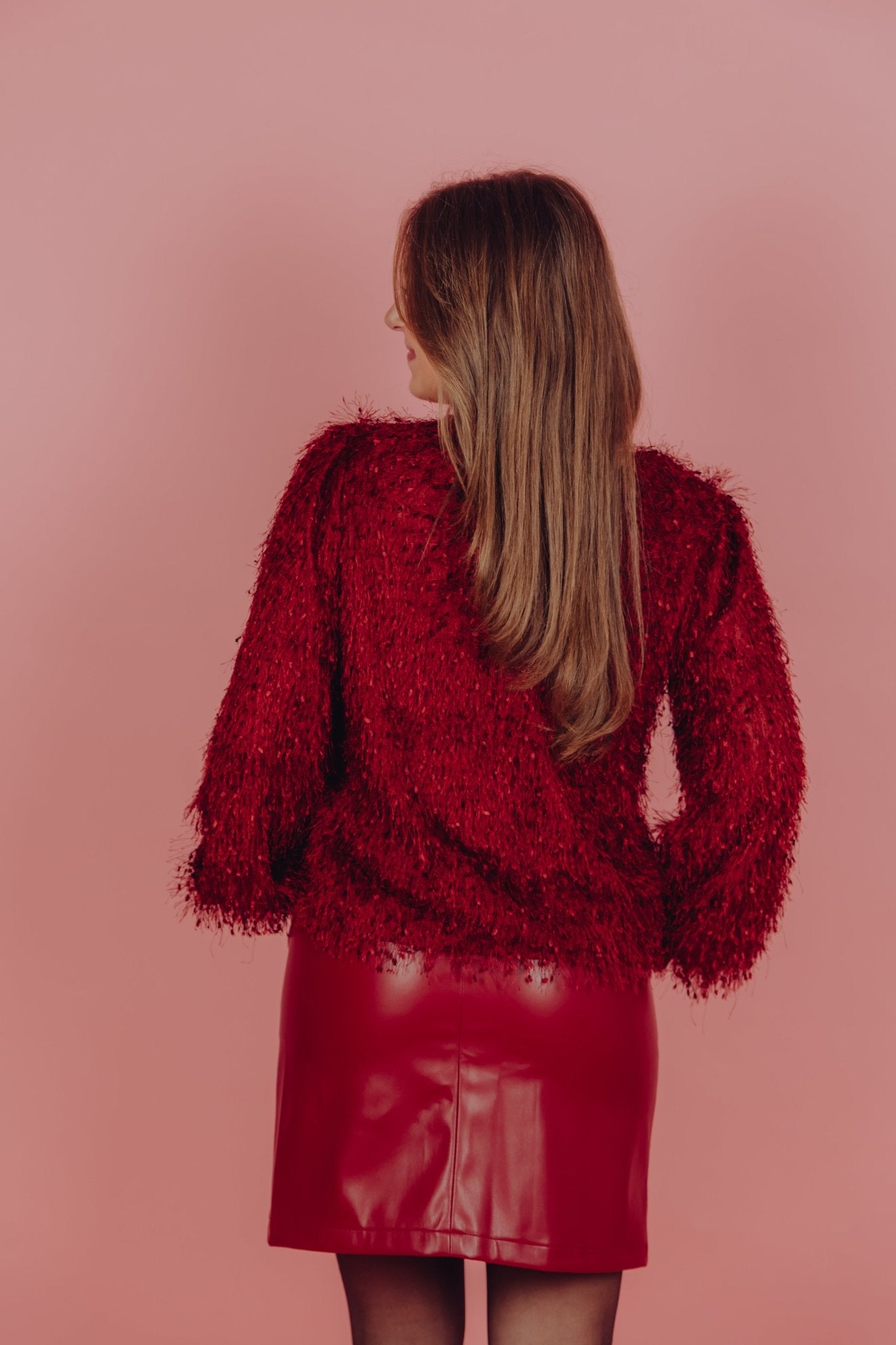 De Karina Blouse in bordeaux is gemaakt van een luchtige stof met een structuur en is voorzien van lange mouwen en een ronde halslijn. De blouse heeft een boxy fit en is gemakkelijk sluiten door middel van de knoopsluiting in de nek.