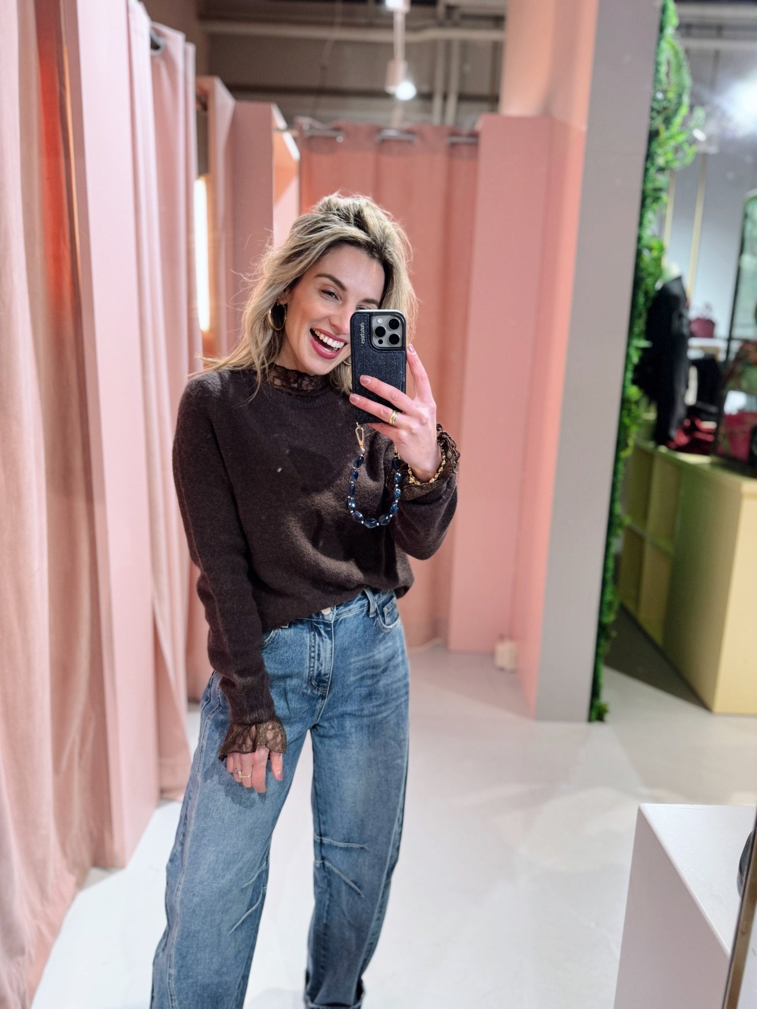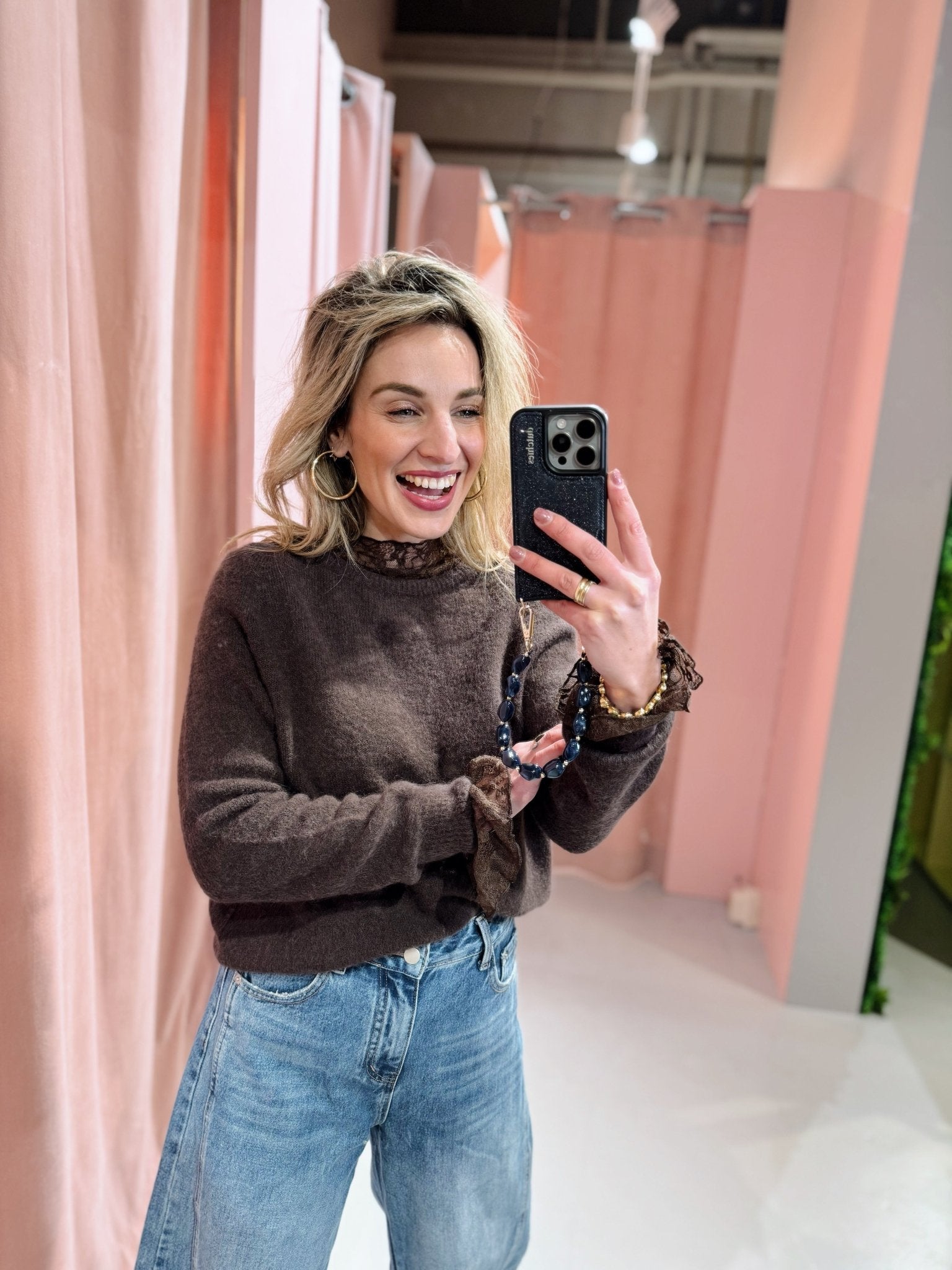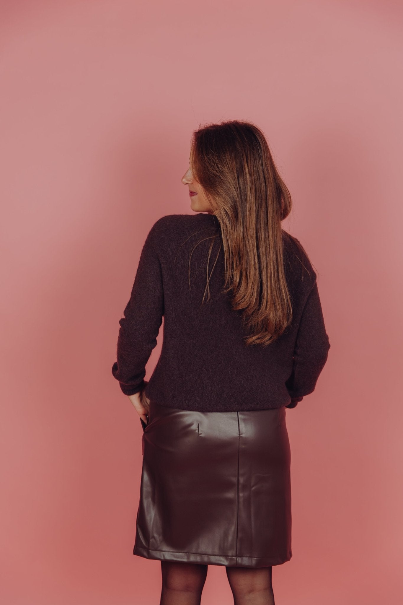 De Karlijn Knit in bruin is gemaakt van een gebreid materiaal, waardoor hij heerlijk warm is. De sweater heeft lange mouwen, een ronde halslijn en is perfect voor de koude dagen!