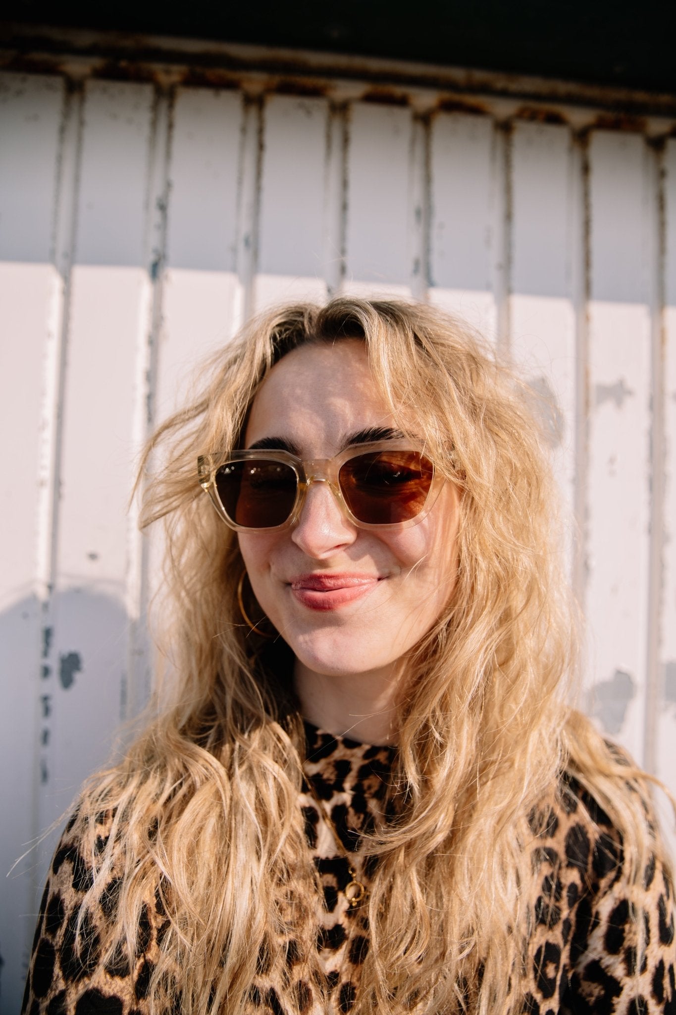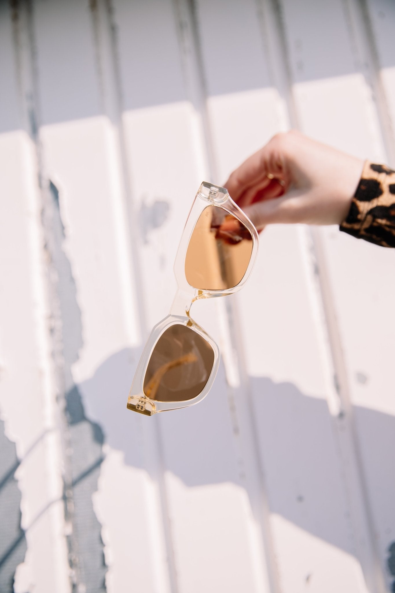 De Kaws - Ecru Transparent zonnebril van A.KJAERBEDE heeft een transparant montuur met een subtiele cat-eye vorm. De UV 400 bescherming en polycarbonaat lenzen bieden optimale oogbescherming, terwijl de vervormbare pootjes met metalen kern en hoogwaardige scharnieren zorgen voor een comfortabele pasvorm. Gemaakt van meer dan 50% gerecycleerde materialen, BPA-vrij en geleverd met een reinigingszak.