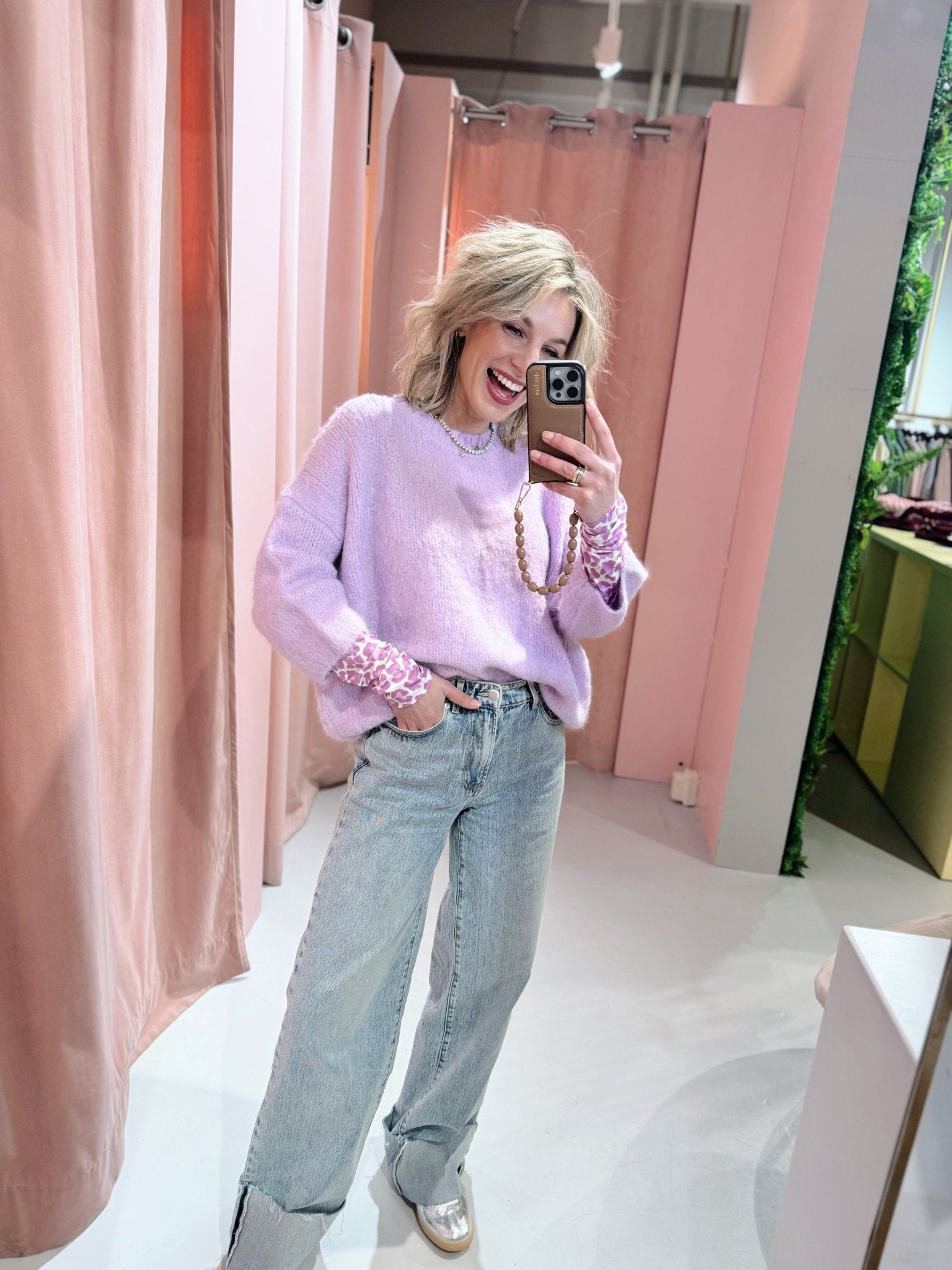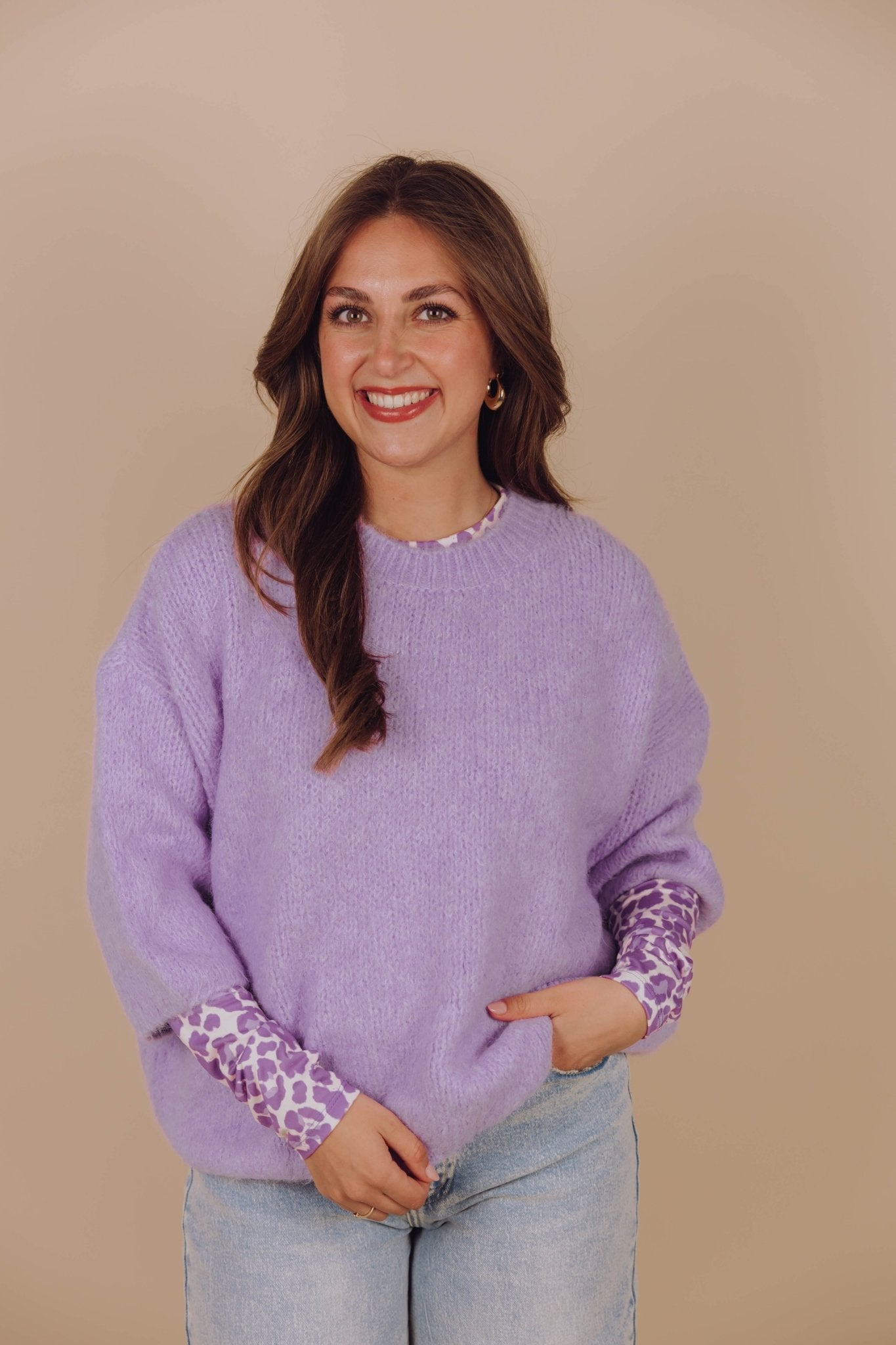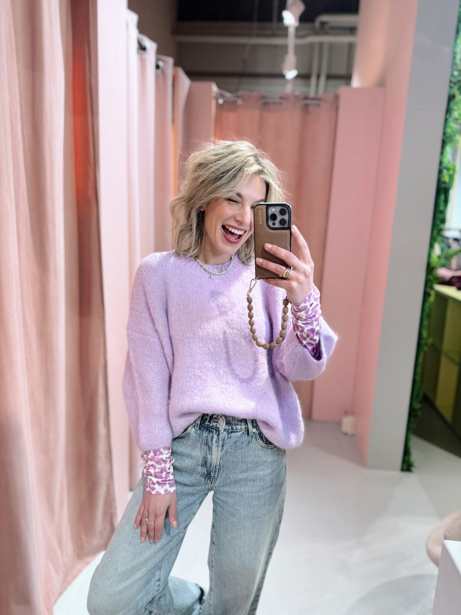 De Kendra Knit in lila is een knit met een boxy model. De trui is gemaakt van een heerlijk warm gebreid materiaal, heeft 3/4 mouwen met een ronde halslijn en is leuk te combineren met een jeans.