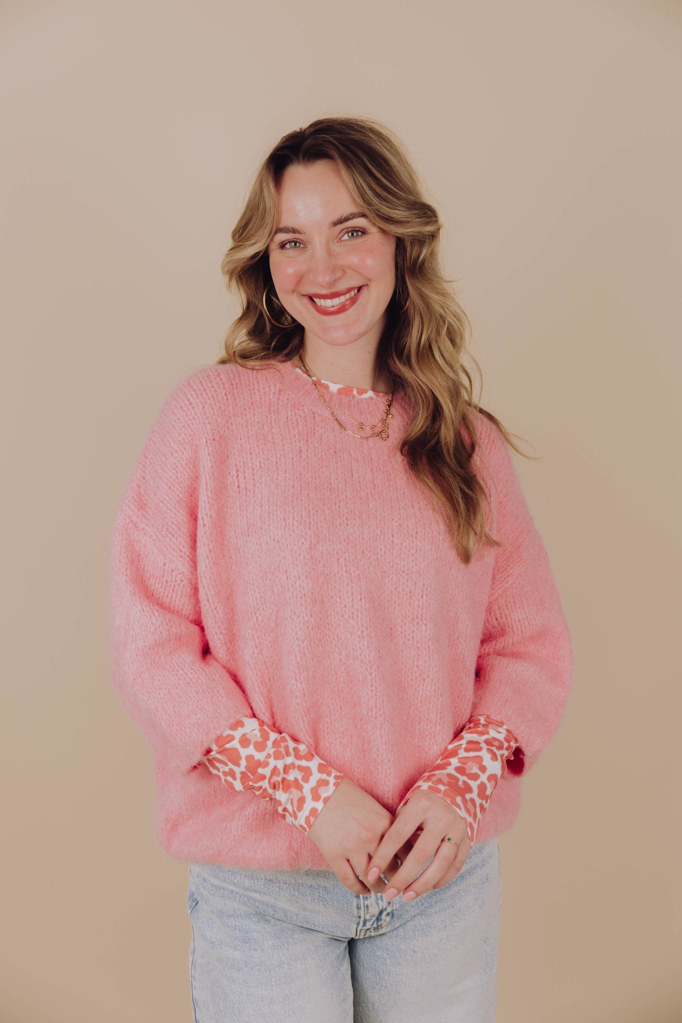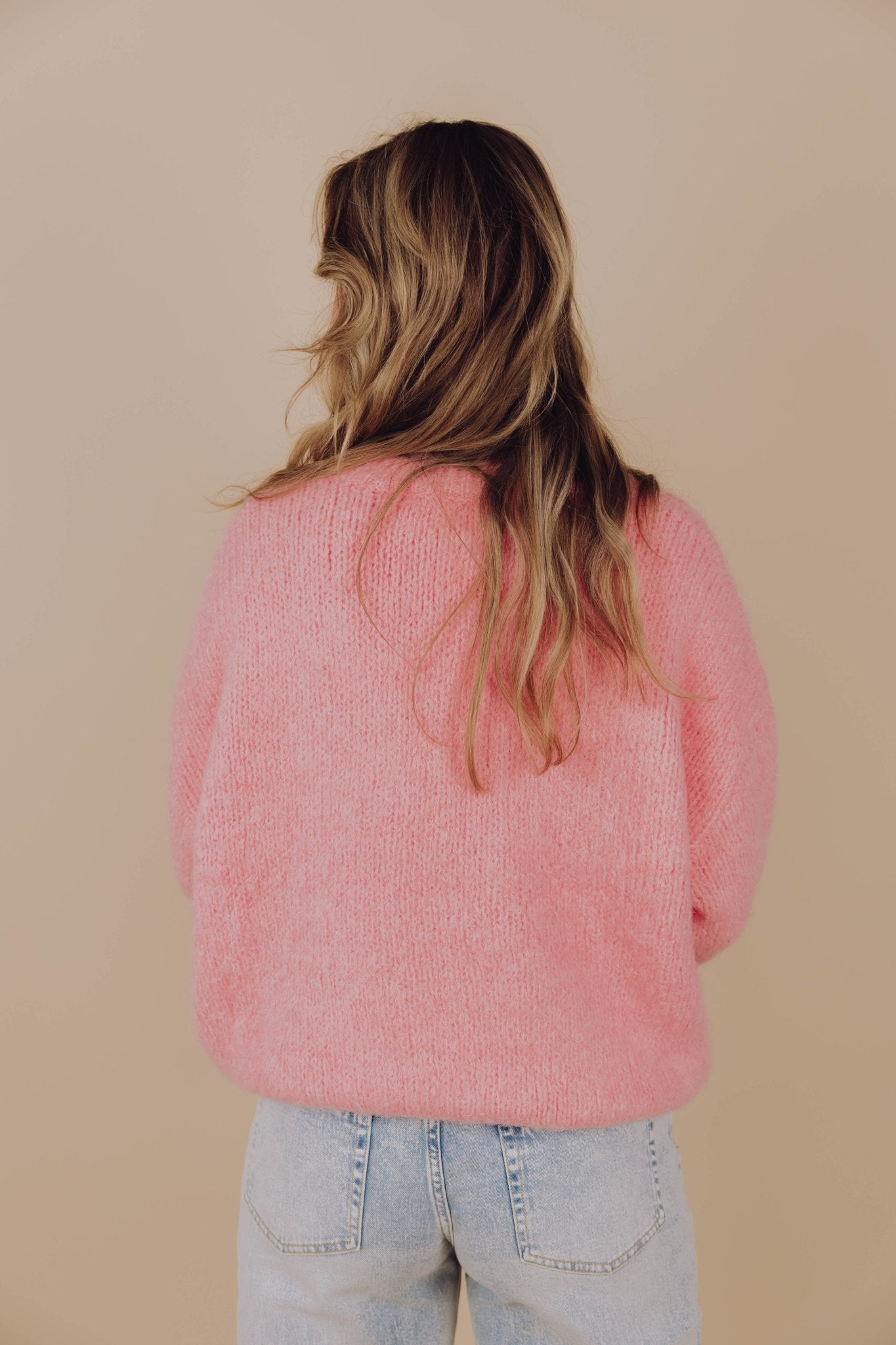 De Kendra Knit in roze is een knit met een boxy model. De trui is gemaakt van een heerlijk warm gebreid materiaal, heeft 3/4 mouwen met een ronde halslijn en is leuk te combineren met een jeans.