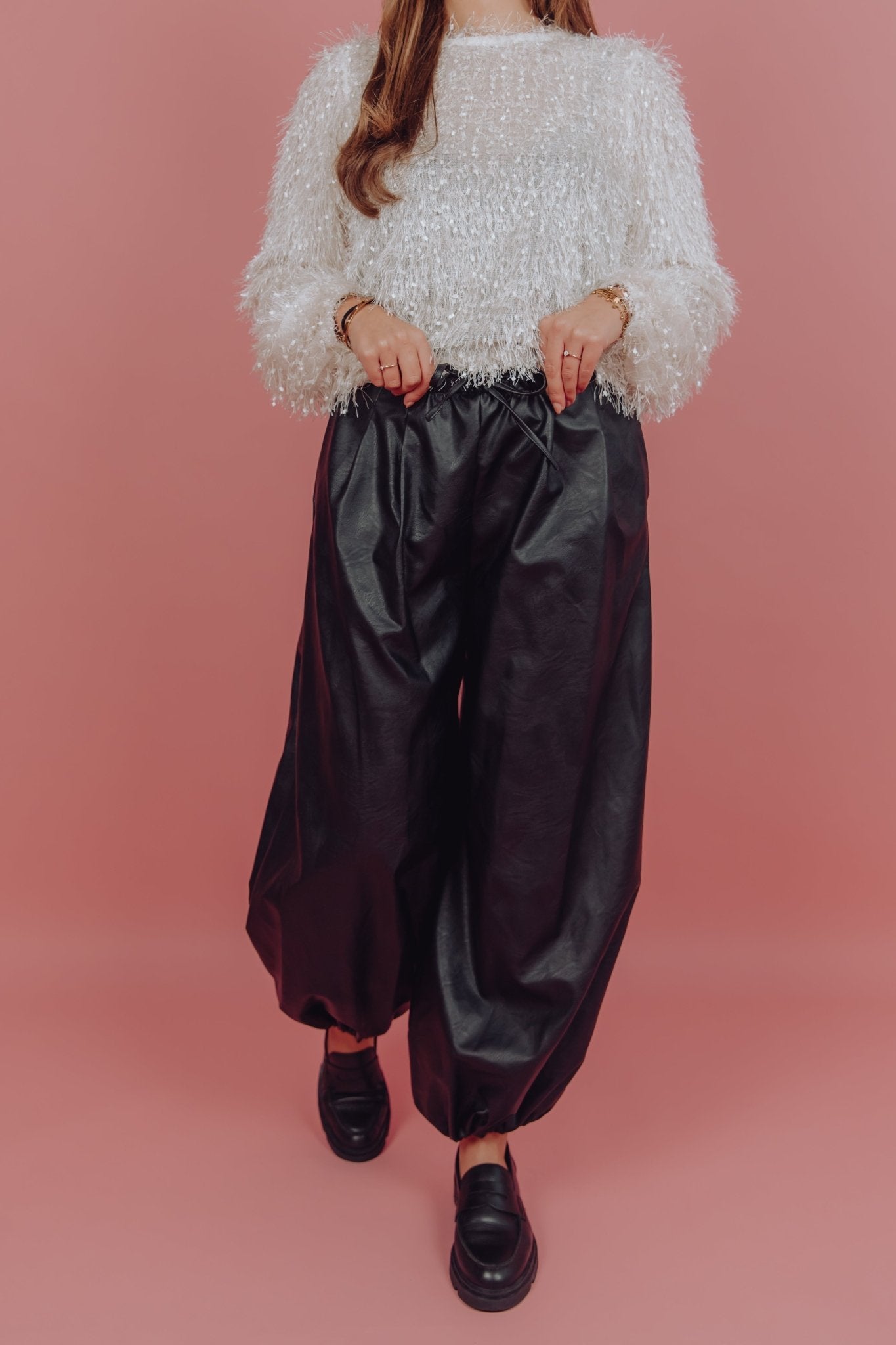Wauw! Deze faux leather ballonbroek is een echte blikvanger. Dankzij de elastische tailleband zit hij heerlijk comfortabel, terwijl de elastische boorden aan de onderkant zorgen voor het karakteristieke ballonmodel dat deze broek zo uniek en stijlvol maakt.