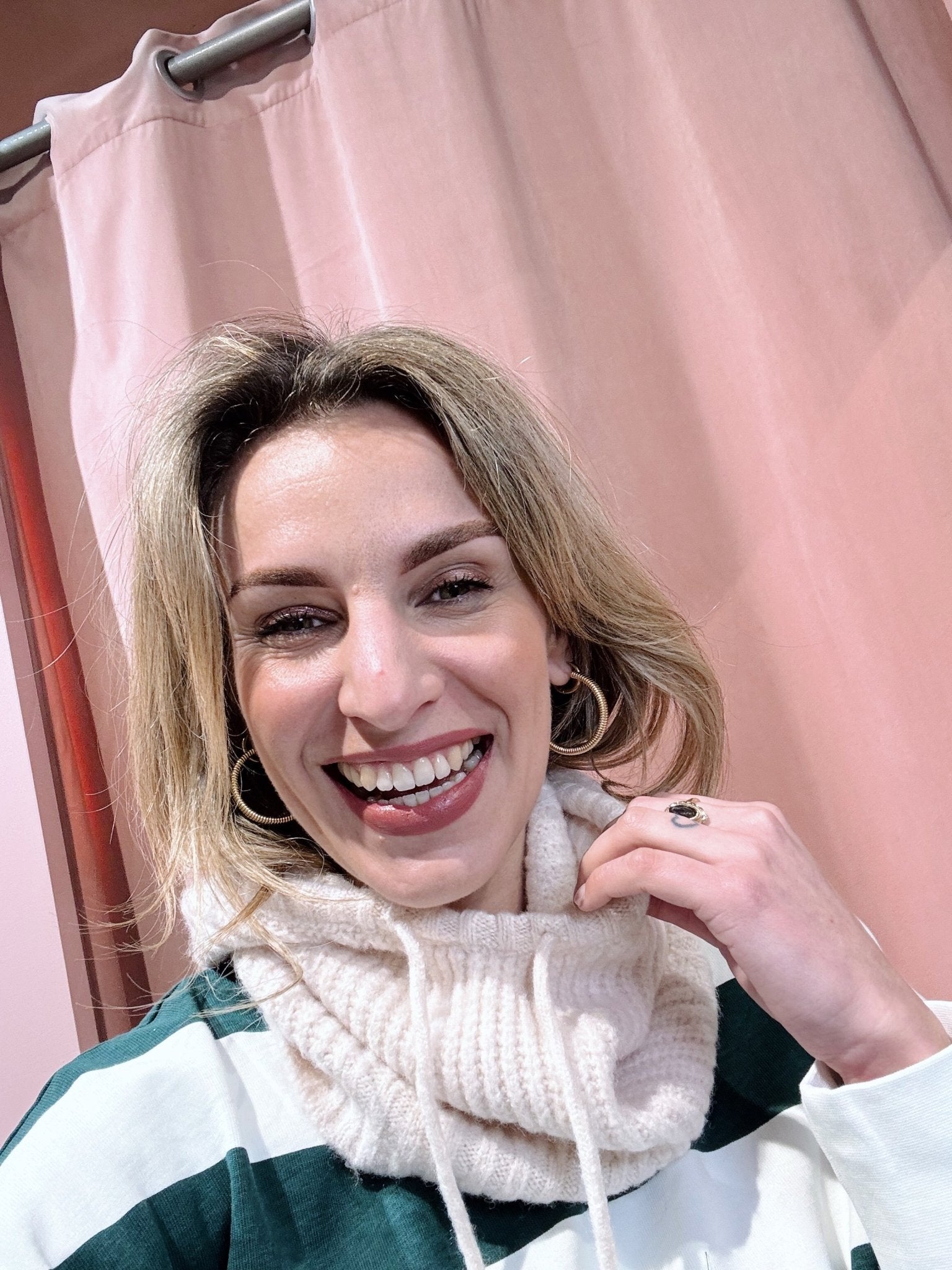 Deze balaclava in beige is je nieuwe favoriet voor koude dagen! De sjaal is gemaakt van een gebreid materiaal en is voorzien van een capuchon met aantrekkoord. Deze balaclava geeft elke outfit een warme touch.