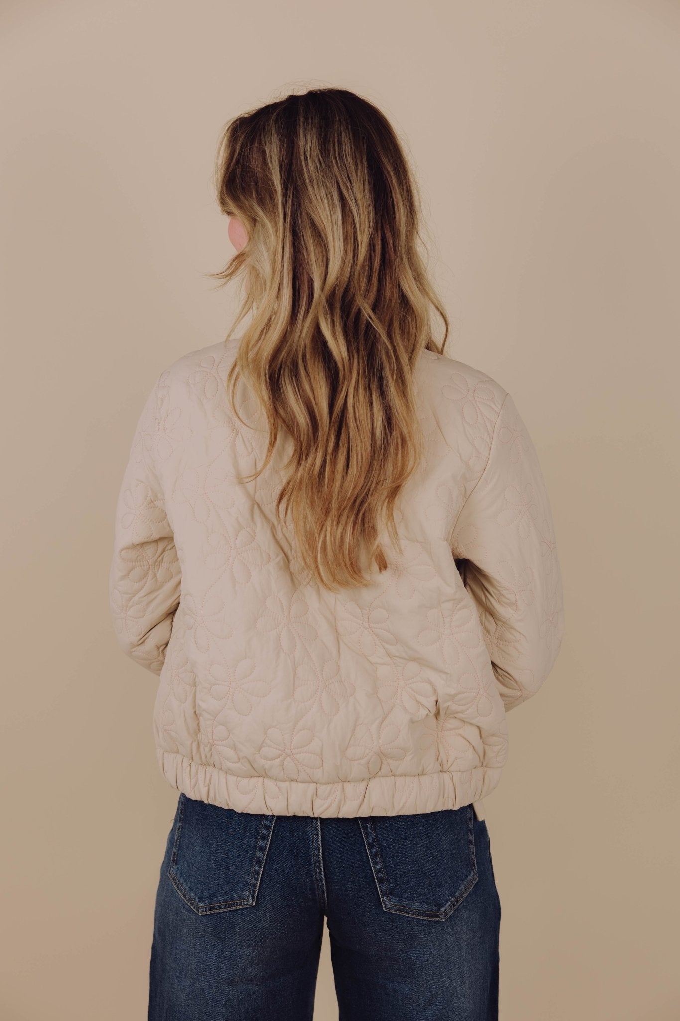 De Kylie Jacket in beige is een gewatteerd jasje met doorgestikte bloemen en twee steekzakken. Het jasje is niet alleen een echte eyecatcher, maar ook heerlijk om te dragen als tussenjas. De gevoerde stof zorgt voor extra warmte en het jasje is gemakkelijk aan te trekken door middel van de knoopsluiting aan de voorkant.