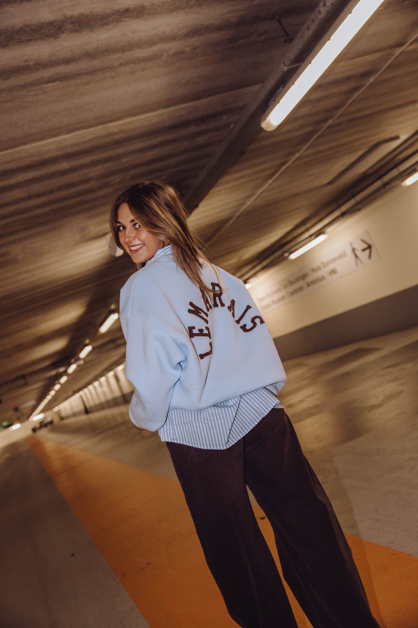 De Le Marais Sweater in lichtblauw is een oversized trui met lange mouwen en een ronde halslijn. De trui heeft een losse pasvorm en is voorzien van een teddy opdruk met de tekst "California" op de rug. Doordat deze sweater voorzien is van een fleece binnenkant, is hij perfect voor de koude dagen!