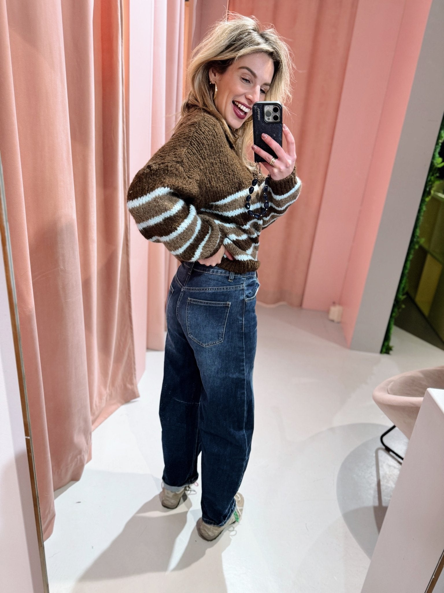 Jessica is 1,65m lang en draagt altijd maat S of S/M.