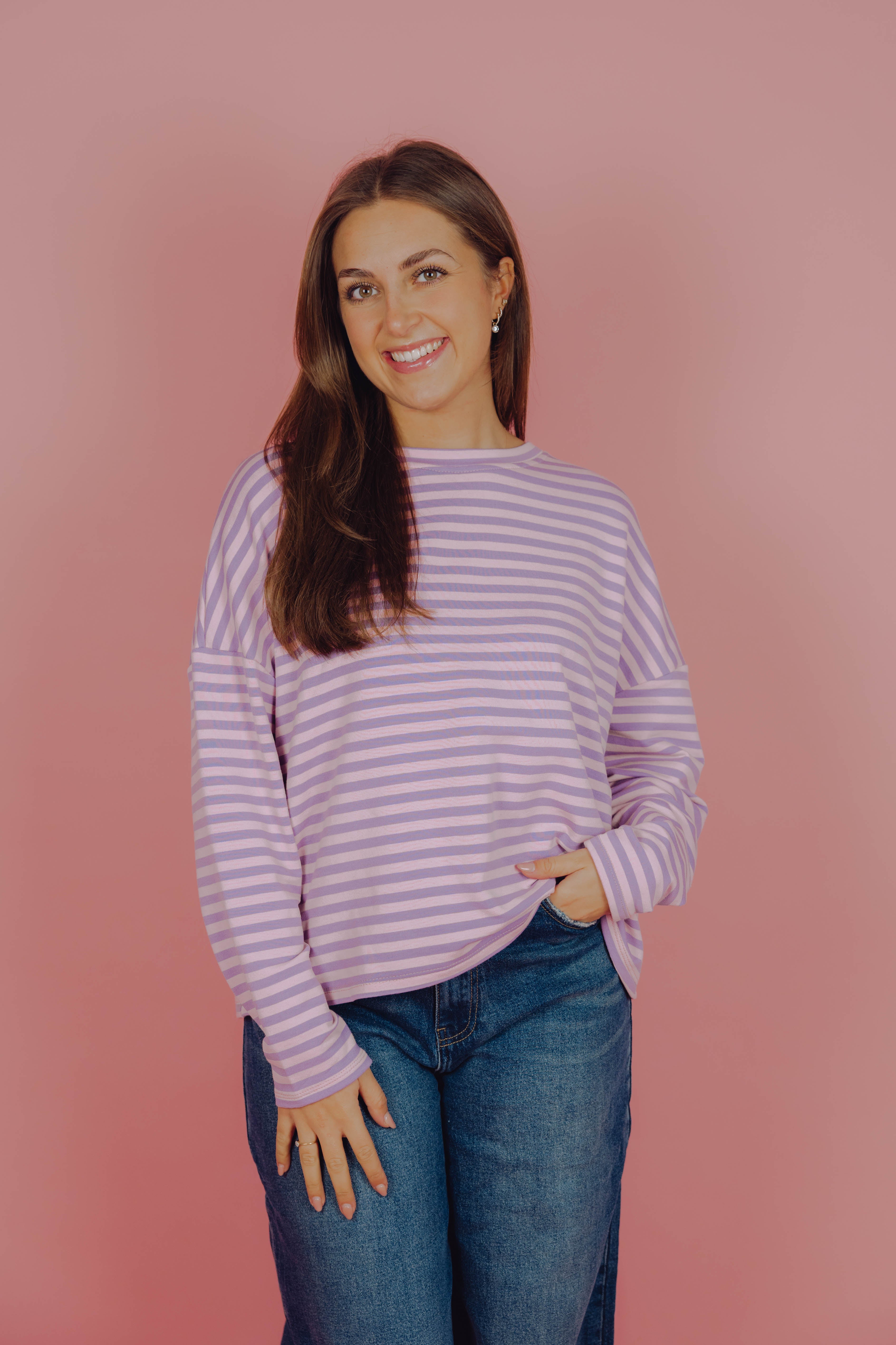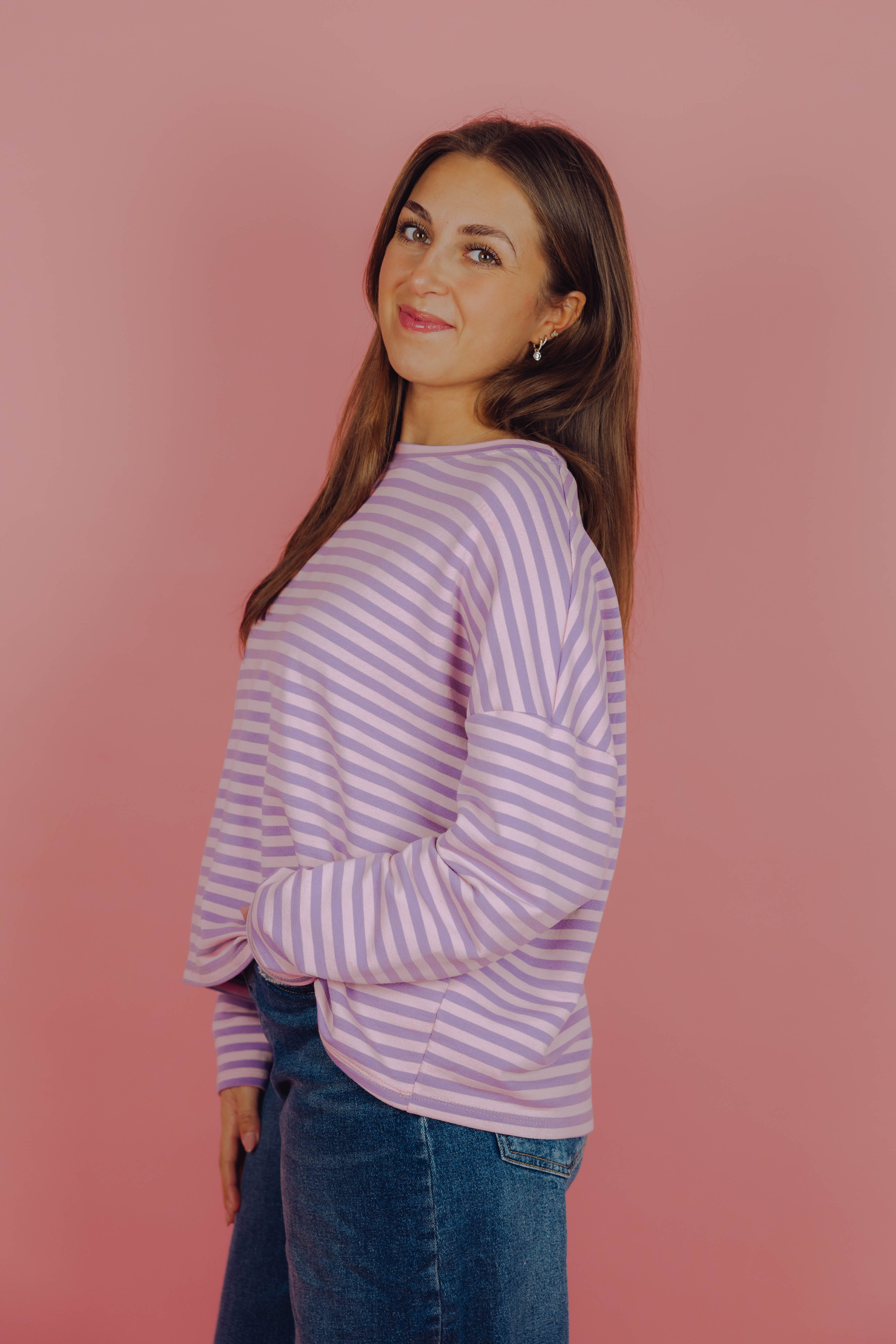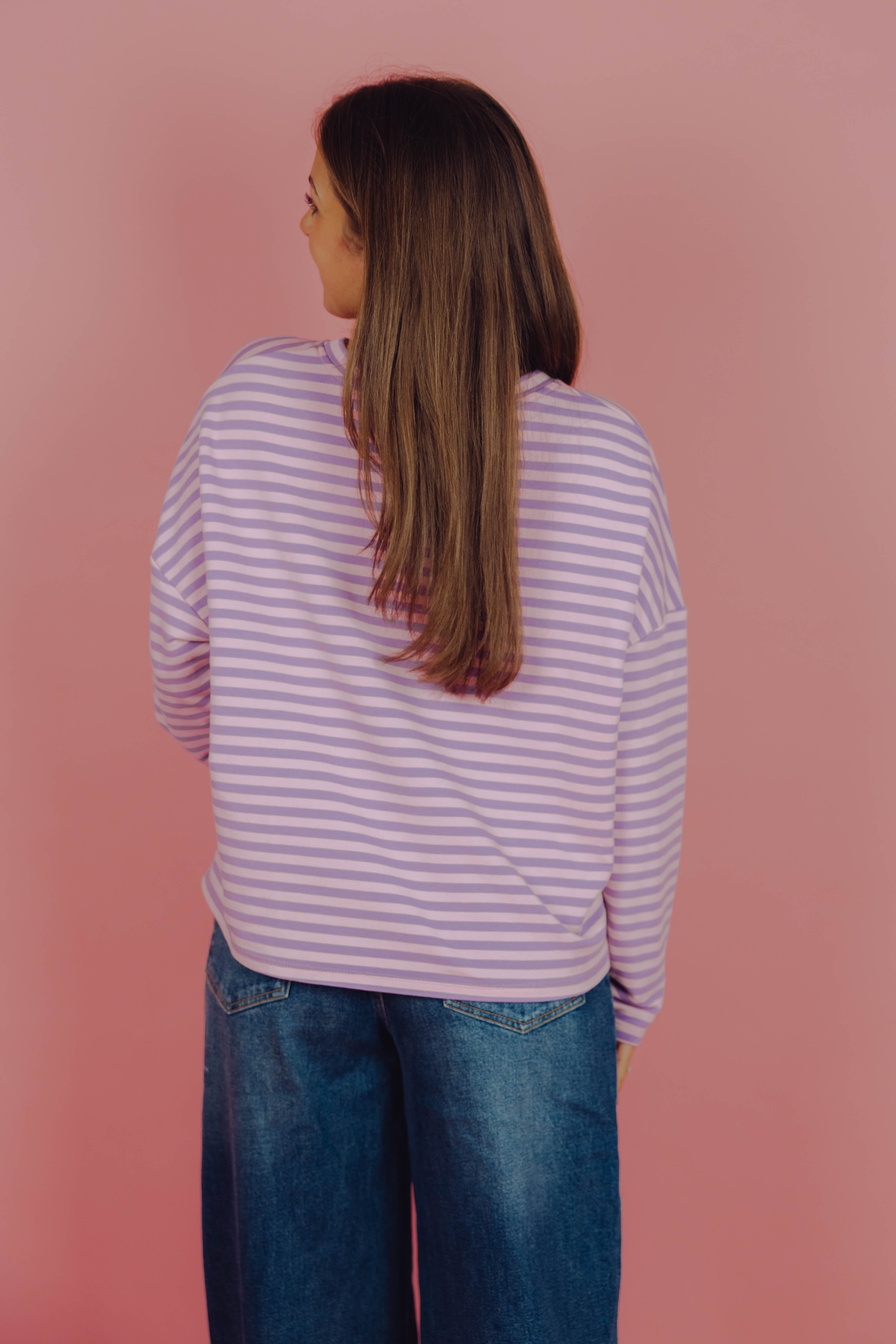De Lisa Longsleeve in lila met roze is een top met een iets wijder model. De top is gemaakt van een stretchy stof, heeft lange mouwen met een hoge, ronde halslijn en een streep patroon. Deze lange mouwen top is perfect om laagjes mee te creëren in het najaar.