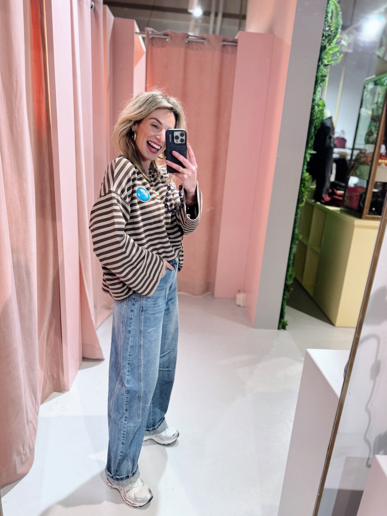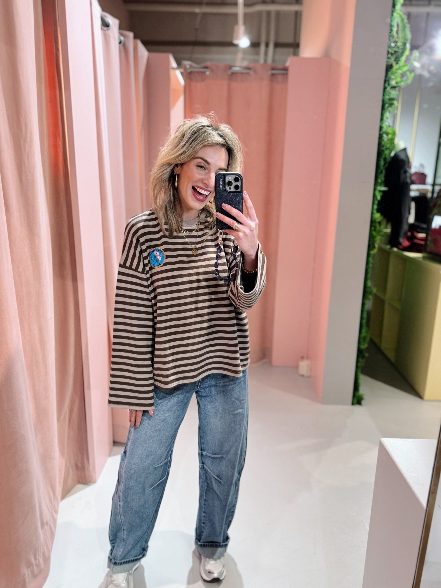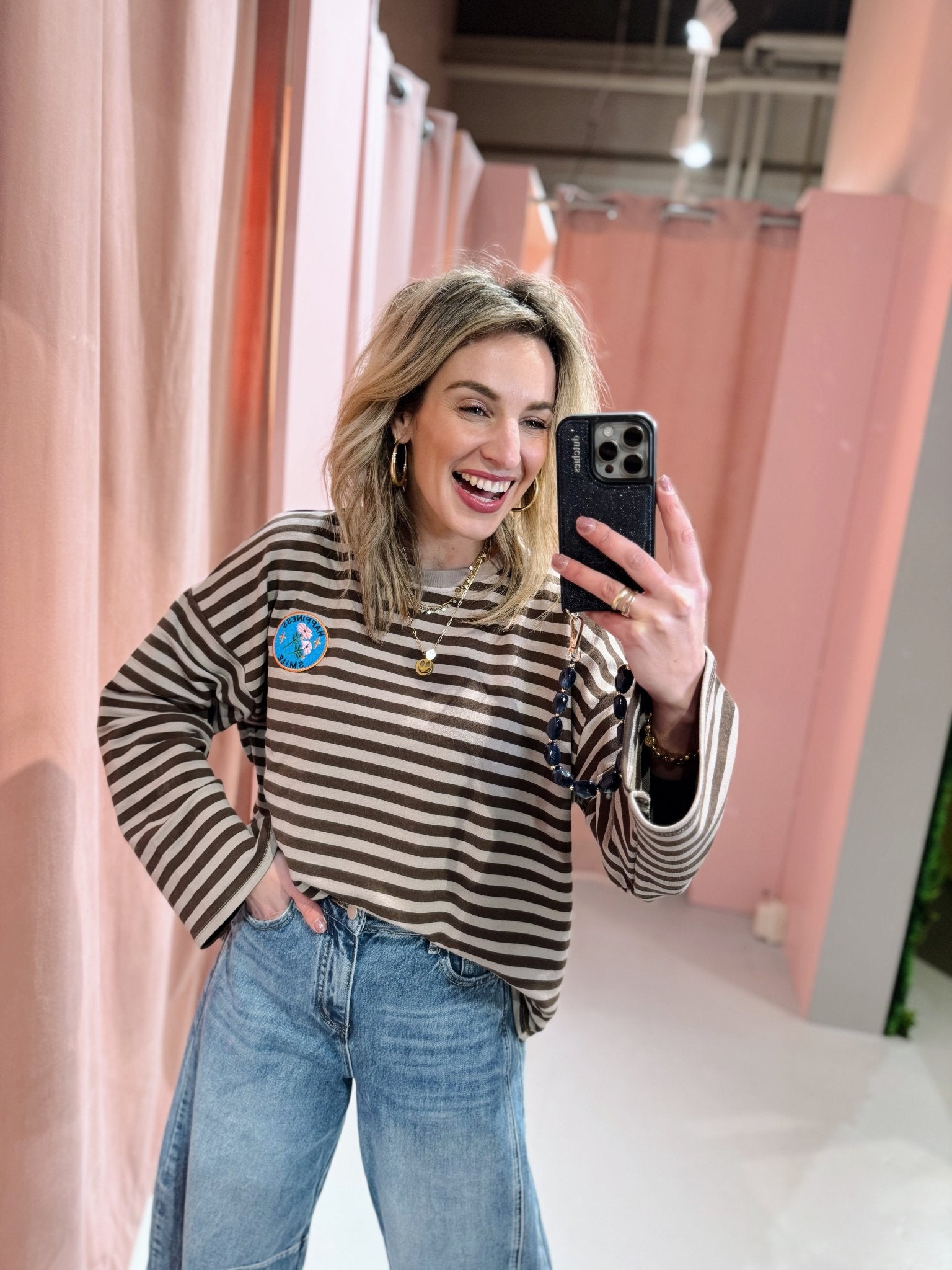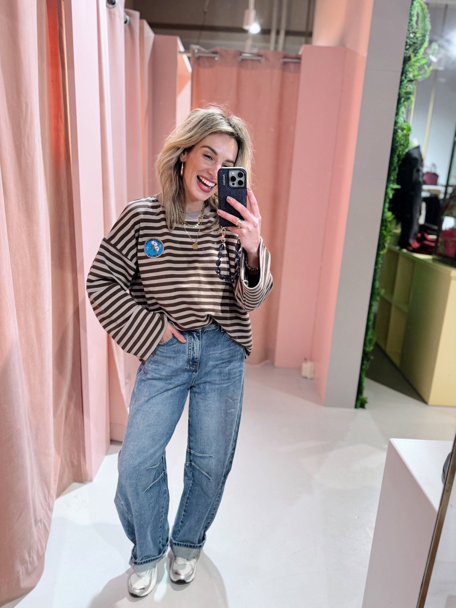 De Longsleeve Lise valt op maat (true to size), maar dankzij de oversized pasvorm oogt hij relaxed en modern. Perfect te combineren met een jeans, rok of comfy broek voor een moeiteloos stijlvolle outfit.