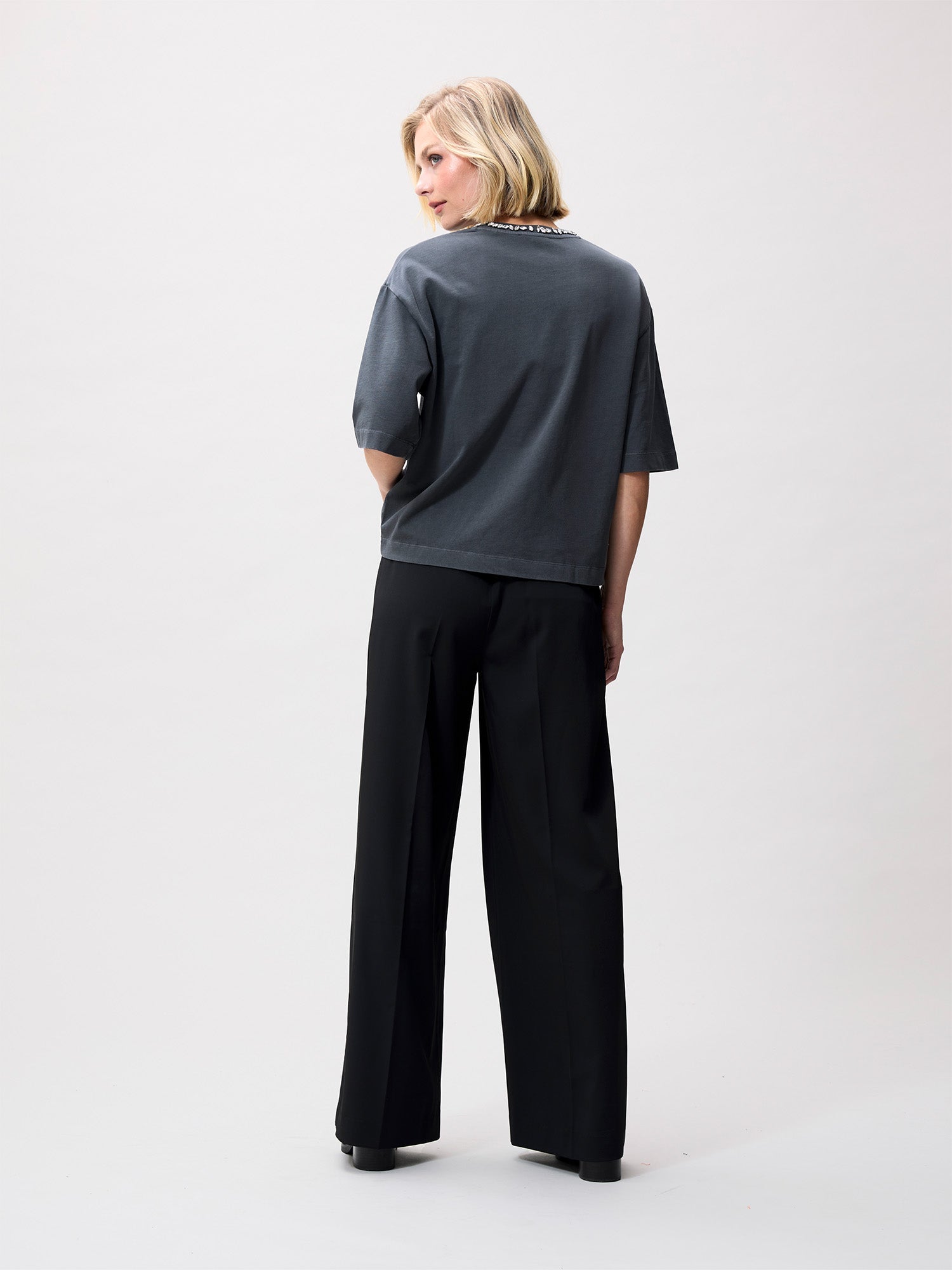 De Carbon Tee van Catwalk Junkie heeft een rechte, boxy pasvorm en is gemaakt van 100% biologisch katoen. De grijze kleur krijgt een opvallend detail door de strassstenen langs de halslijn. Een clean T-shirt met een subtiele glans die elke look net wat sterker maakt.
