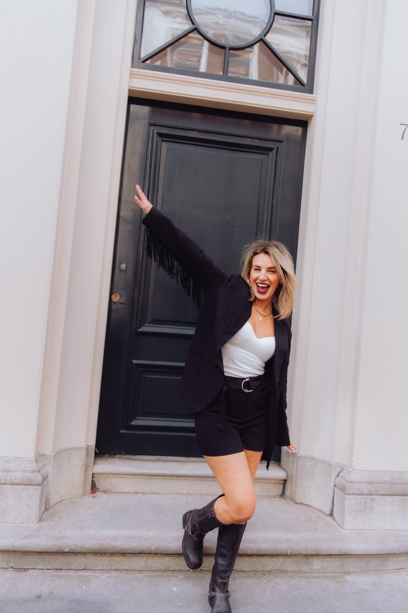Ashley is 1,67m lang en draagt altijd maat S of S/M.