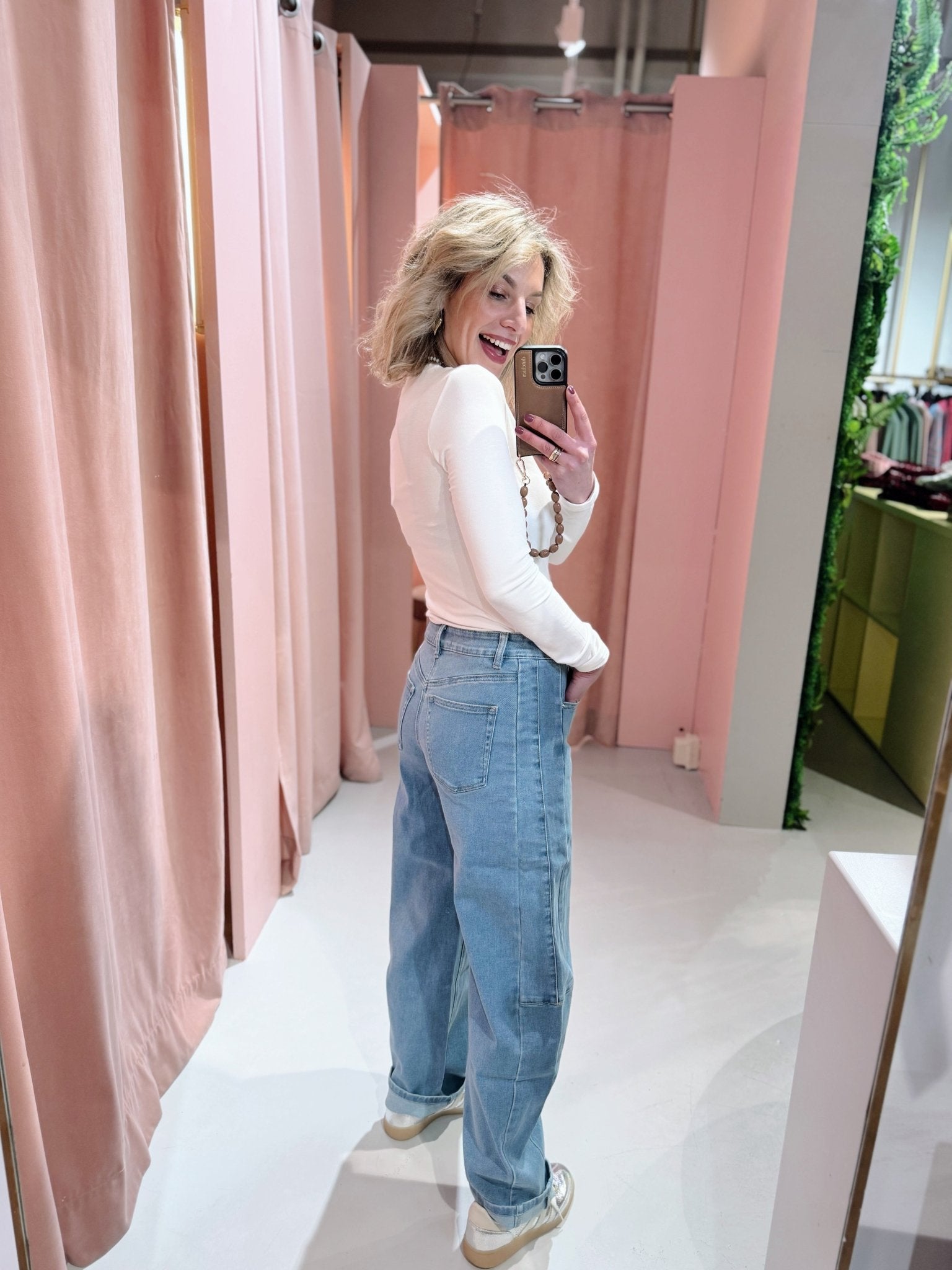 De stof bevat veel stretch, waardoor de jeans comfortabel zit en fijn meebeweegt. Geen stijve denim, maar een perfecte basic die je de hele dag wilt dragen. De opvallende naden geven een extra detail en maken deze ballon jeans net wat unieker dan een standaard model.