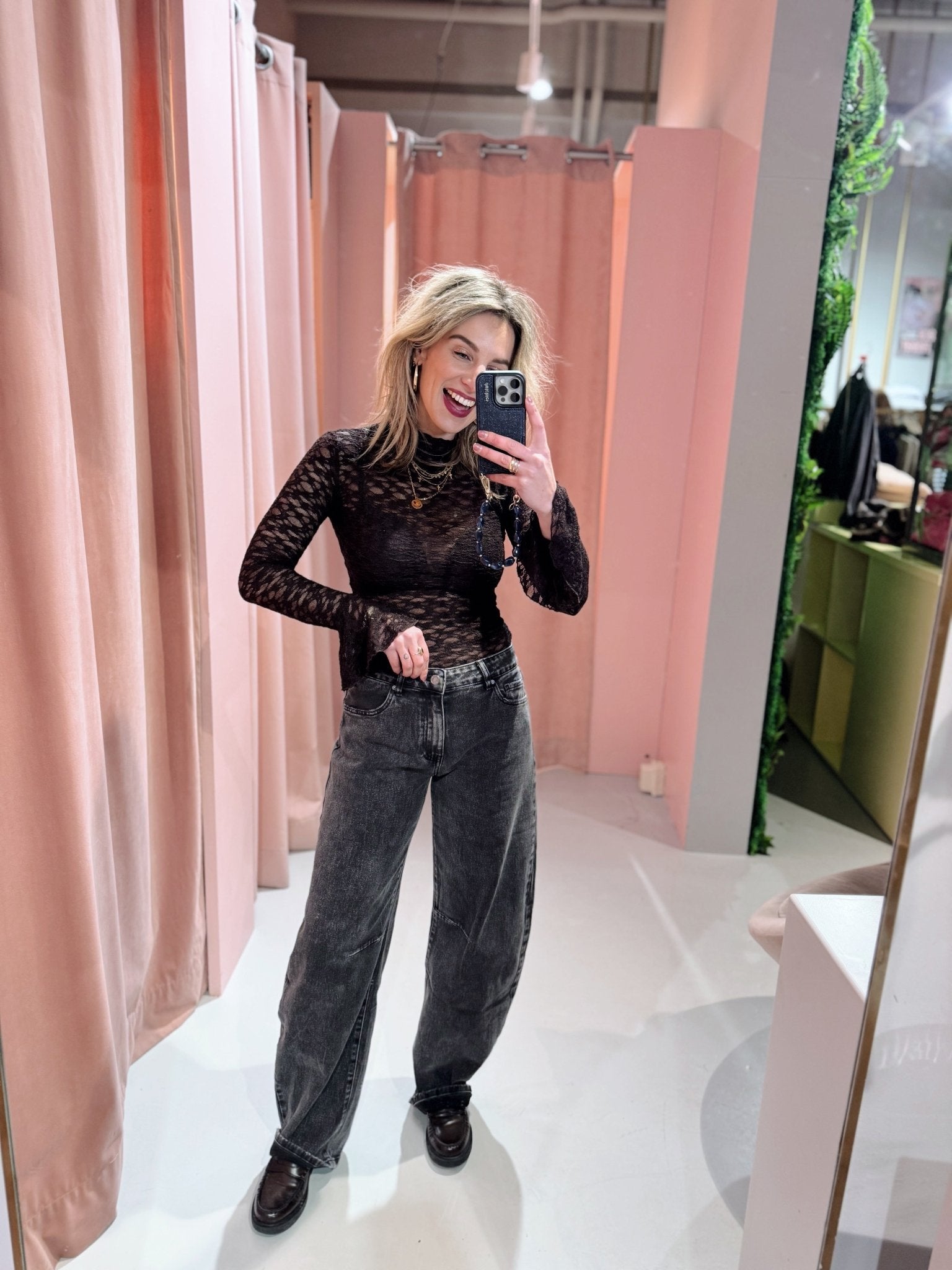 Jessica is 1,65m lang en draagt altijd maat S of S/M.