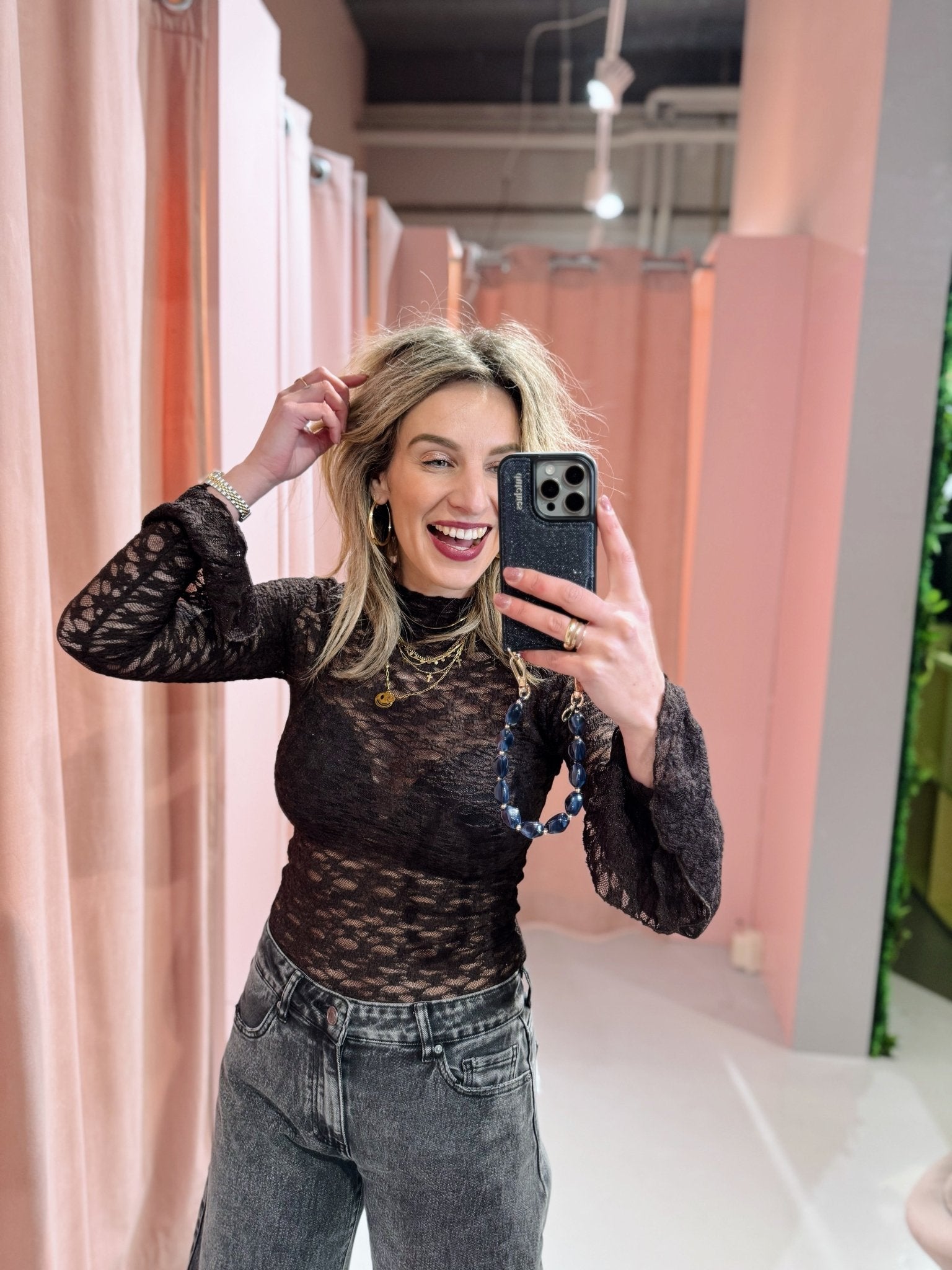 De Lucy Lace Top in bruin is een kanten top gemaakt van een kanten stof en heeft veel stretch. De top heeft lange trompetmouwtjes en een hoge, rechte halslijn. Deze top is een echte musthave voor onder je favoriete sweater, T-shirtof blazer!