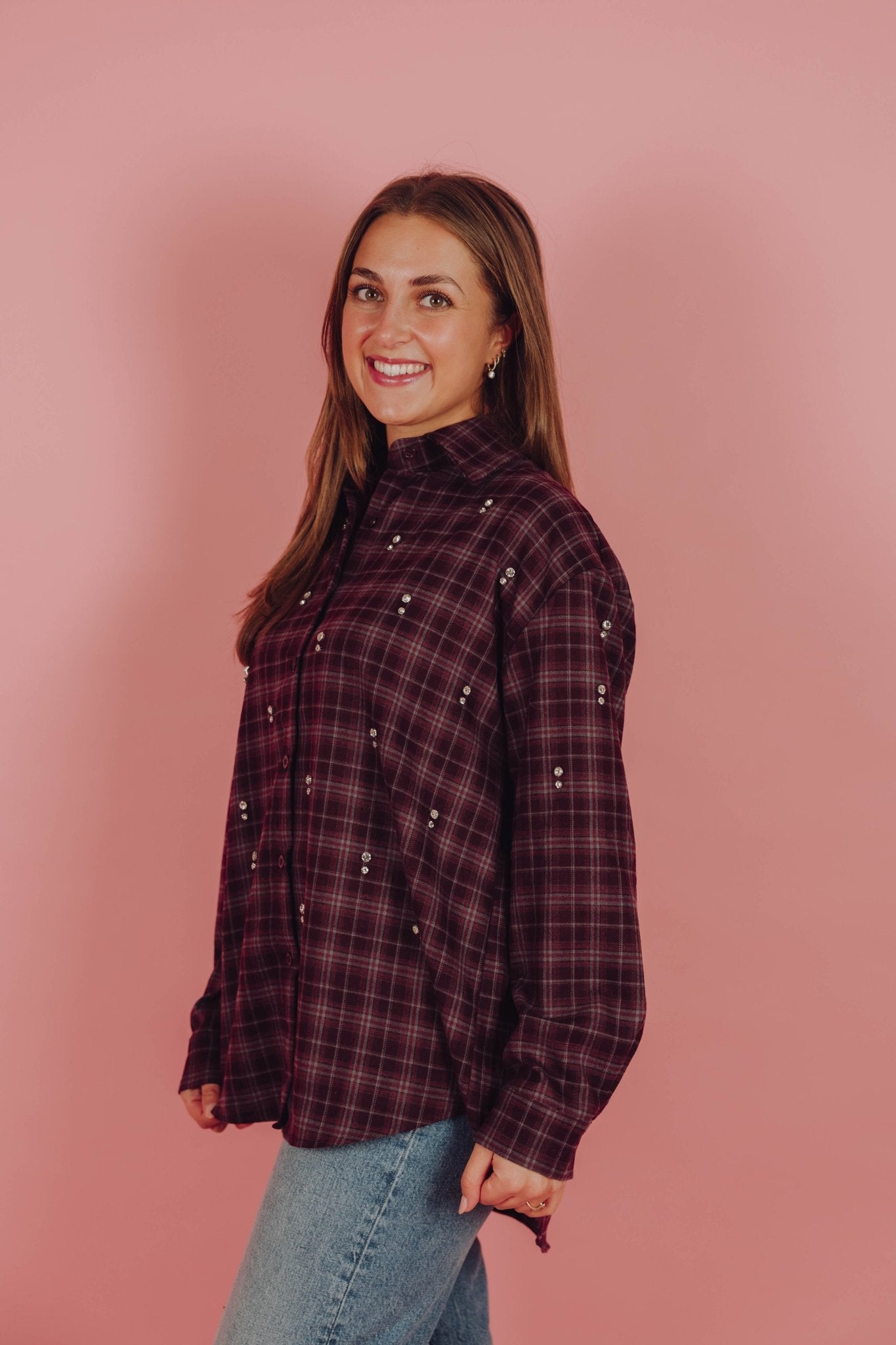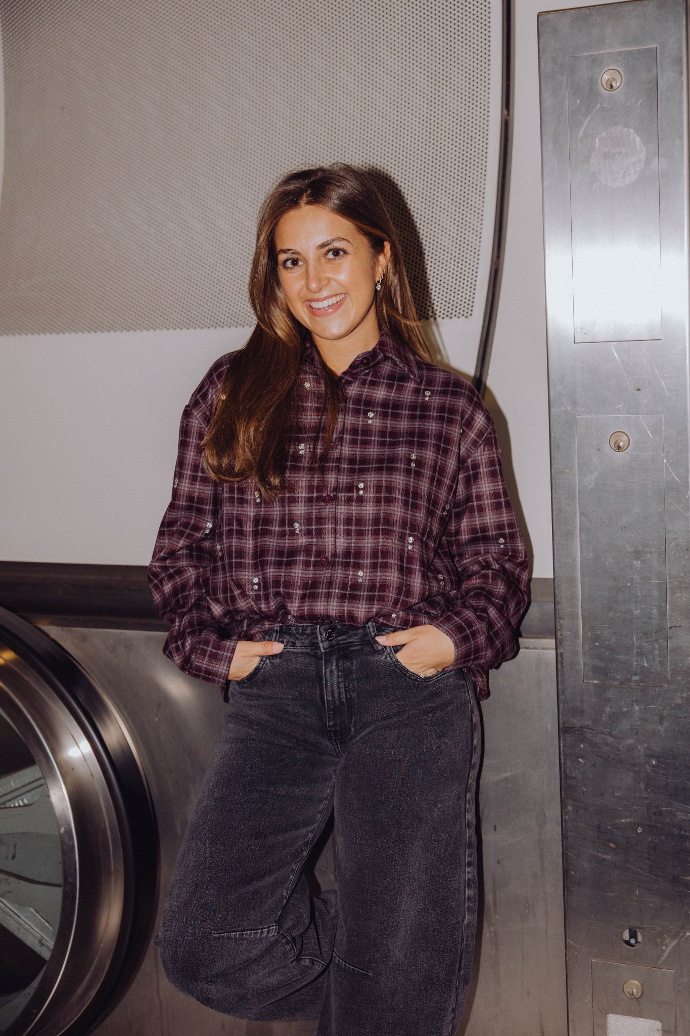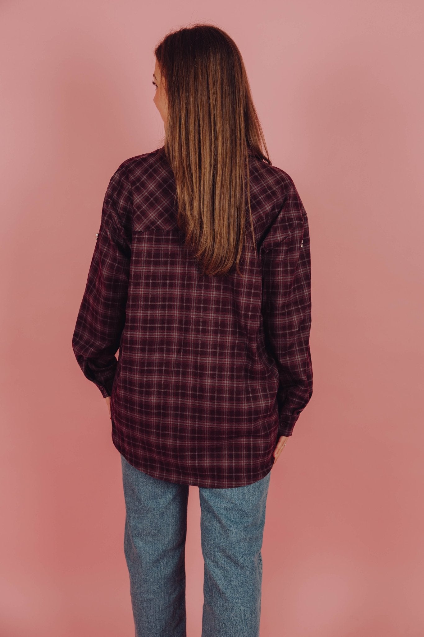 Deze Maeve blouse in bordeaux is gemaakt van een zachte flannel stof en is voorzien van lange mouwen en een kraagje. Daarnaast heeft de blouse een ruitjes patroon en een oversized fit. Je kunt de blouse gemakkelijk sluiten door middel van de knoopsluiting aan de voorkant. Wat deze blouse extra leuk maakt, zijn de glimmende strass studs.