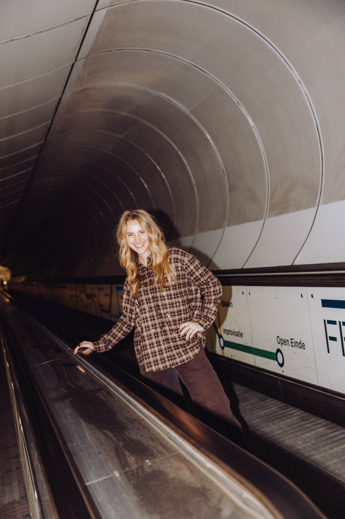 Deze Maeve blouse in bruin is gemaakt van een zachte flannel stof en is voorzien van lange mouwen en een kraagje. Daarnaast heeft de blouse een ruitjes patroon en een oversized fit. Je kunt de blouse gemakkelijk sluiten door middel van de knoopsluiting aan de voorkant. Wat deze blouse extra leuk maakt, zijn de glimmende strass studs.