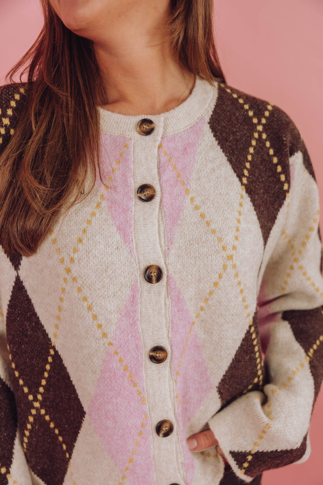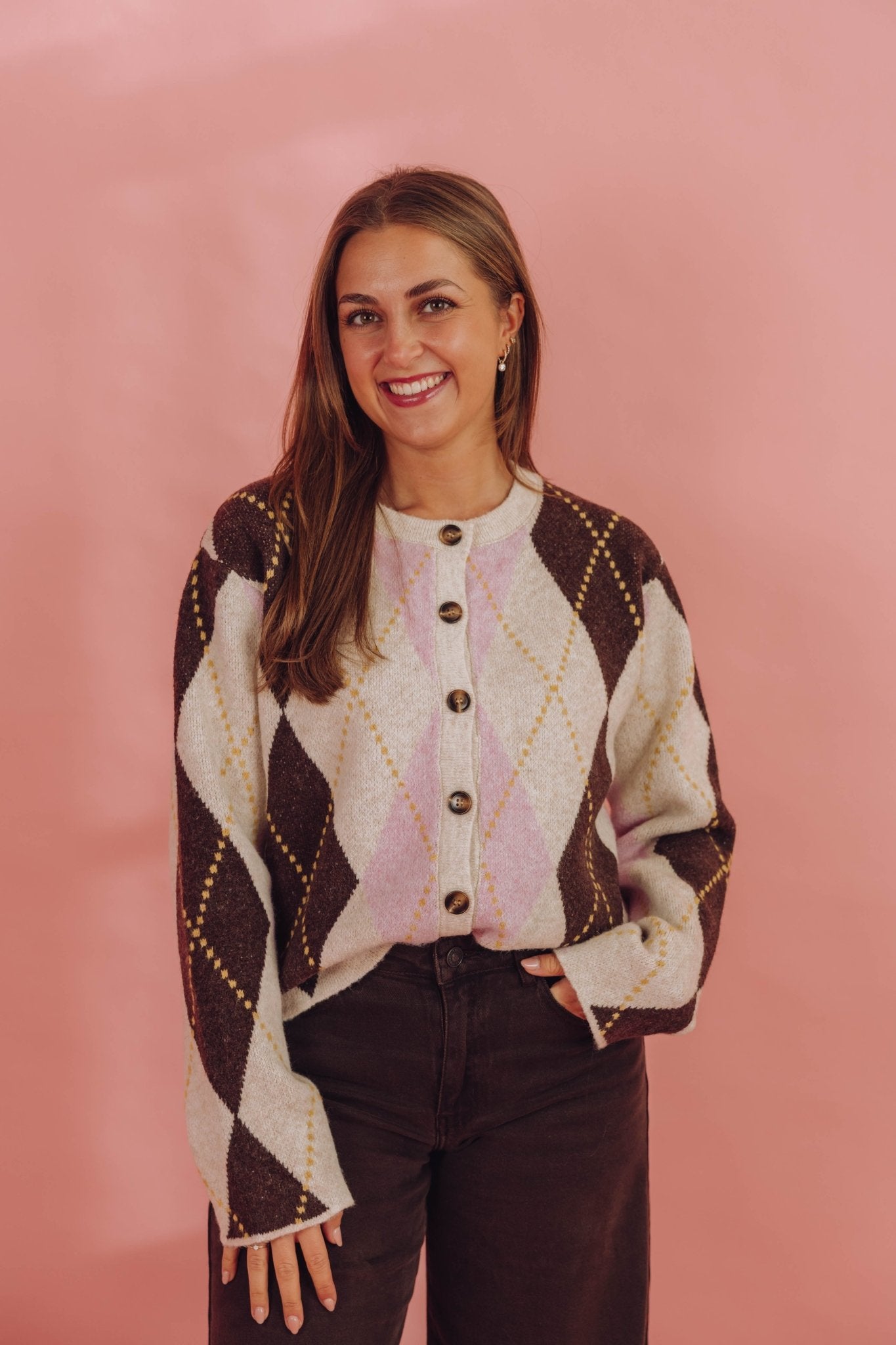 De Marit Cardigan in beige is gemaakt van een gebreid materiaal, waardoor hij heerlijk warm is! Het vest heeft lange mouwen en een ronde halslijn en is voorzien van een ruitjes patroon waarin de kleuren combi bruin met donker blauw perfect tot zijn recht komt. Het vest is gemakkelijk te sluiten door middel van de knoopsluiting aan de voorkant.
