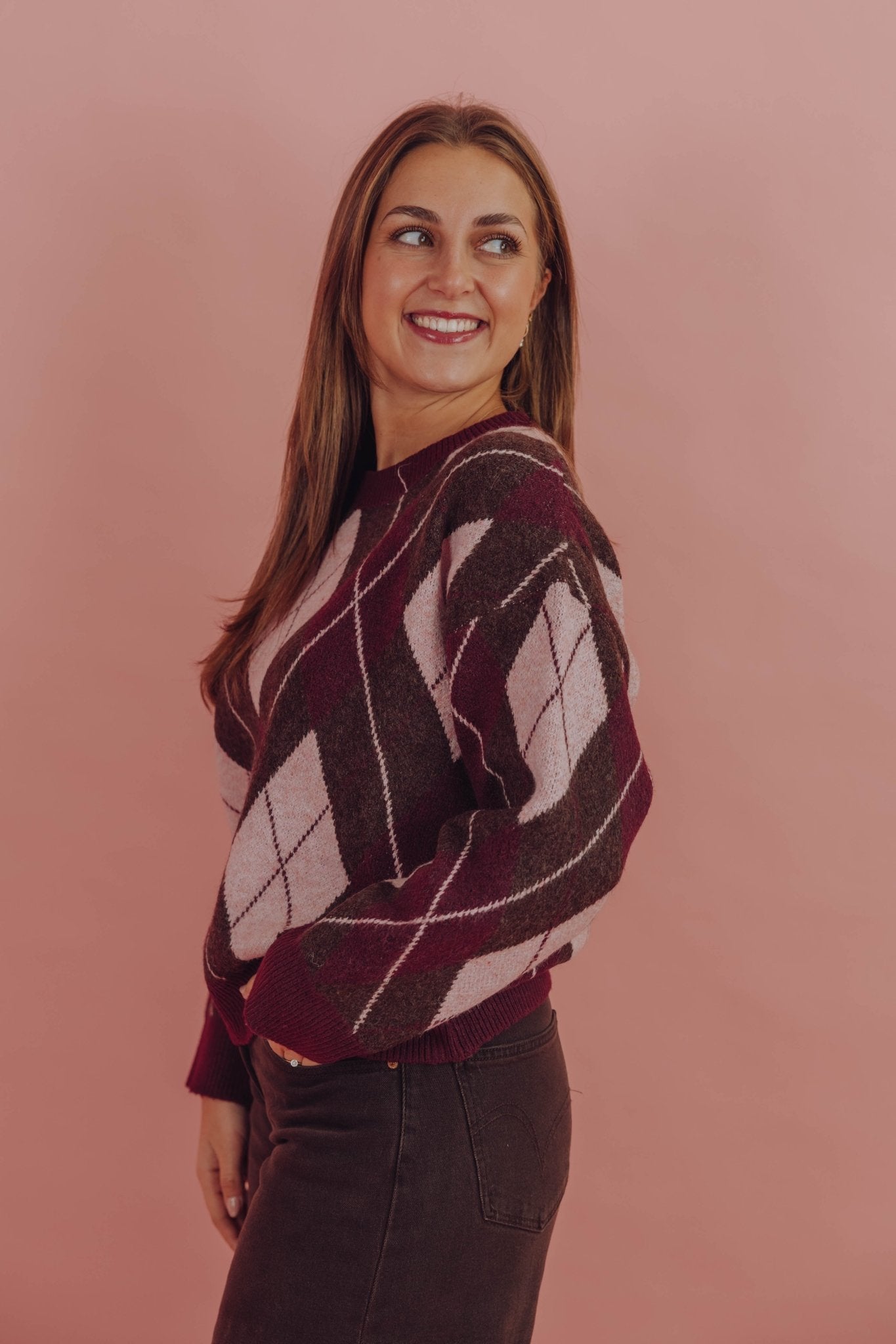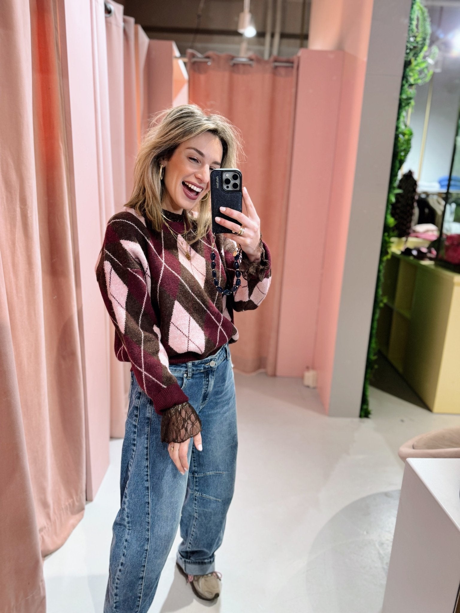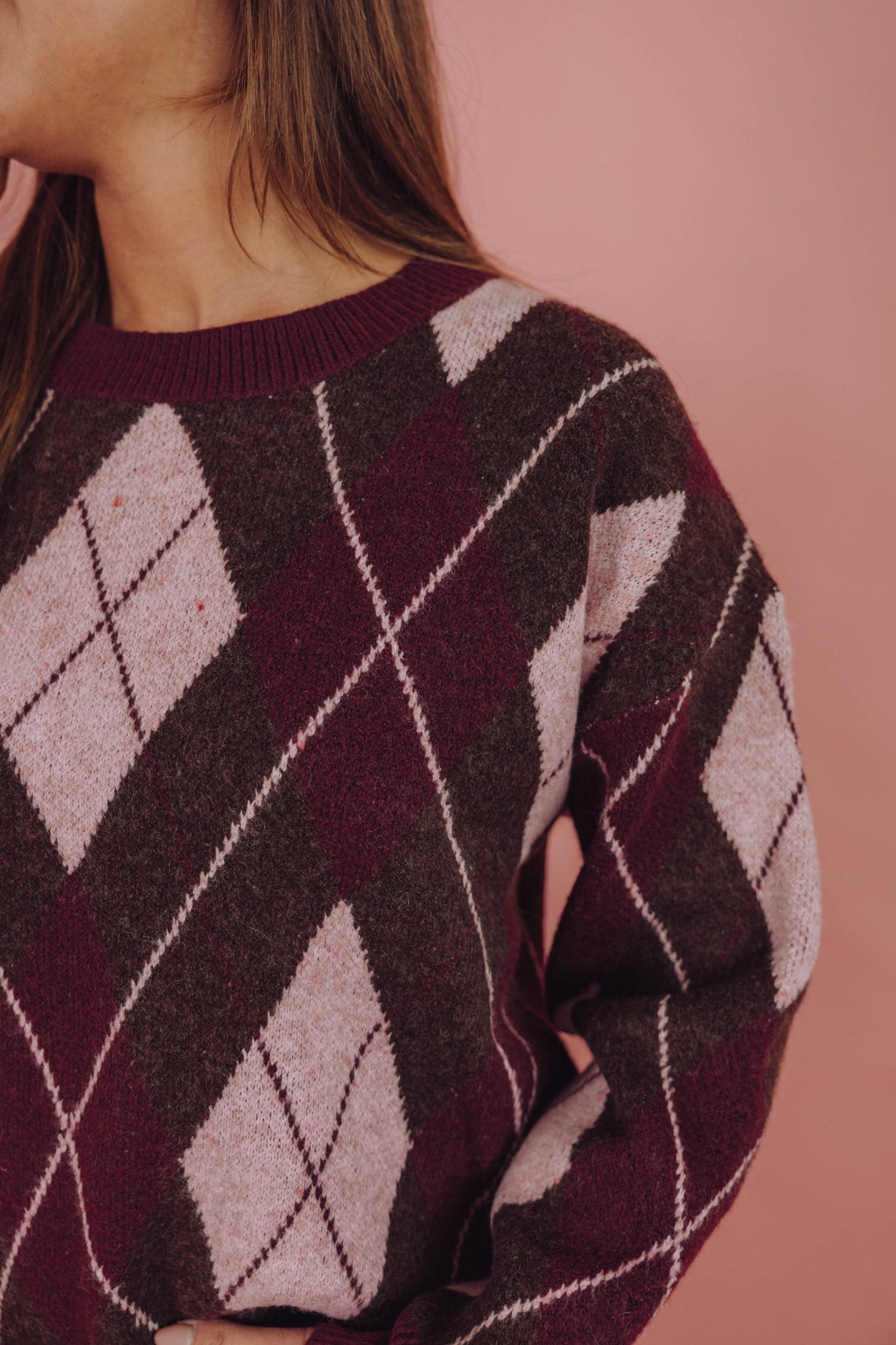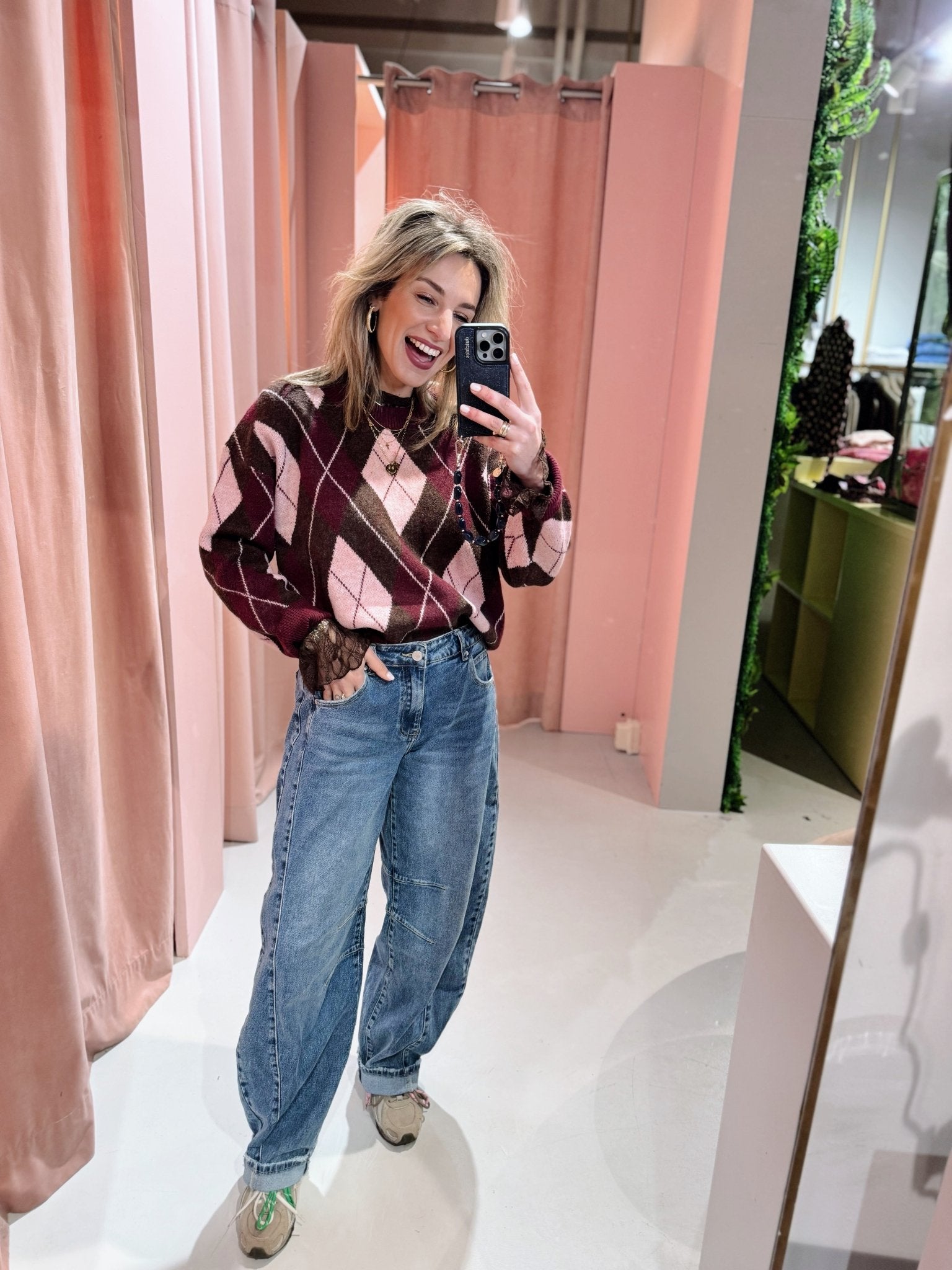 De Marlous Sweater in roze is gemaakt van een gebreid materiaal, waardoor hij heerlijk warm is! De trui heeft lange mouwen en een ronde halslijn en is voorzien van een ruitjes patroon waarin de kleuren combi bordeaux met roze perfect tot zijn recht komt.