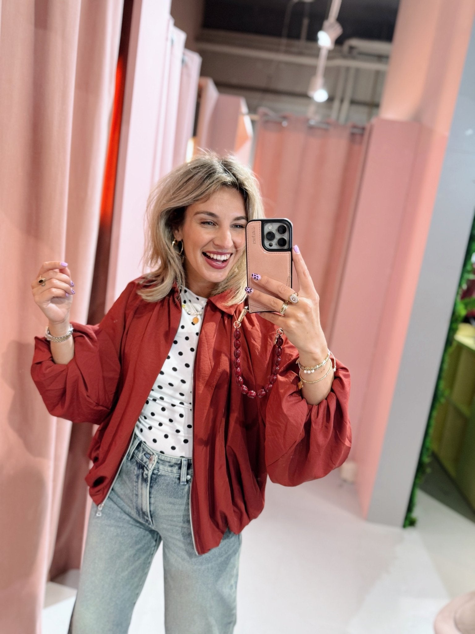 De Maud Jacket in brodeaux is een fijn tussenjasje. Het jasje heeft een kort model en heeft lange pofmouwen. Daarnaast is het jasje voorzien van een kraagje en een ritssluiting.