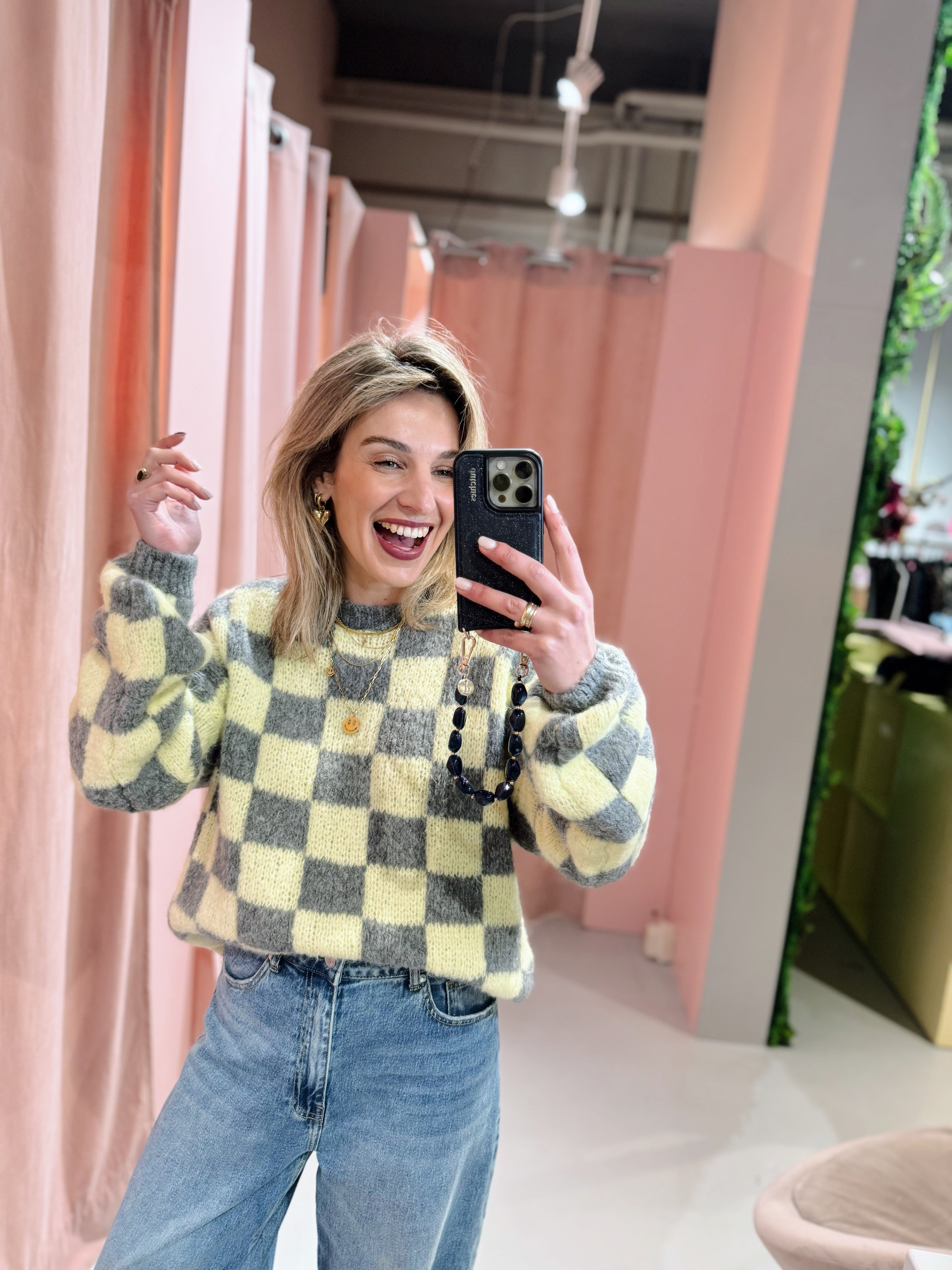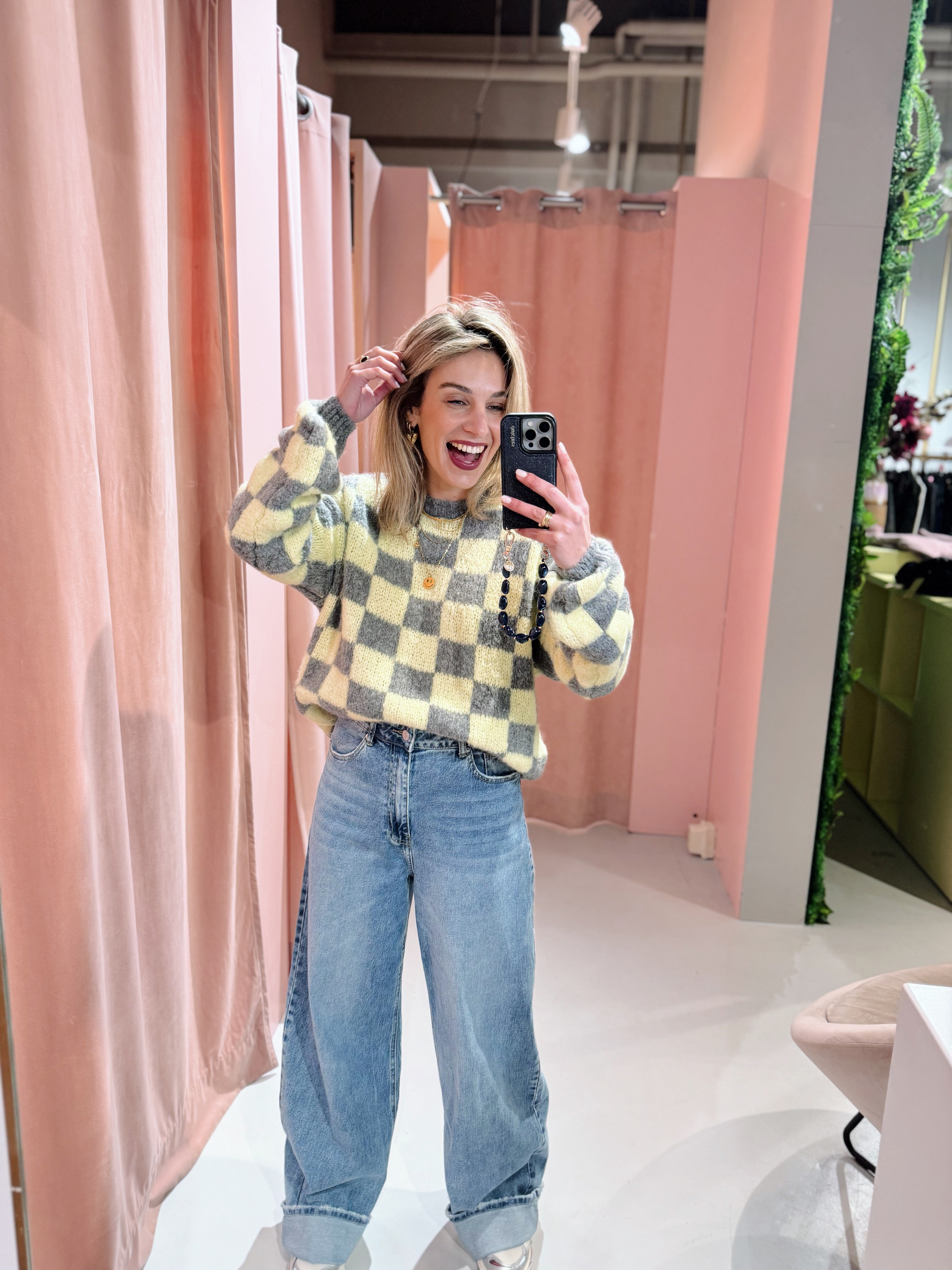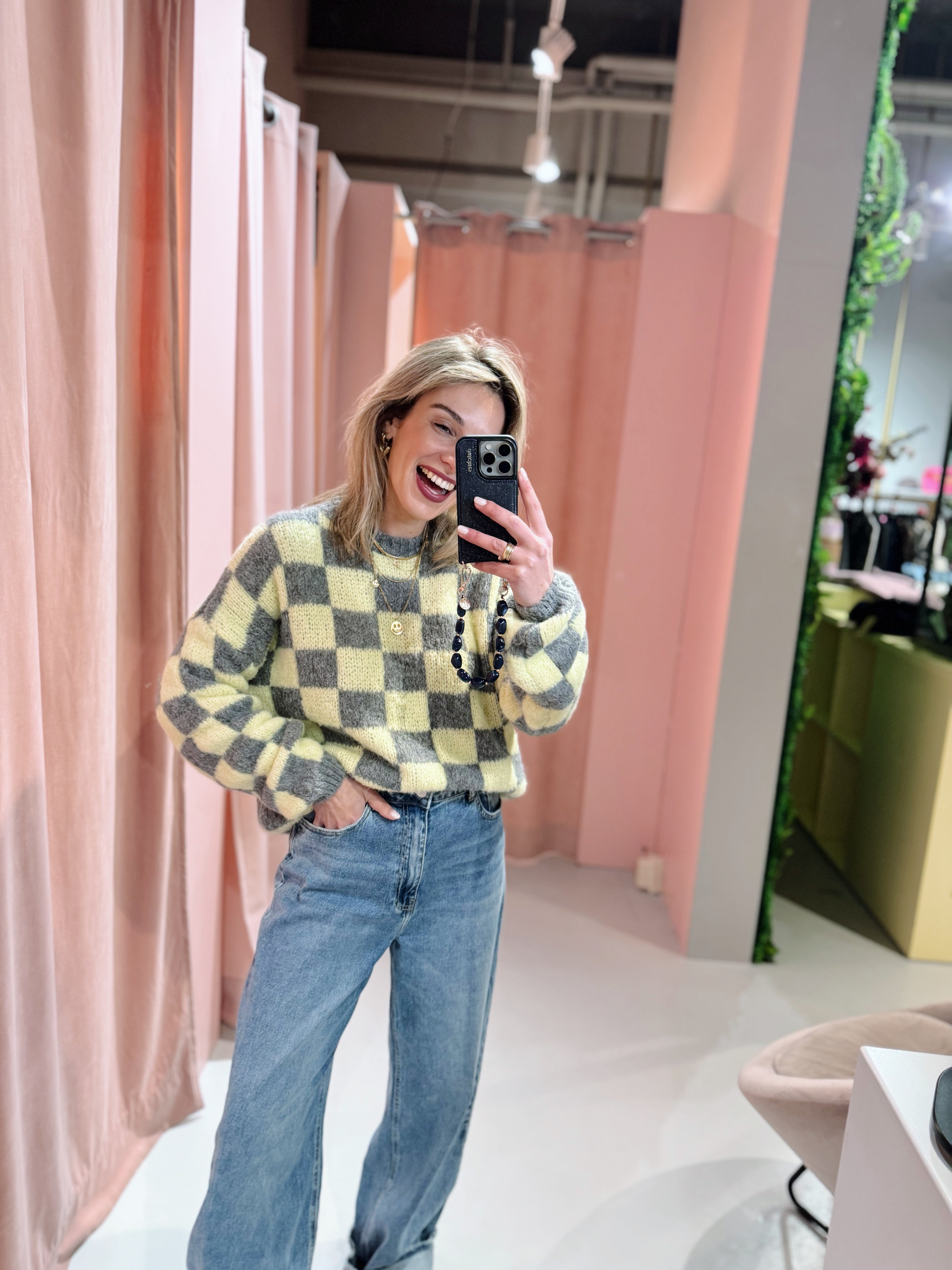 De Mexy Knit in grijs is een knit met een oversized model. De trui is gemaakt van een gebreid materiaal, heeft lange mouwen en een ronde halslijn. Doordat de trui voorzien is van een blokjes patroon, is het een leuke kleurrijke toevoeging aan je outfit!