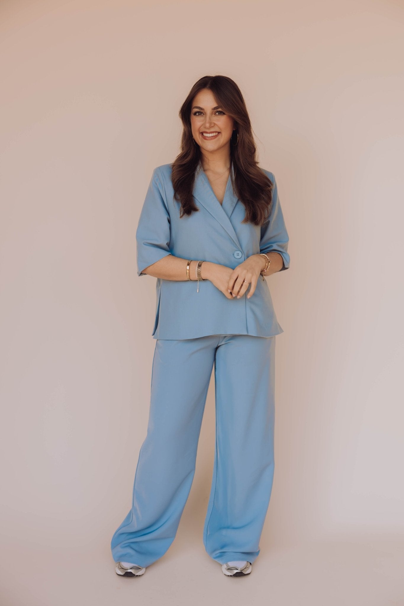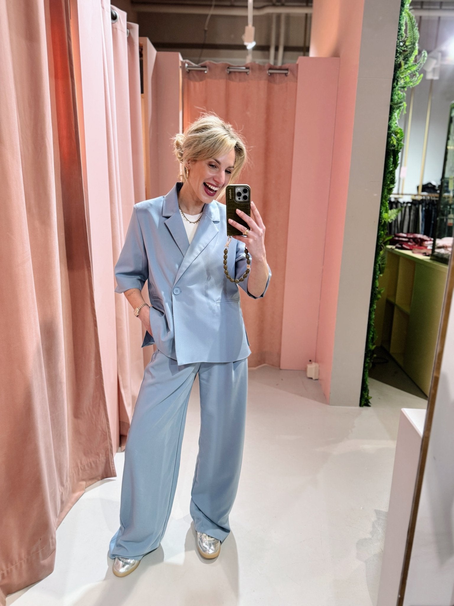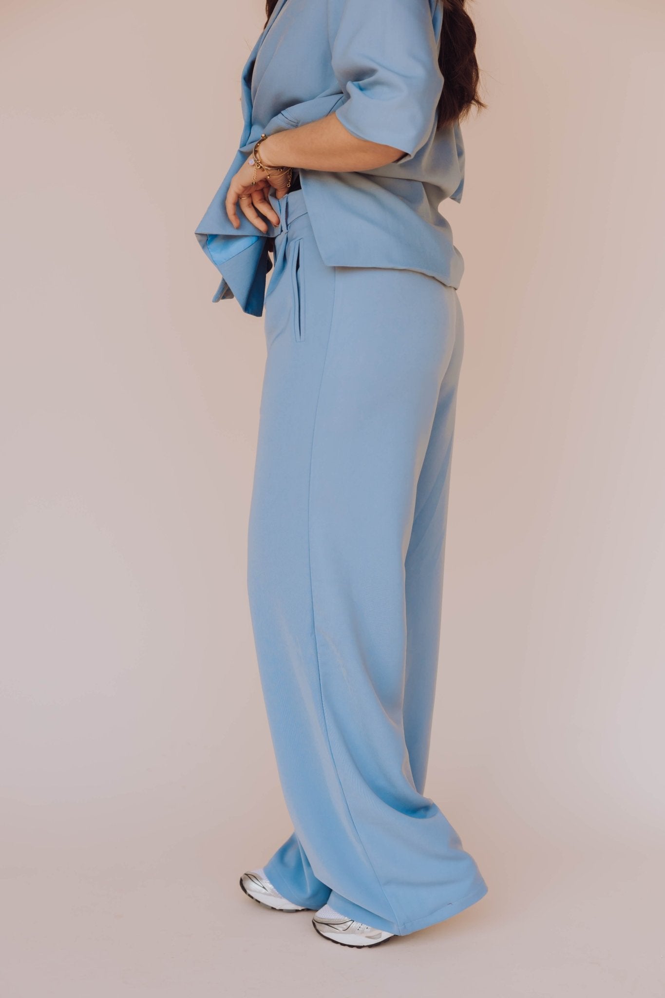 De Miley Pants in blauw is een wide leg pantalon met steekzakken, nep kontzakjes en een sluiting met rits en knoop. De broek is voorzien van een elastische tailleband en door de riemlusjes kun je hem ook dragen met je favoriete riem! Het fijne aan deze broek? Hij is speciaal gemaakt voor onze lange meiden!Combineer deze broek met de Miley Blazer voor een complete set.