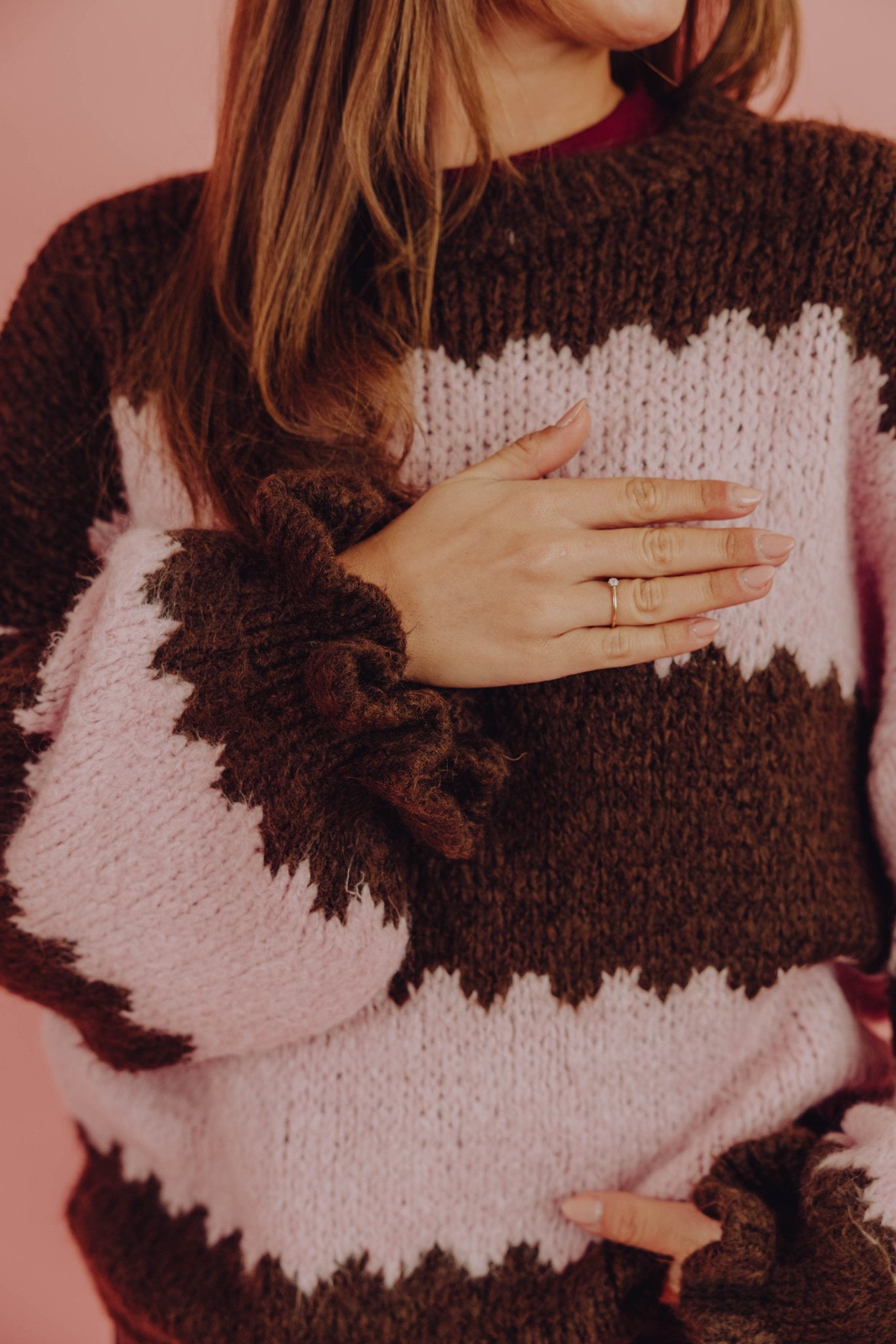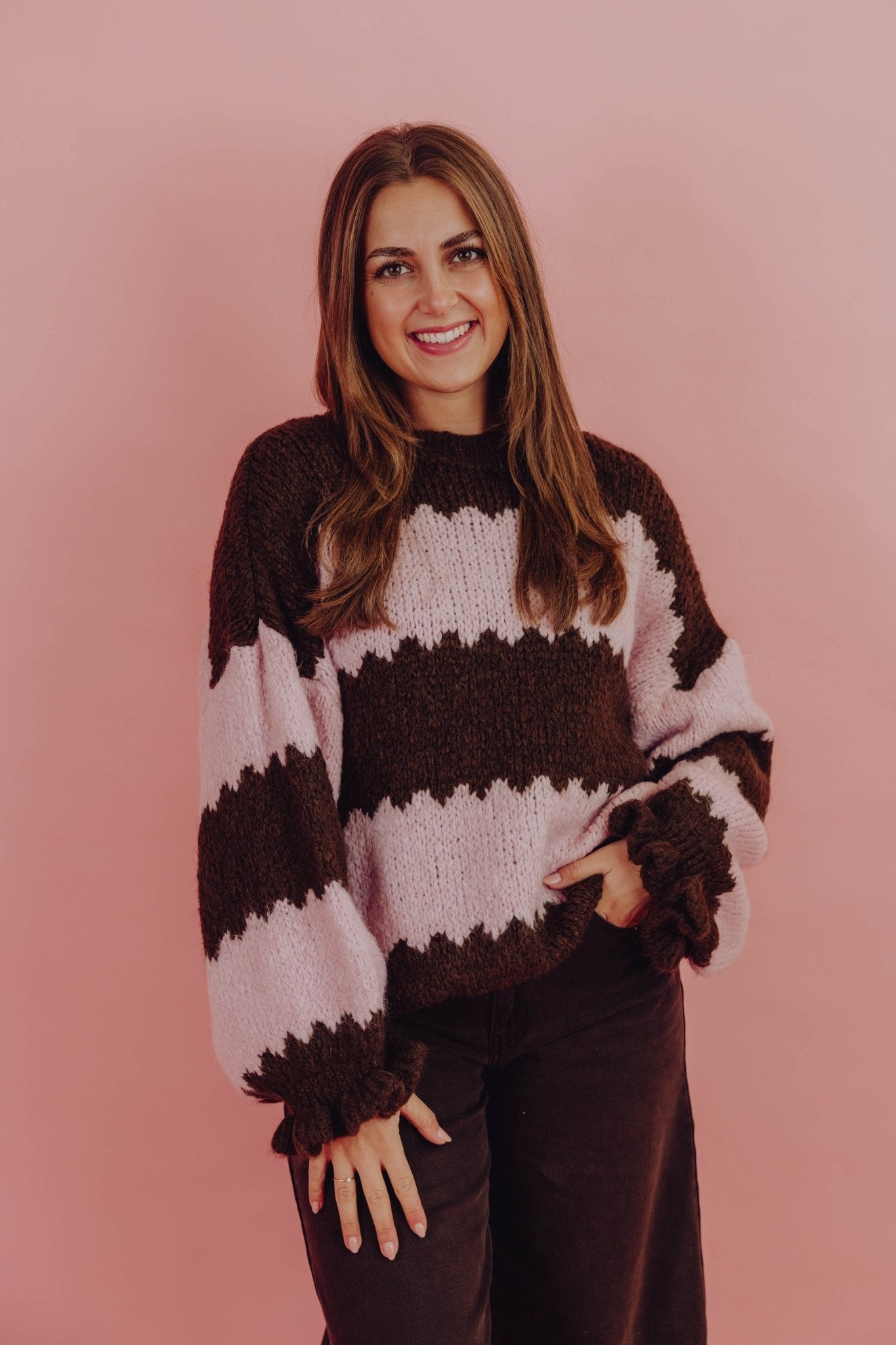 De Milly Knit in roze is een knit met een oversized model. De trui is gemaakt van een gebreid materiaal, heeft lange mouwen met ruches met een ronde halslijn. Doordat de trui voorzien is van een streep patroon, is het een leuke kleurrijke toevoeging aan je outfit!