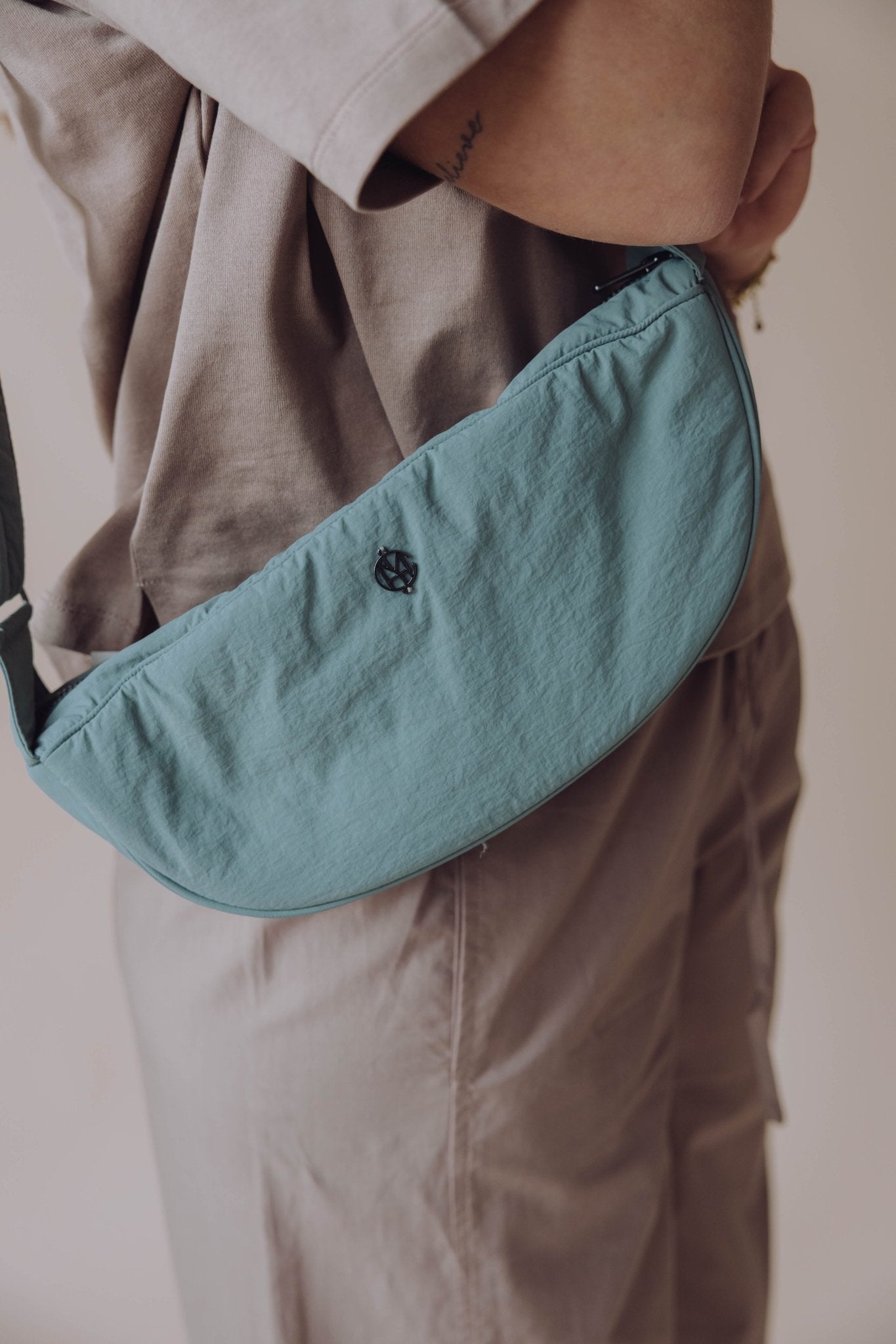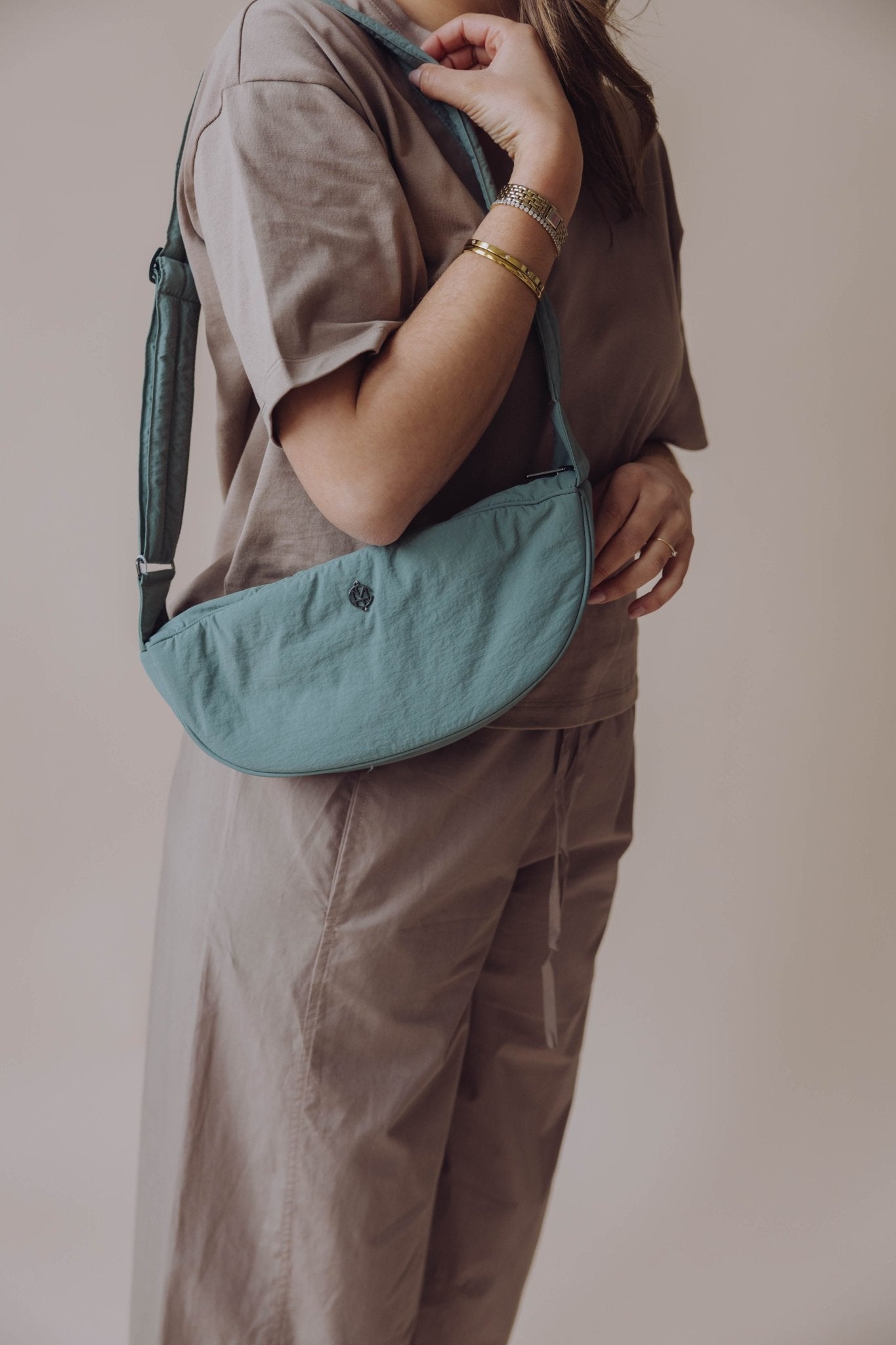 Deze compacte crossbody tas is perfect voor dagen waarop je licht op pad wilt. Het halfronde model en de gewatteerde structuur geven de tas een moderne en sportieve look.