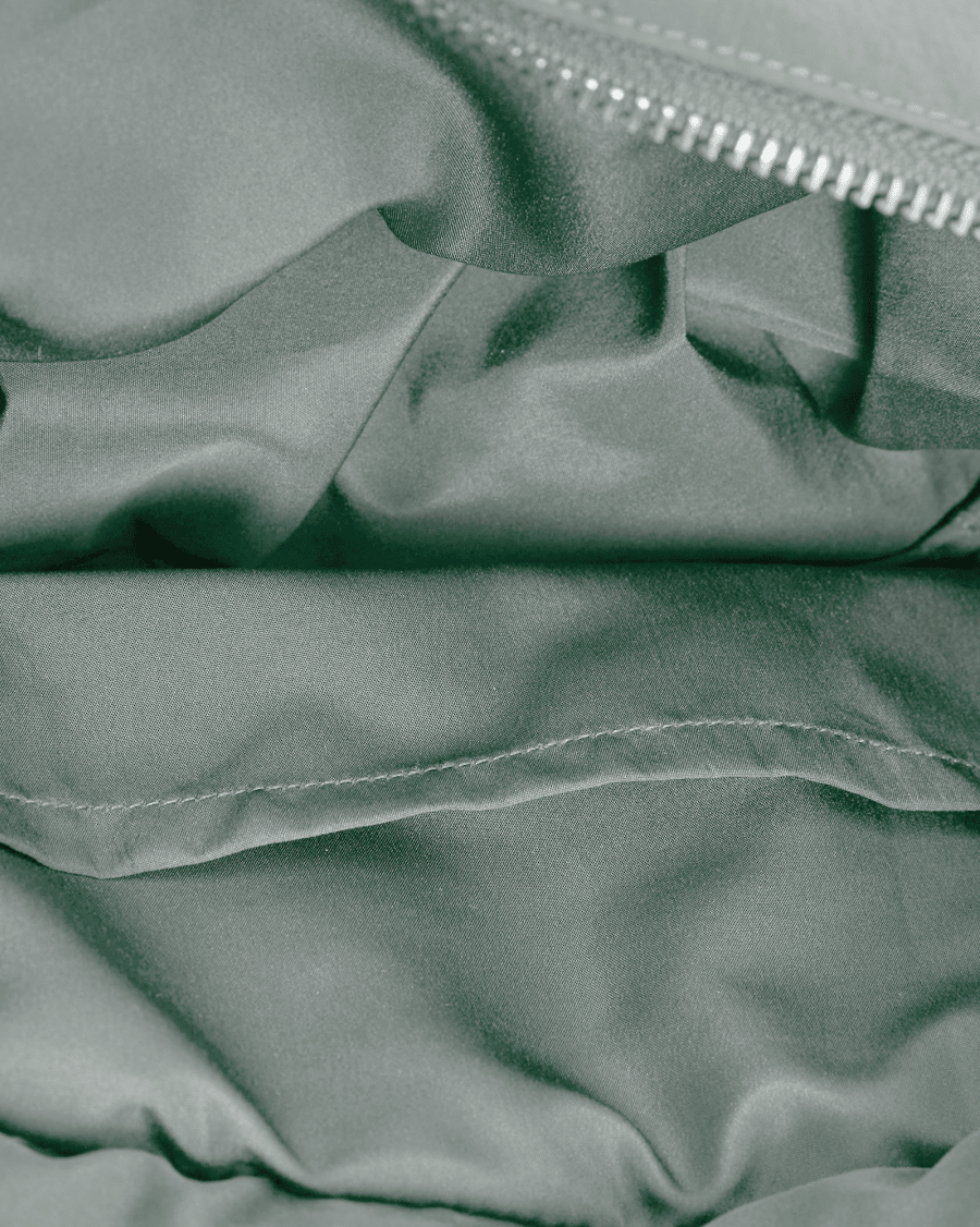De zachte groene kleur maakt hem makkelijk te combineren met al je outfits. Praktisch, licht en stijlvol tegelijk.