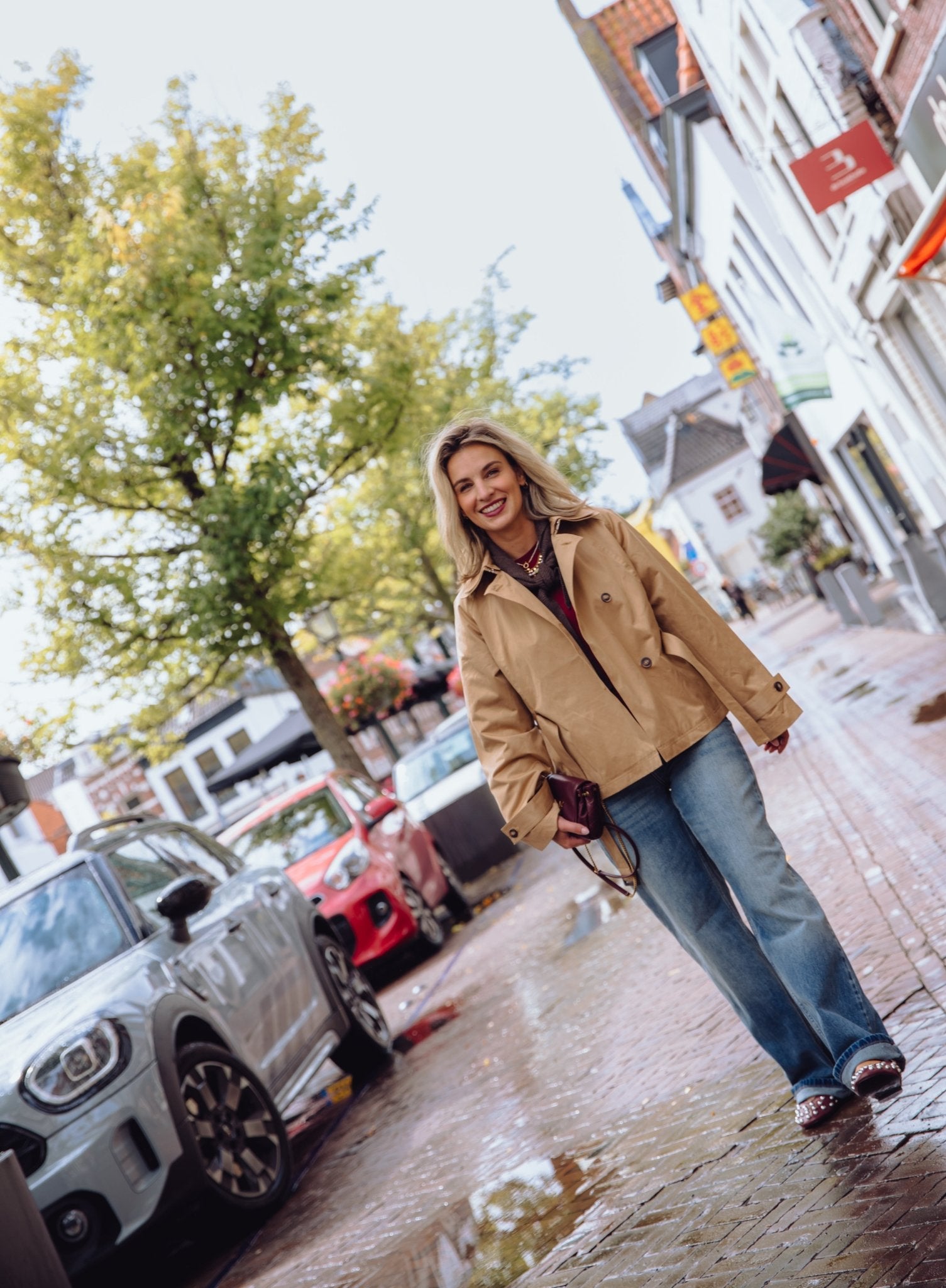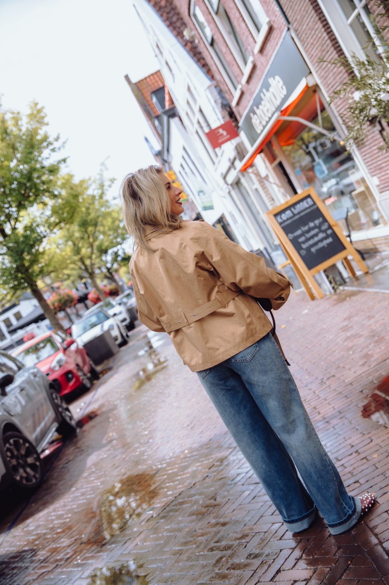 De MSCHKishia Blix Jacket is een frisse twist op de klassieke trenchcoat. Kort, stijlvol en toch tijdloos. Dit jasje combineert een double-breasted sluiting met een bijpassende tailleceintuur die het silhouet elegant accentueert. De stevige maar zachte stof valt mooi en geeft een verfijnde look, terwijl de kraag en gespsluitingen zorgen voor die herkenbare trenchcoat-vibe. Met de verstelbare manchetten pas je de mouwen makkelijk aan en creëer je net die extra nonchalante of strakke uitstraling. Dit jack is ideaal voor de overgangsseizoenen.