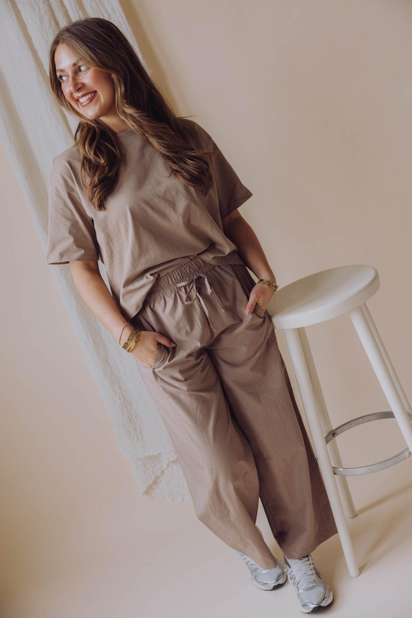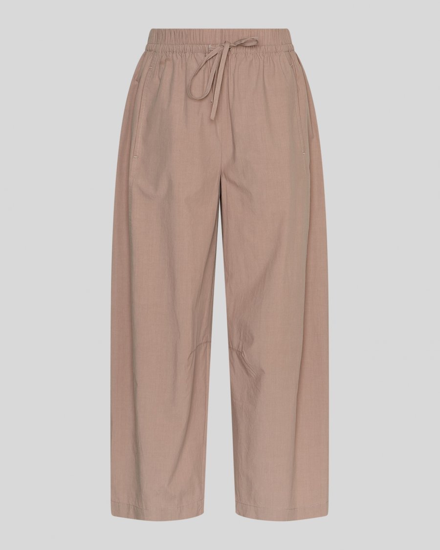 De lichte geweven stof voelt zacht aan en valt soepel, ideaal voor warmere dagen. De warme beige kleur maakt de broek super veelzijdig en makkelijk te combineren met al je favoriete tops, blouses of een basic T-shirt.