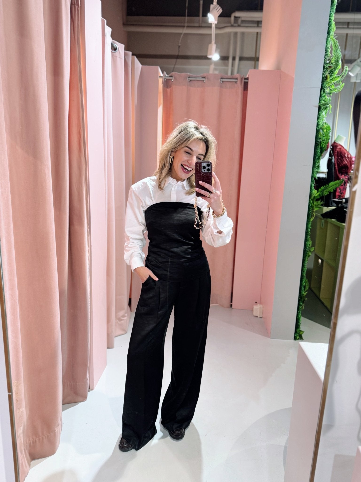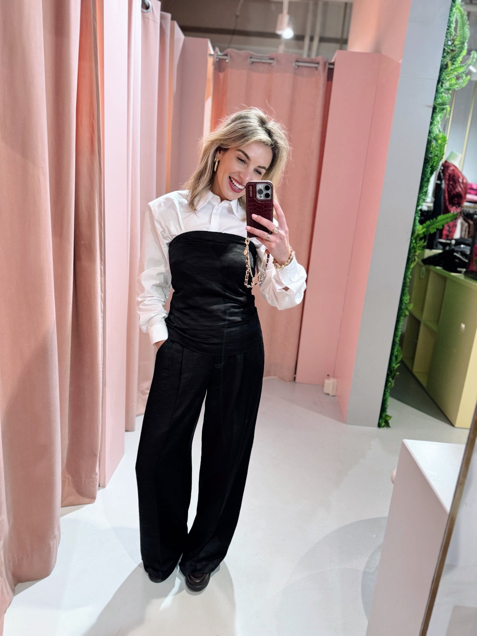 De MSCHSpencer Strapless Top in zwart is een aangesloten strapless top met een rechte halslijn en een korte ritssluiting aan de achterkant. De top is gemaakt van een satijnachtige stof met een subtiele structuur, wat zorgt voor een luxe en verfijnde uitstraling. Dankzij de getailleerde pasvorm sluit de top mooi aan op het lichaam en biedt hij een elegante basis voor zowel casual als formele looks.