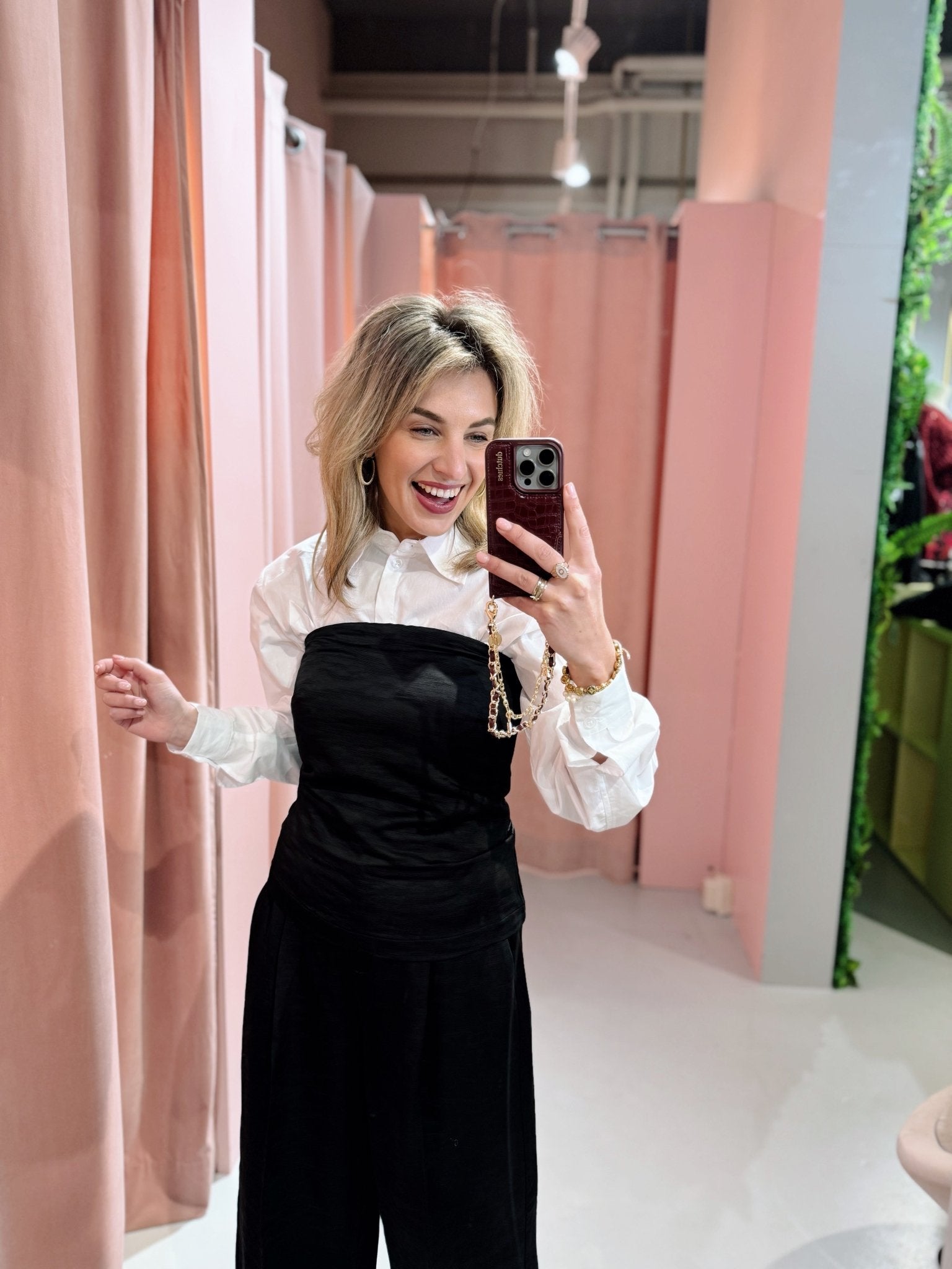 Pasvorm: Deze top heeft een aangesloten pasvorm en valt op maat.
