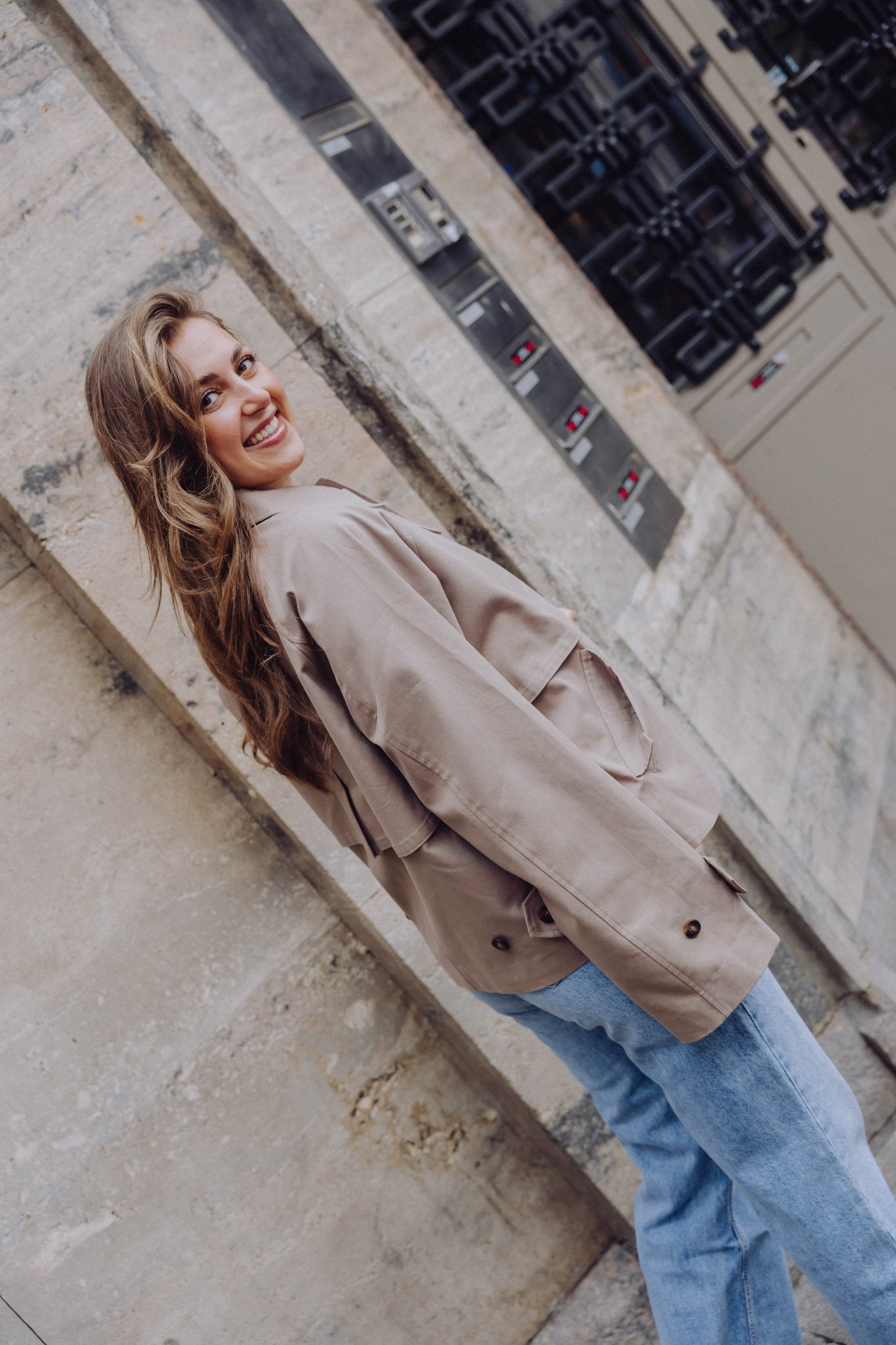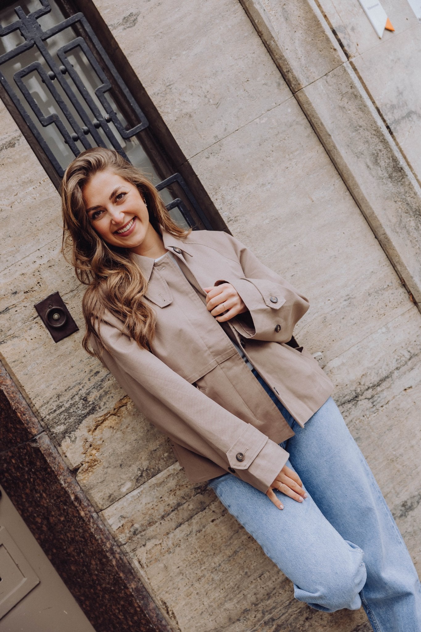 Deze korte jas heeft een tijdloos ontwerp met een moderne uitstraling en heeft een relaxed fit met raglanmouwen voor extra bewegingsvrijheid. Het model is voorzien van een klassieke kraag, een blinde sluiting aan de voorkant en praktische steekzakken. De manchetten zijn verstelbaar en aan de achterkant zorgt een rugpas met plooi voor een mooie pasvorm. Een veelzijdige tussenjas die perfect is voor het voorjaar en najaar.