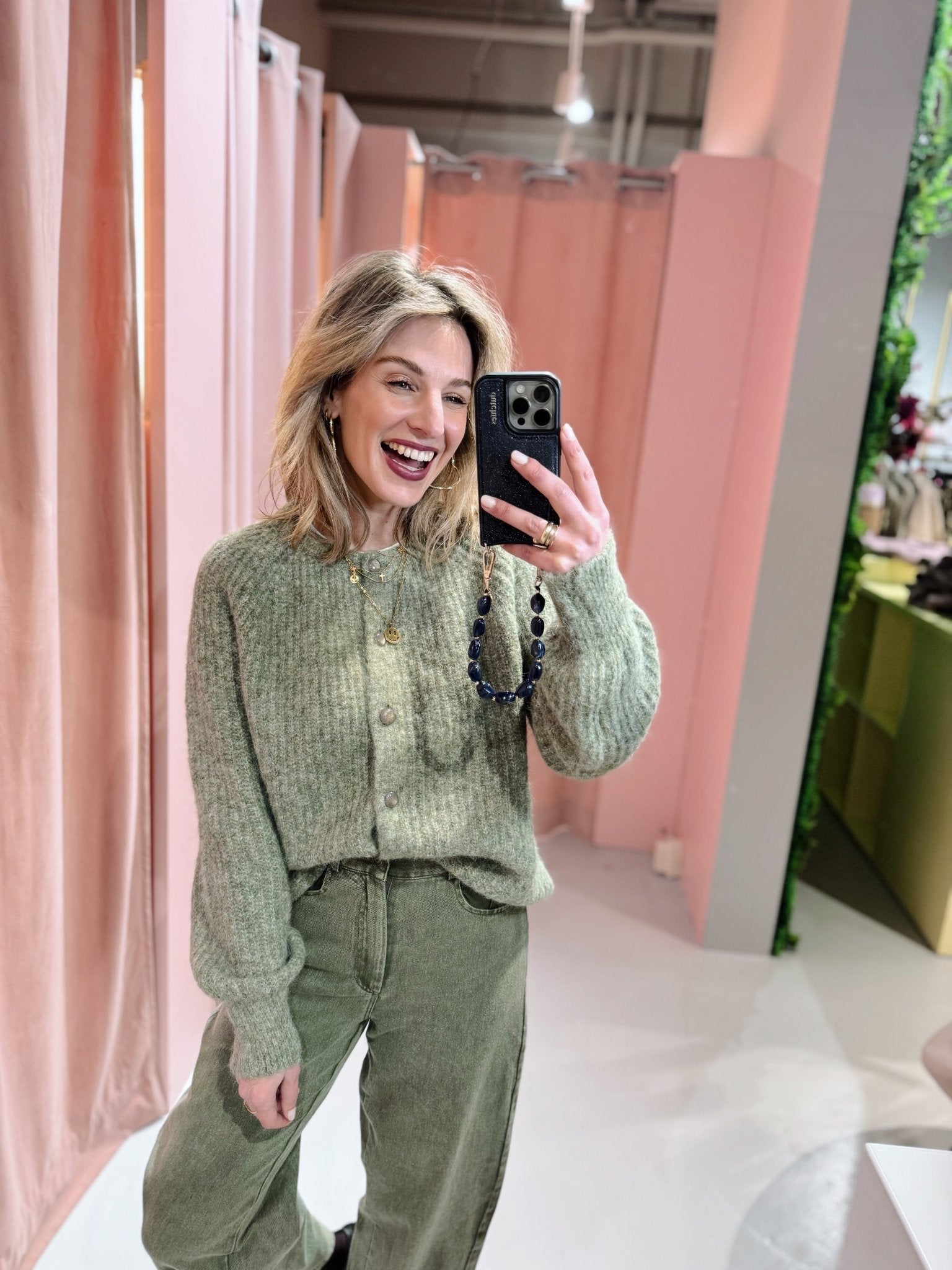De Nesrin Cardigan in groen heeft een boxy fit en is gemaakt van een zachte, gebreide stof. Het vest heeft lange mouwen, een ronde hals en een knoopsluiting. Ideaal om te dragen in laagjes met het koude weer!