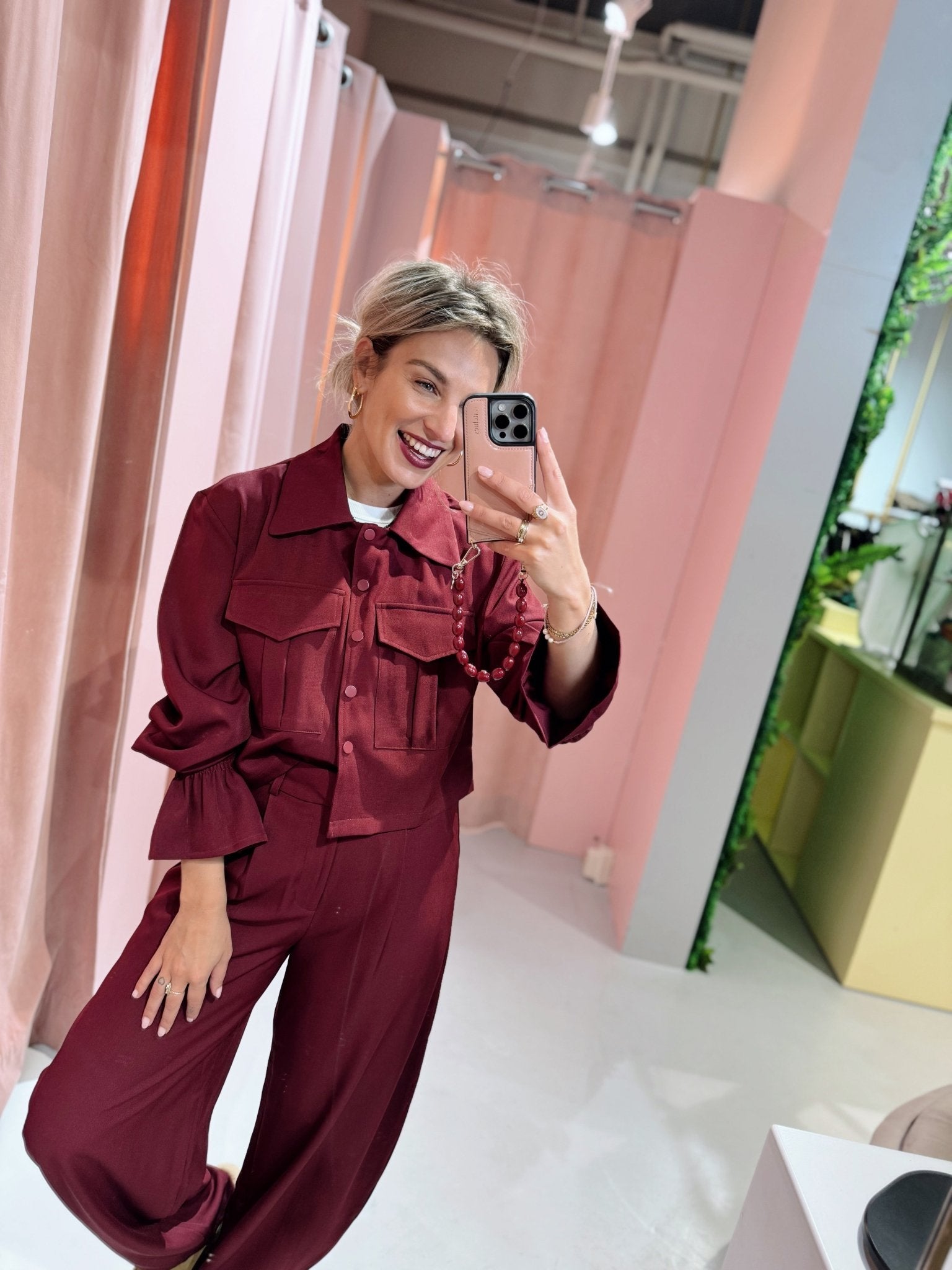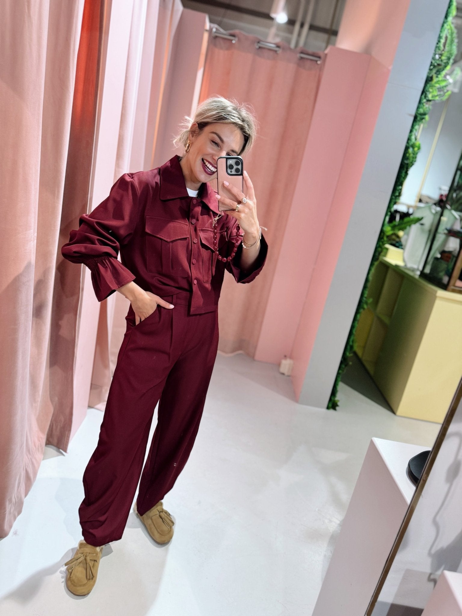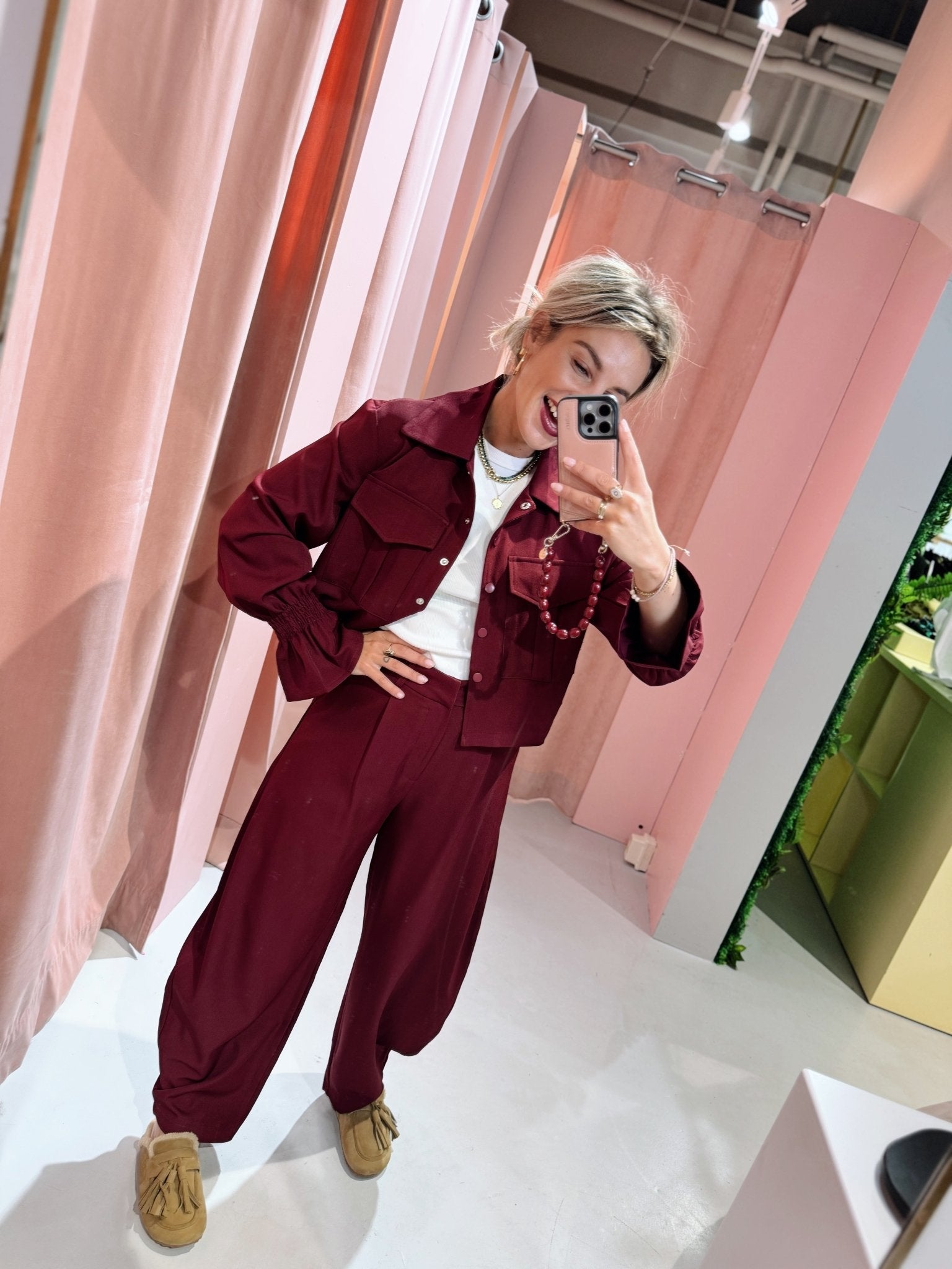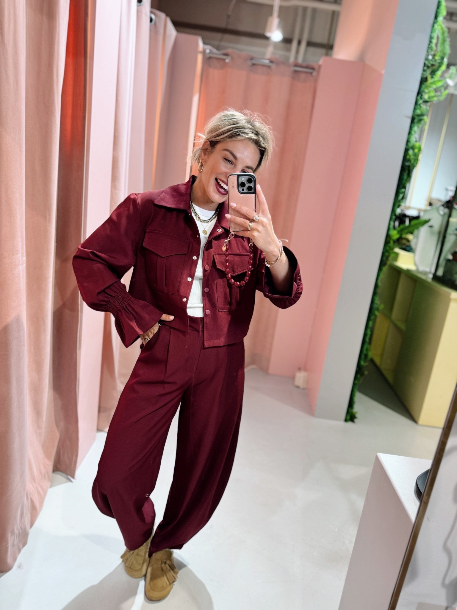 De Nina Pants in bordeaux is een comfortabele balloon fit pantalon met een schuif sluiting en twee steekzakken. Daarnaast heeft de broek riemlusjes, waardoor je de broek ook met je favoriete riem kunt dragen. Combineer deze broek met de Milou Jacket voor een complete set.