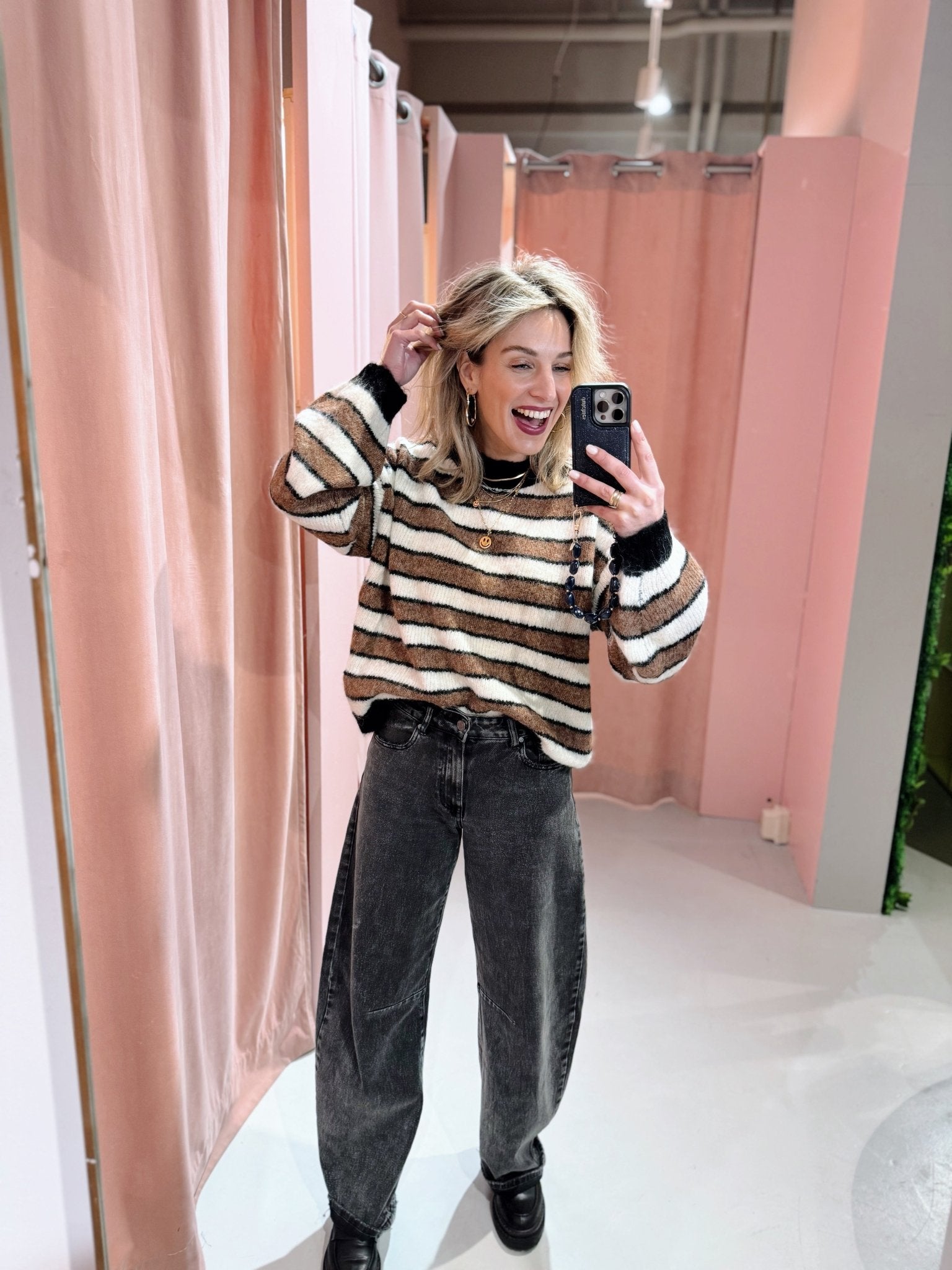 Jessica is 1,65m lang en draagt altijd maat S of S/M.