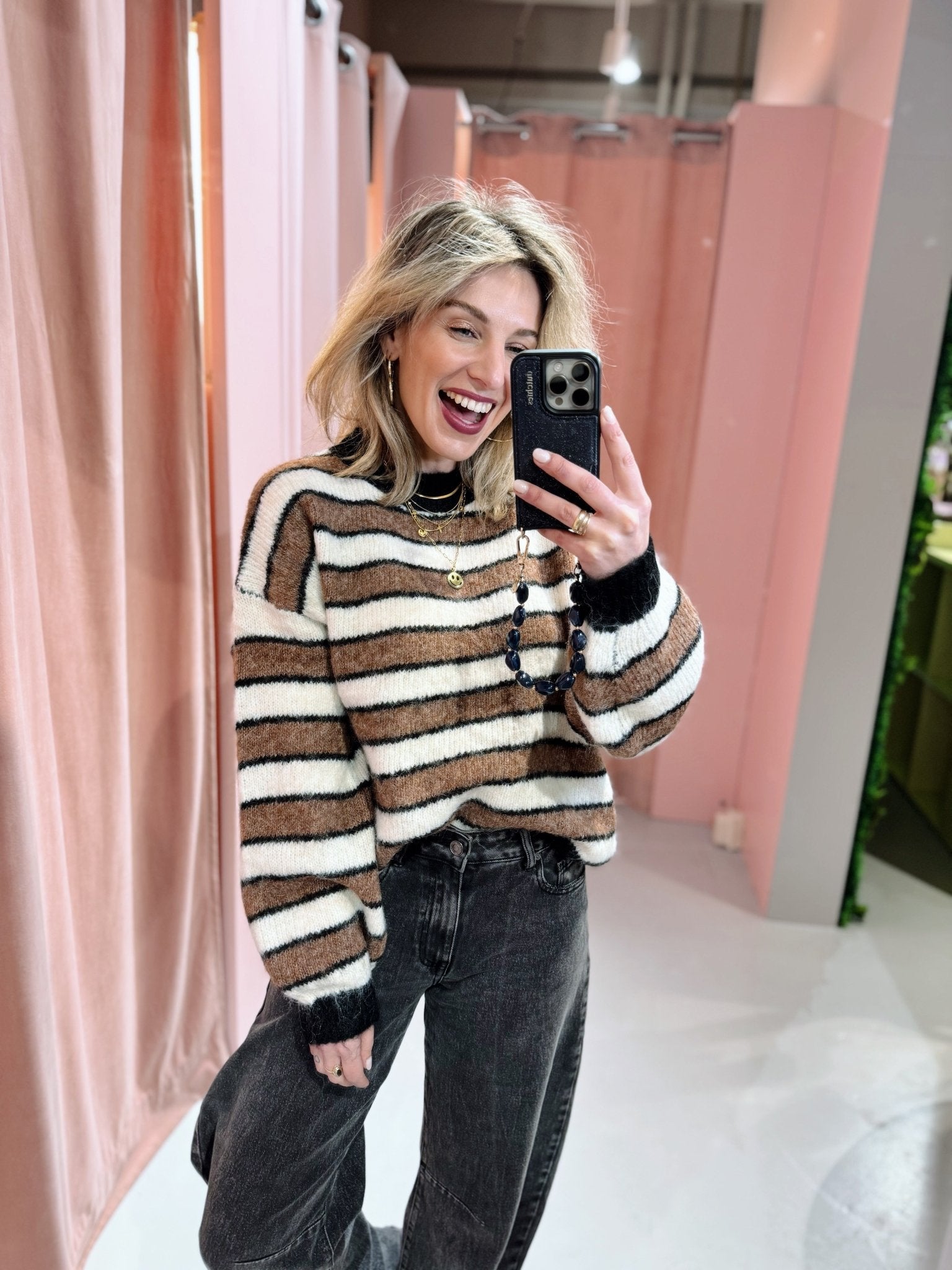De Noah Knit in bruin is een knit met een oversized model. De trui is gemaakt van een gebreid materiaal, heeft lange mouwen en een ronde halslijn. Doordat de trui voorzien is van een streep patroon, is het een leuke kleurrijke toevoeging aan je outfit!