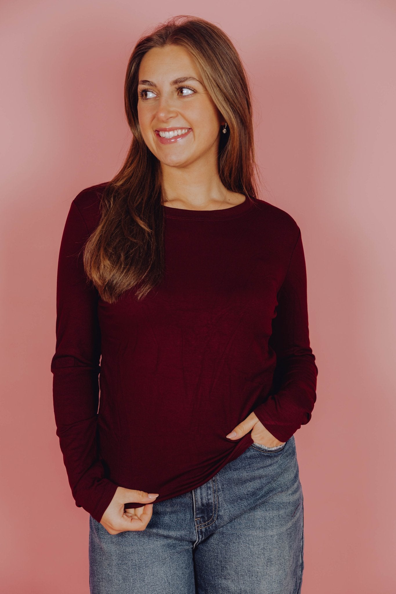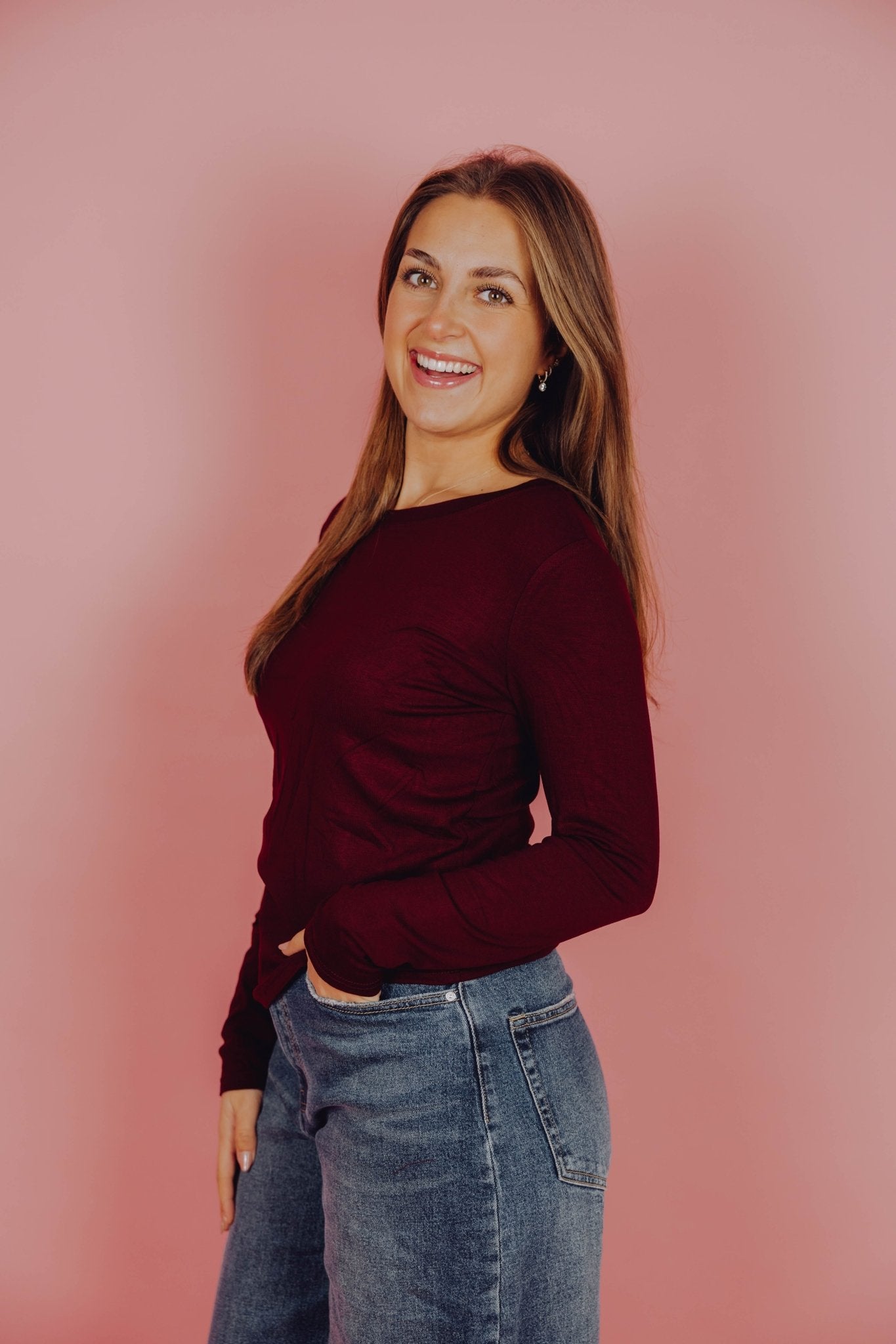 De Oakley Longsleeve in bordeaux is een top met een aansluitend model. De top heeft lange mouwen met een ronde halslijn en is de perfecte basic.