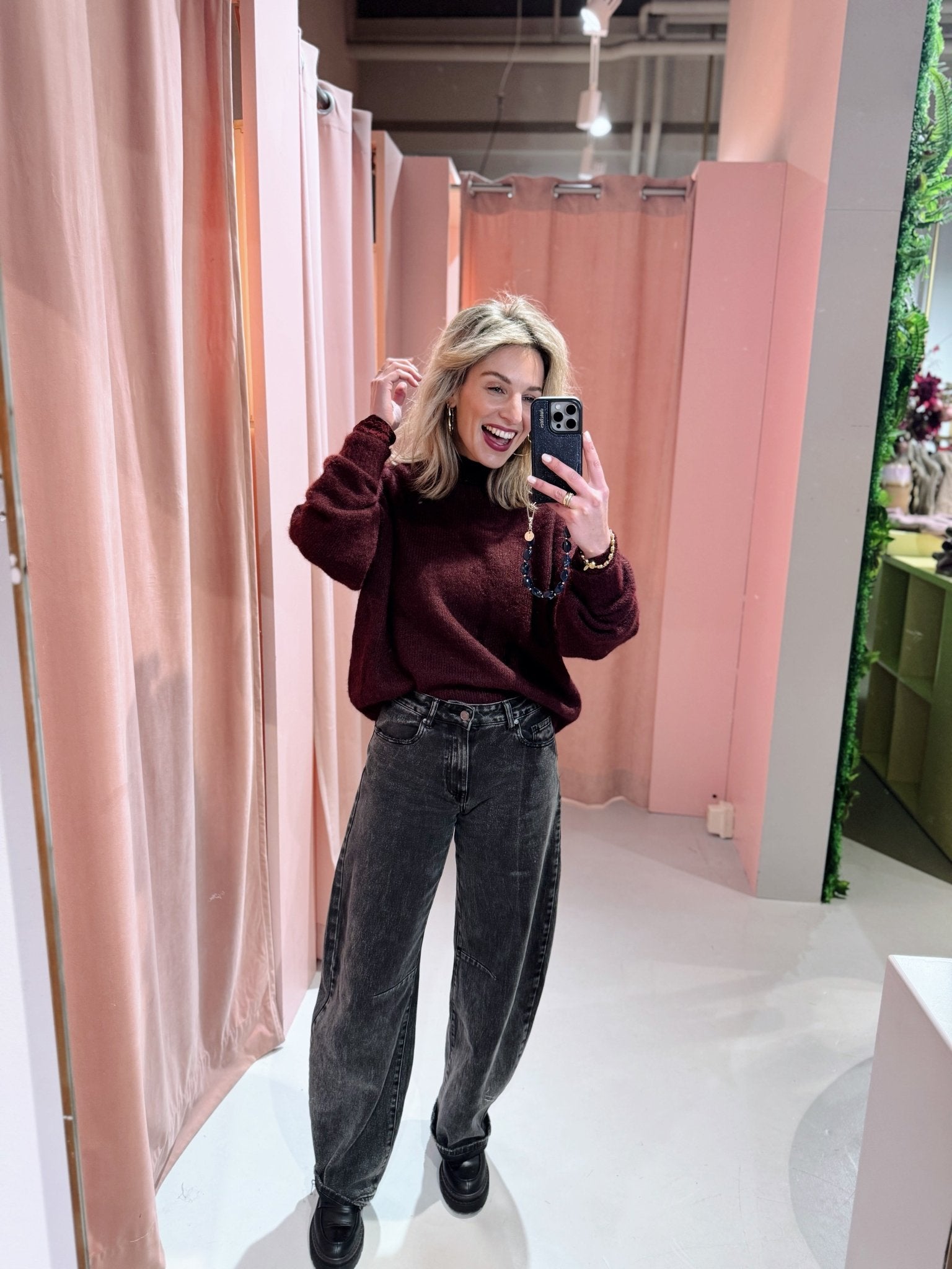 De Olaf Knit in bordeaux is een knit met een oversized model. De trui is gemaakt van een heerlijk warm gebreid materiaal, heeft lange mouwen met een hoge, ronde halslijn en een oversized pasvorm.