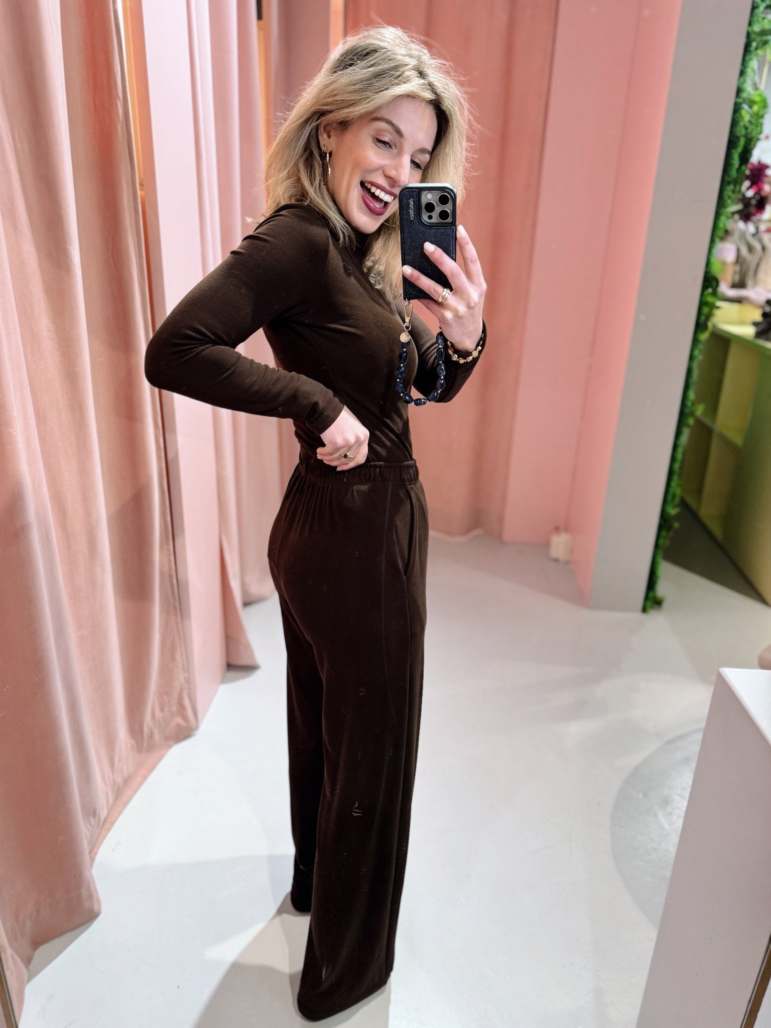 De Olaya Jogger in bruin is gemaakt van een zachte en comfortabele stof, perfect voor een casual outfit. De broek heeft een elastische tailleband en rechte pijpen. Dankzij de fijne stretch zit hij heerlijk en valt hij mooi recht langs het been. Combineer deze jogger met de Ona Longsleeve voor een complete set.