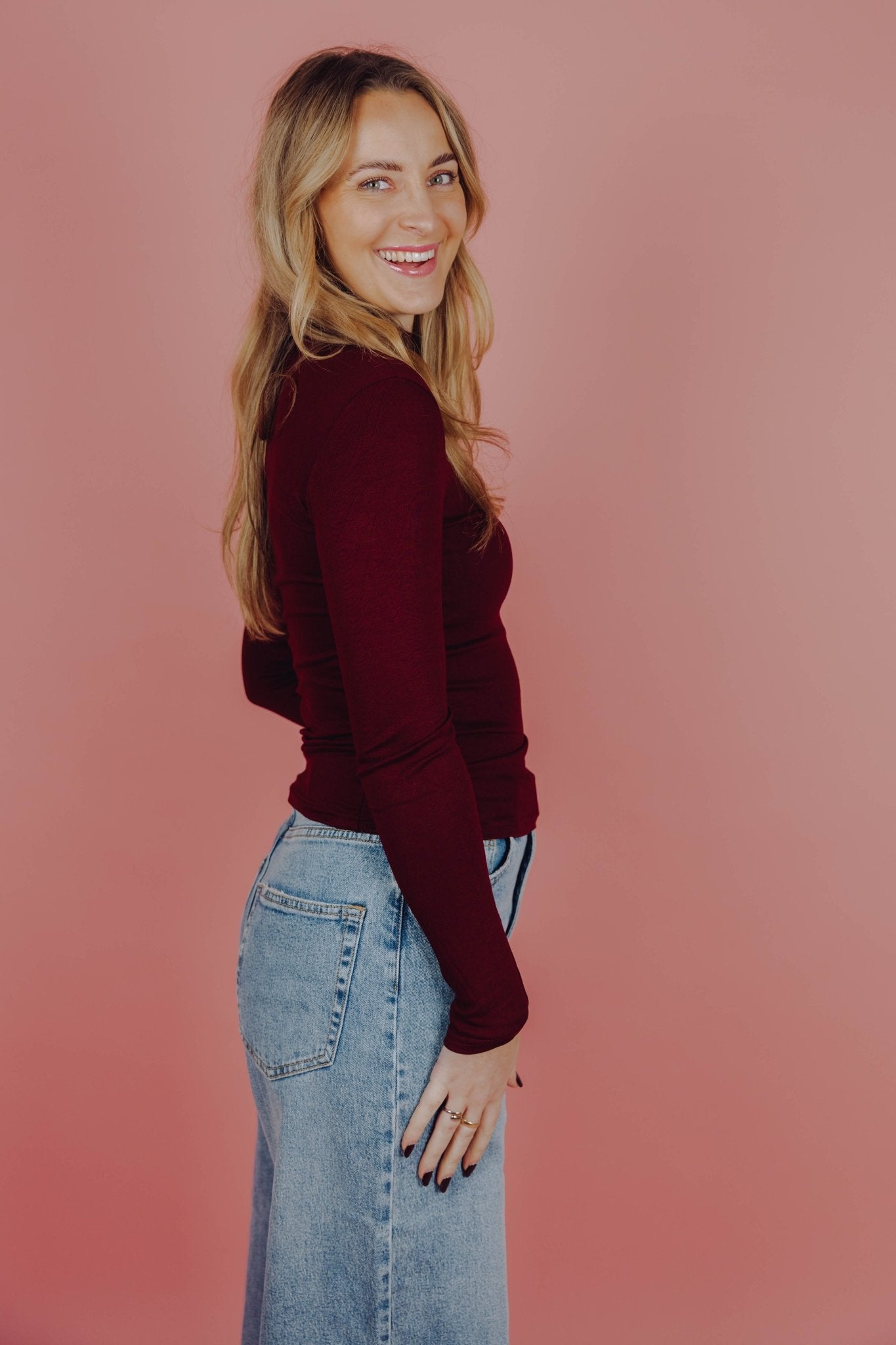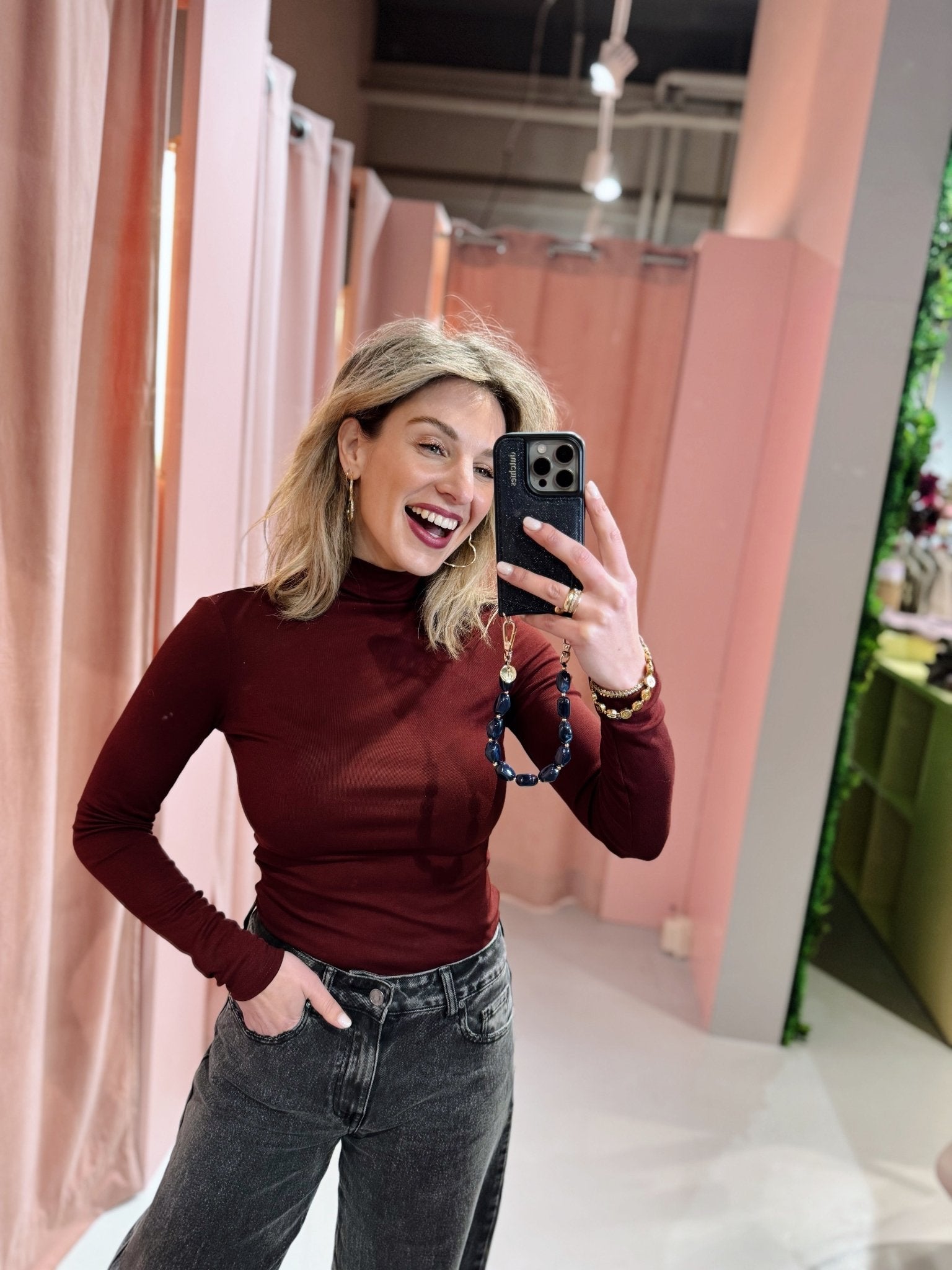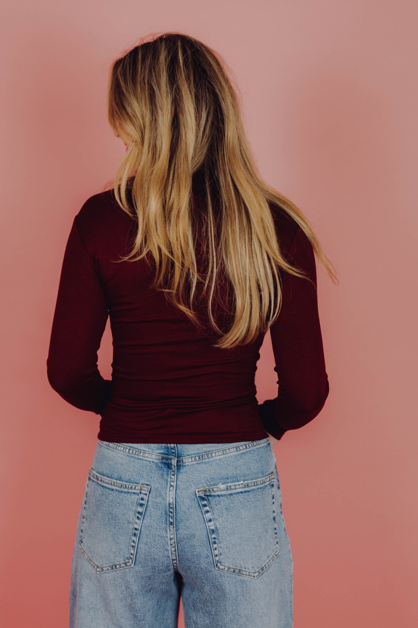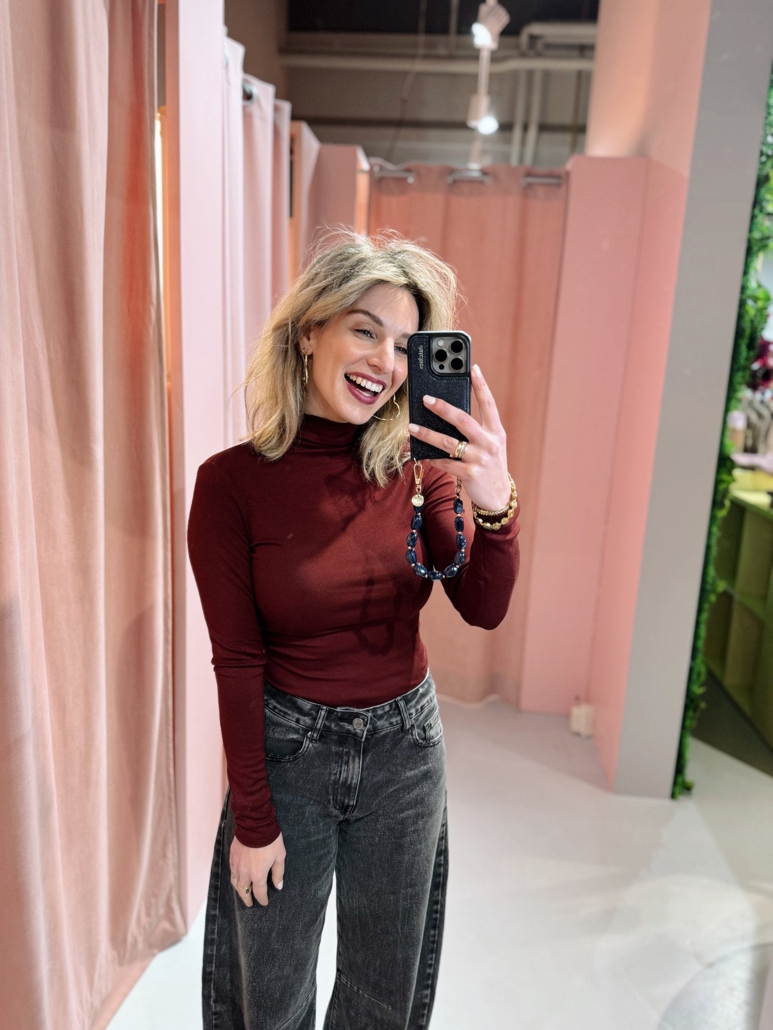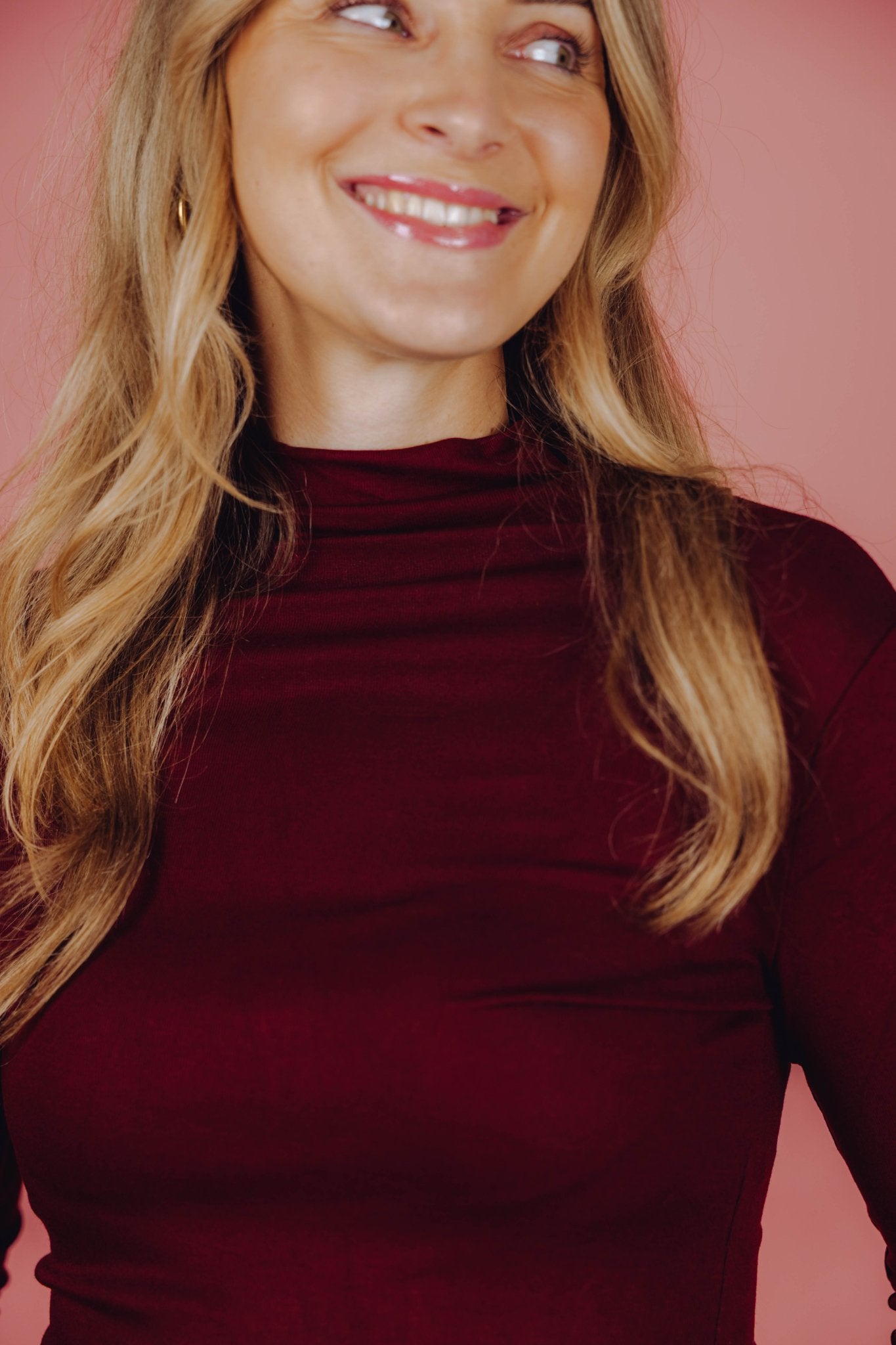 De Olcay Col in bordeaux is een turtleneck top met een aansluitend model. De top heeft lange mouwen met een col en is de perfecte basic.