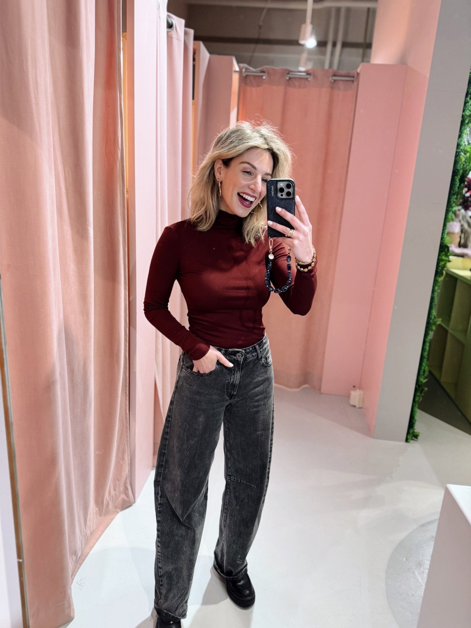 Jessica is 1,65m lang en draagt altijd maat S of S/M.